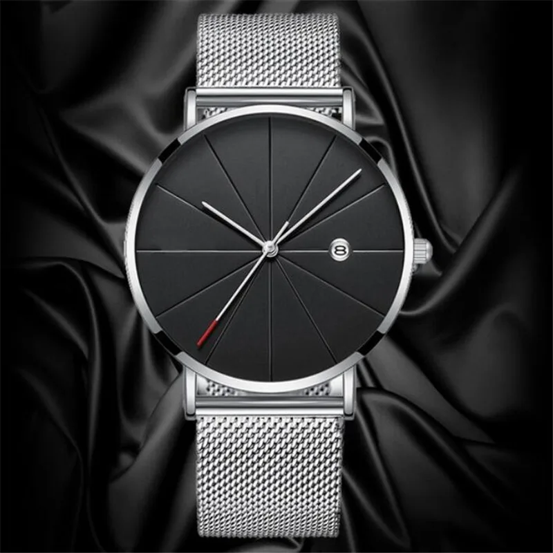 Ultra-thin Watches Classic Steel Quartz Date Wristwatch Casual Mesh Belt Masculino Relogios relojes para hombre reloj hombre