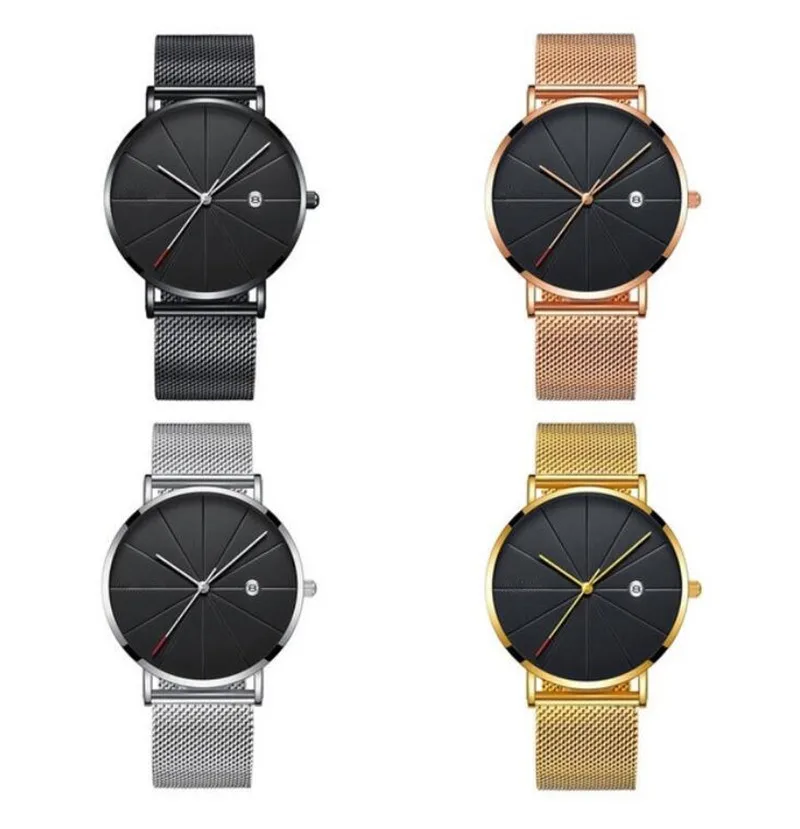 Ultra-thin Watches Classic Quartz Date Wristwatch Casual Mesh Belt Masculino Relogios relojes para hombre