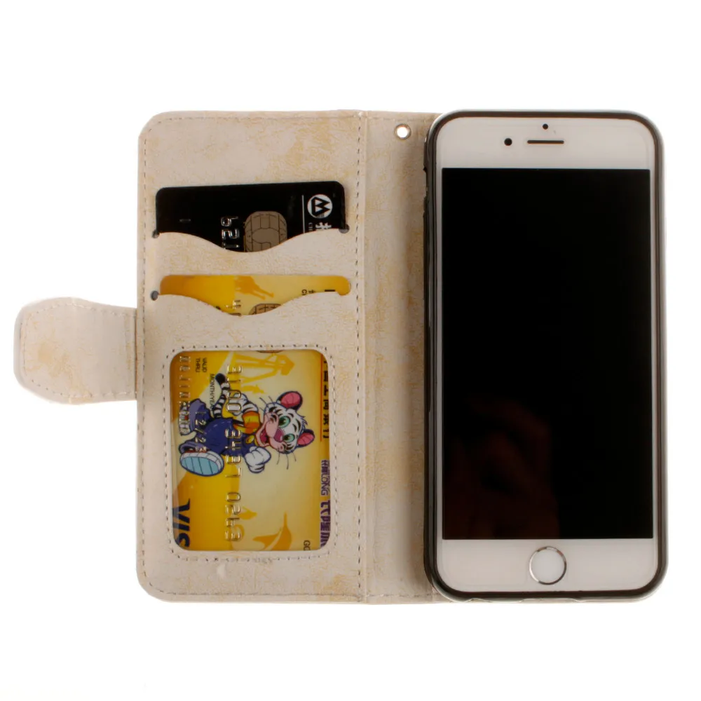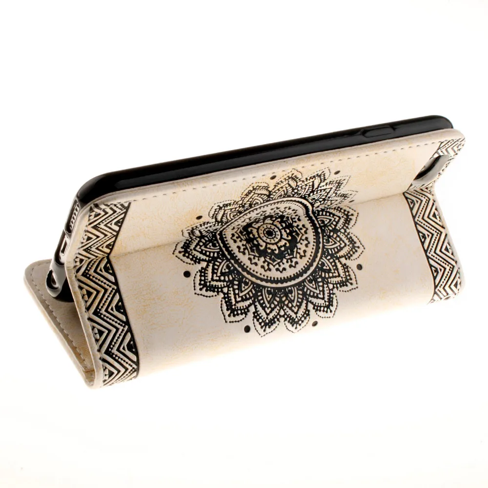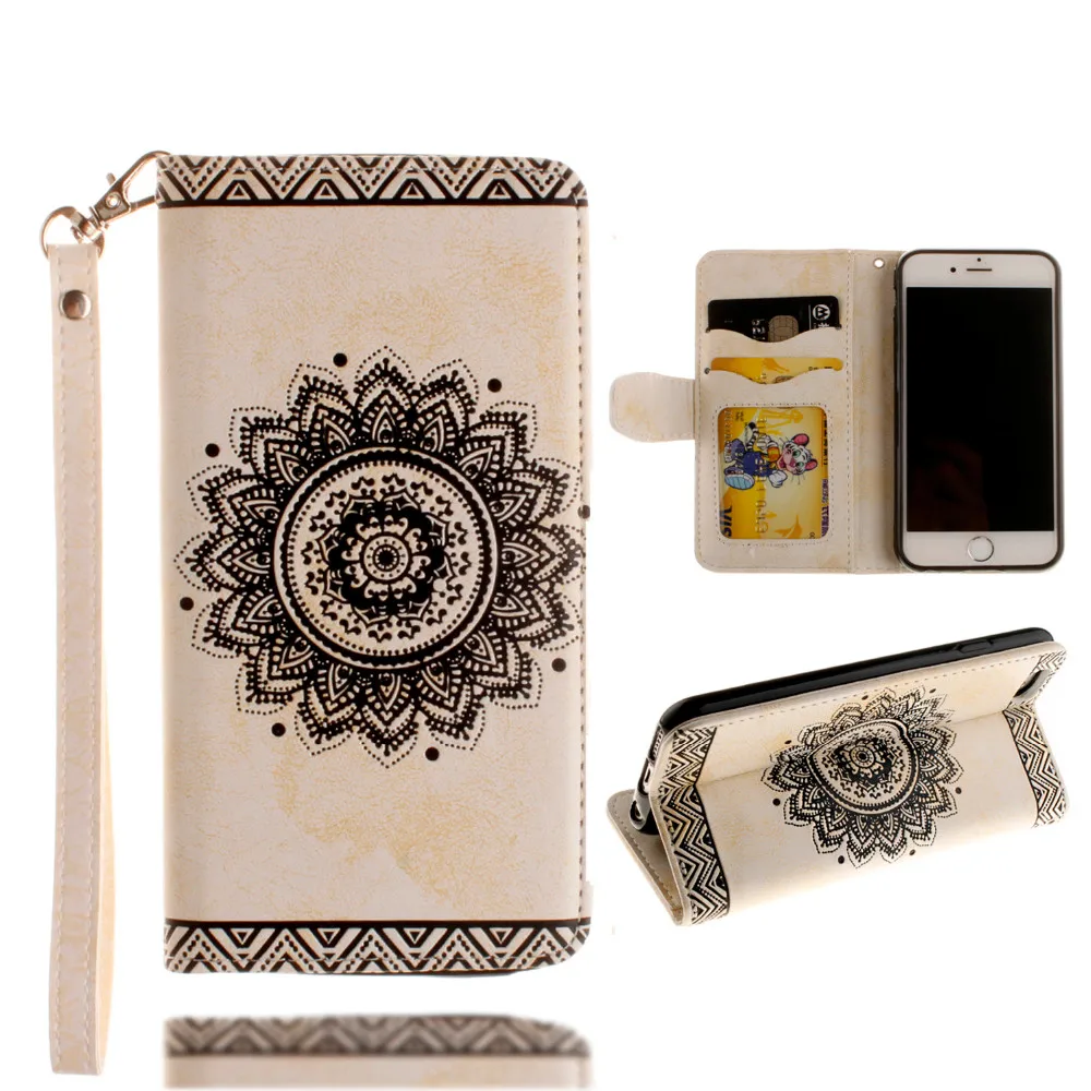 Wallet Leather Case For iPhone 8 7 6 6s Plus SE 5 5s Cover Retro Paisley Flower Mandala Henna Floral Flip Card Slot Holder Stand