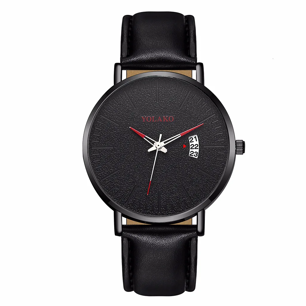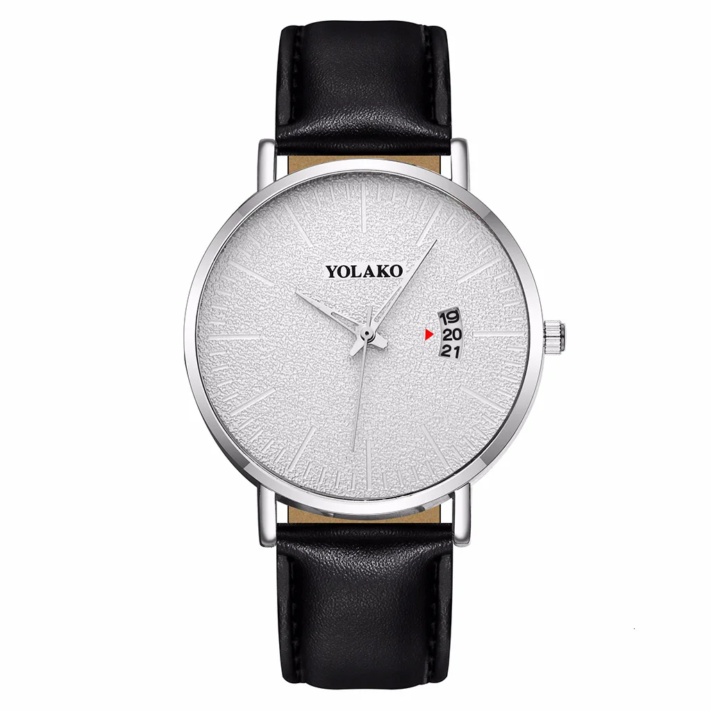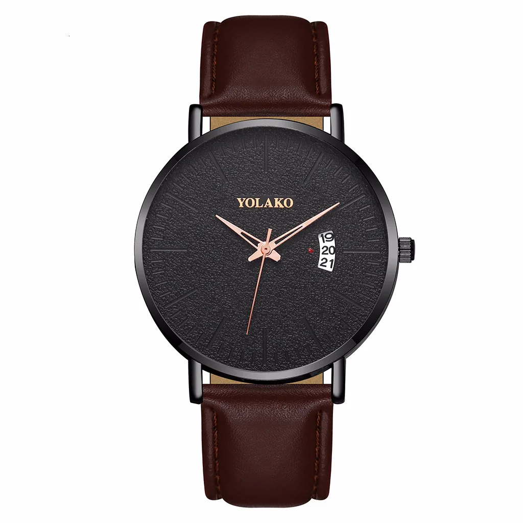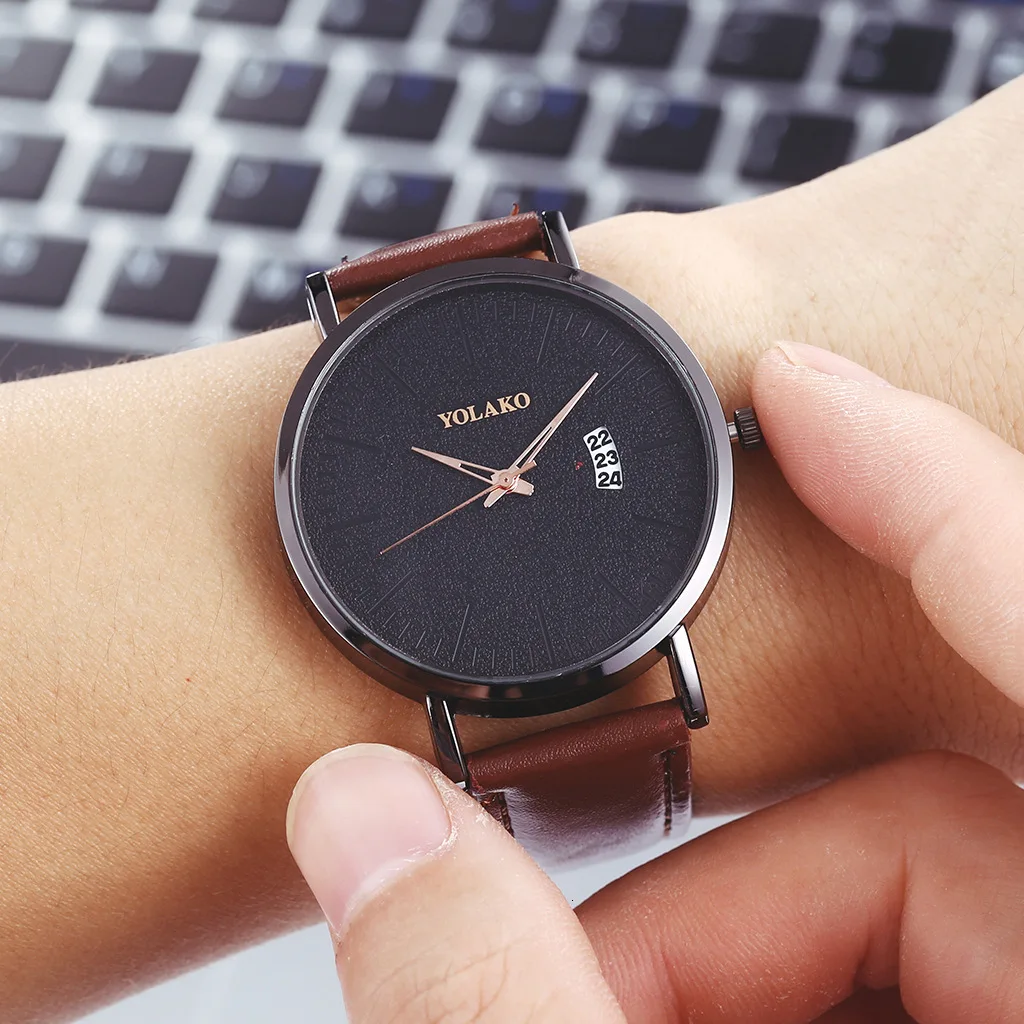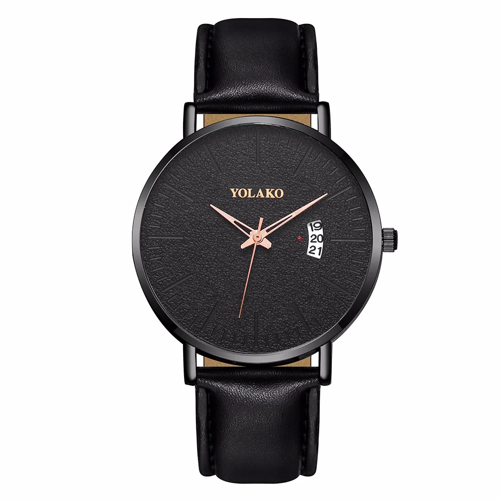YOLAKO To Brand Sleek Minimalist Men's Watch Leather Belt Watch British Style Calendar Simple Quartz Clock Erkek Kol Saati
