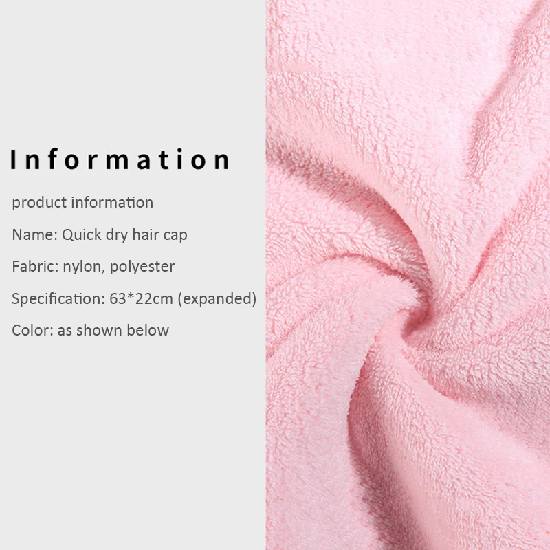 Fast drying hair towel is made of composite coral fleece material. The coral fleece is super gentle on your head.