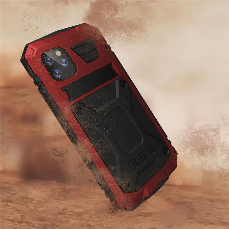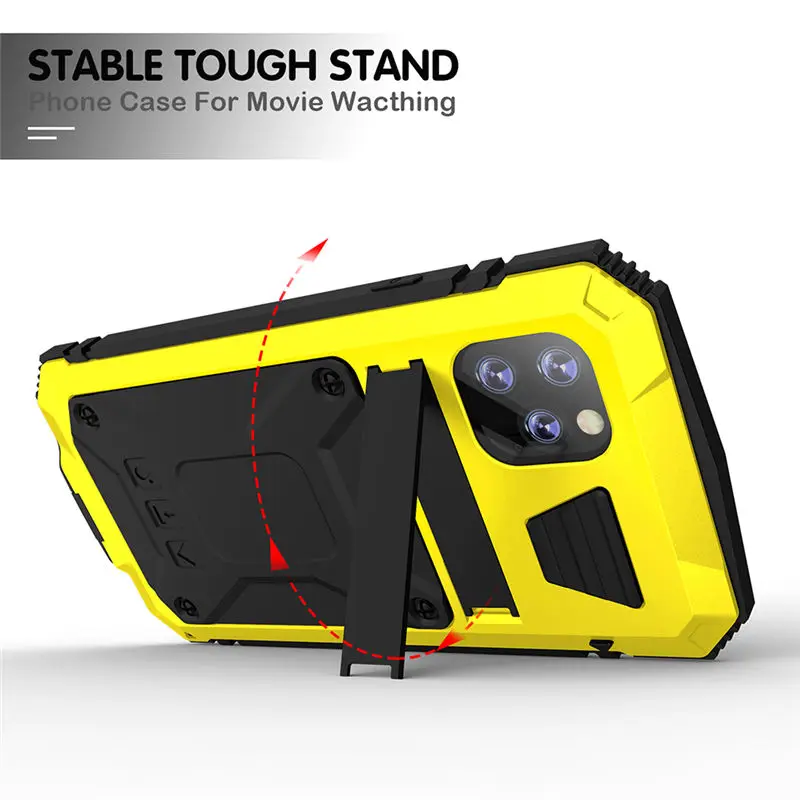 Heavy Duty Shockproof Armor Protective Case for iPhone 11 Pro Max XR XS Max Metal Aluminum Dust-proof phone Cover with Kickstand