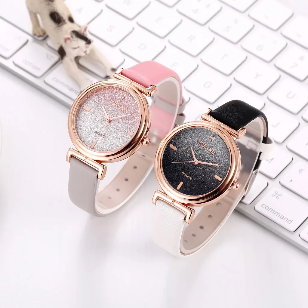 Cassic Style Women Watches Starry Sky Dial Ladies Quartz Wristwatch Rhinestone Design Leather Strap Clock Relojes Para Mujer@50