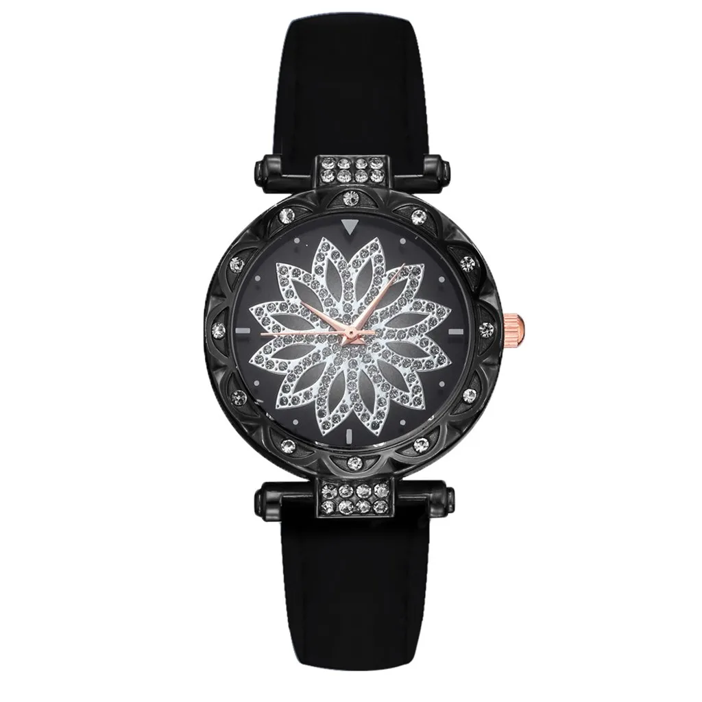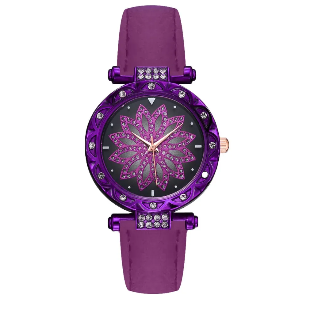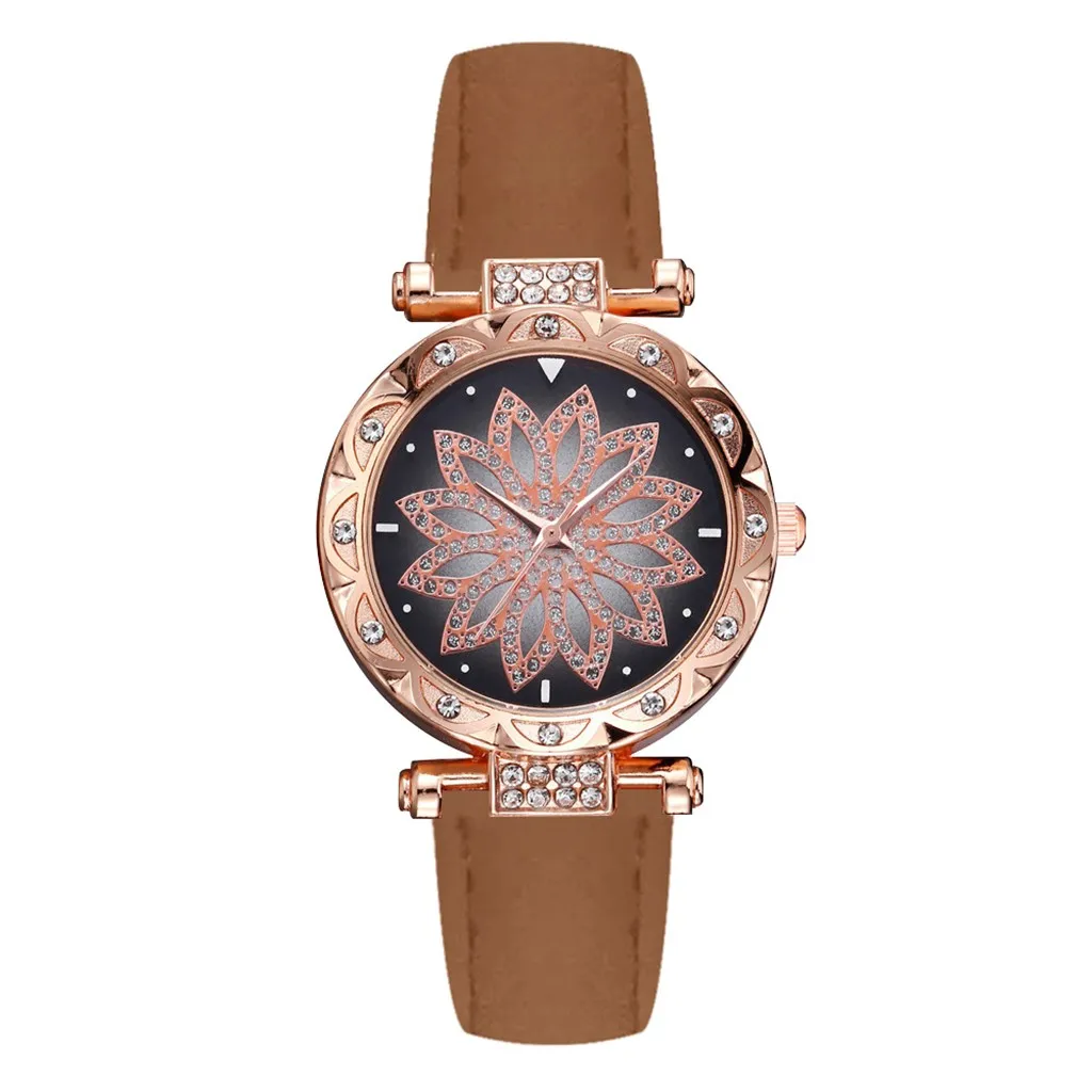 Fashion Women Watches Luxury Rose Gold Flower Rhinestone Ladies Wrist Watches Female Quartz Soild Color Leather Relogio Feminino