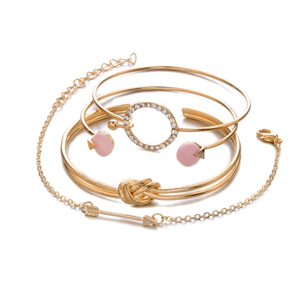 Hot Selling 4pcs/Set Fashion Bohemia Leaf Knot Hand Cuff Link Chain Charm Bracelet Bangle Women Gold Bracelets Femme Jewelry