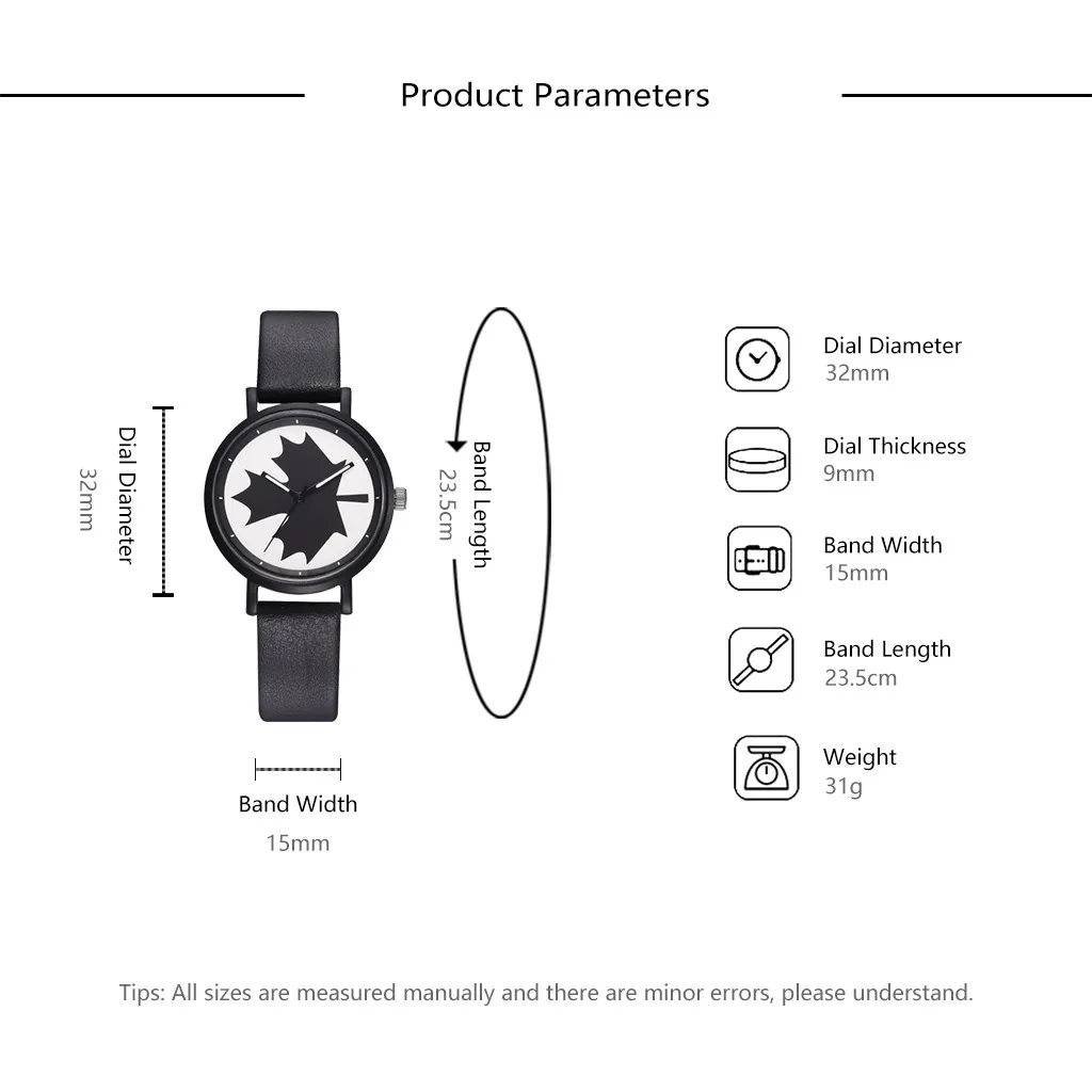Modern Watch Women Black Maple Leaf Pattern Fashion Quartz Wristwatch High Quality Leather Strap Casual Female Montre Femme Product selling point: Simple dial for a relaxed, stylish comfort The dial makes you more fashion Fashion trends highlight personal charm Wonderful gift for friends and family Leather belt gives you the ultimate enjoyment of sight and touch...