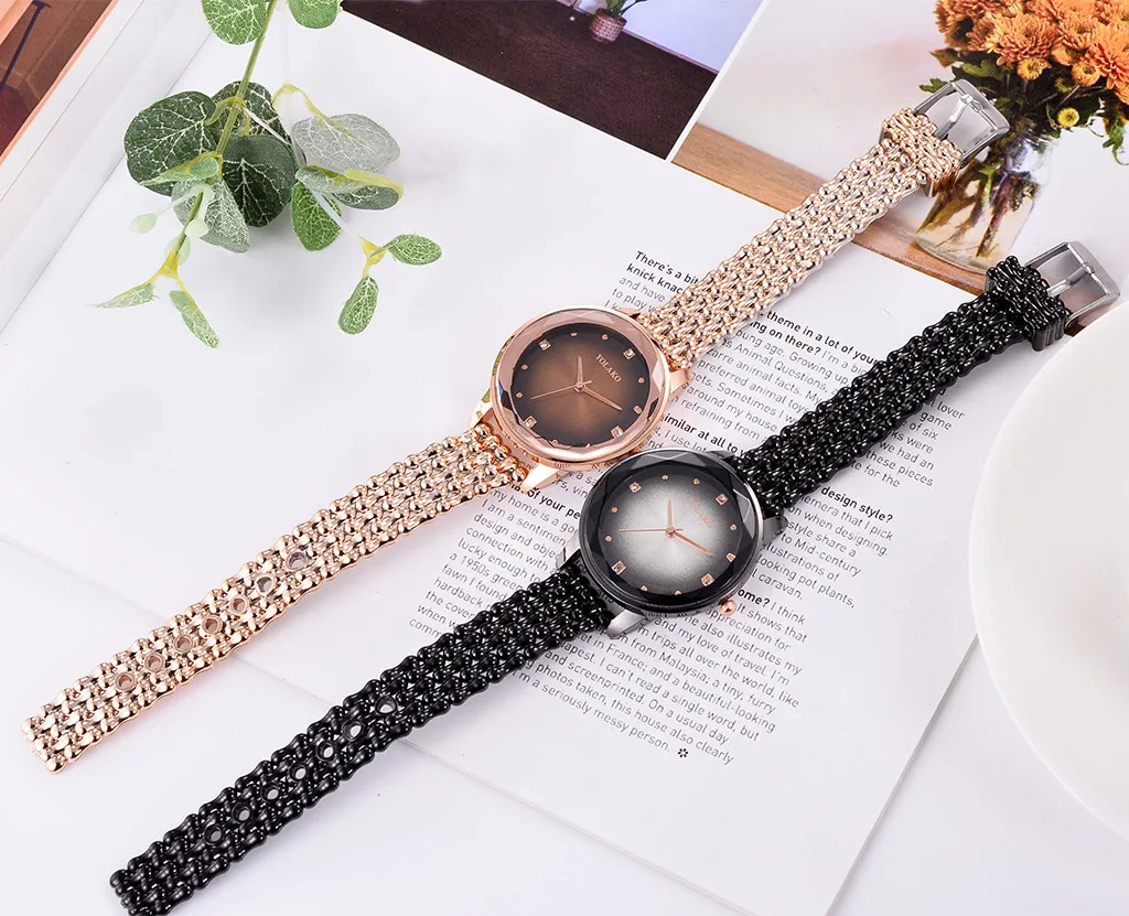 New Women Watches Stainless Steel Rhinestone Watch Unique Simple Watches Casual Quartz Wristwatches Clock Relojes Para Mujer