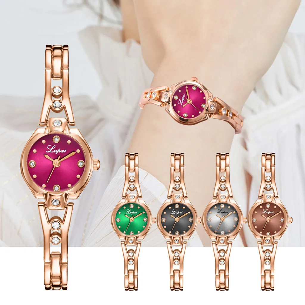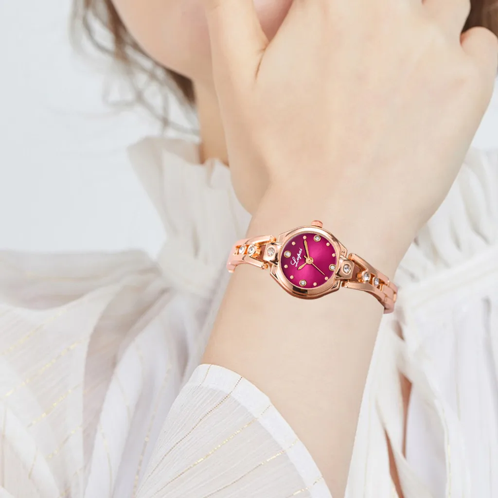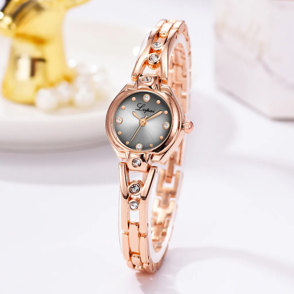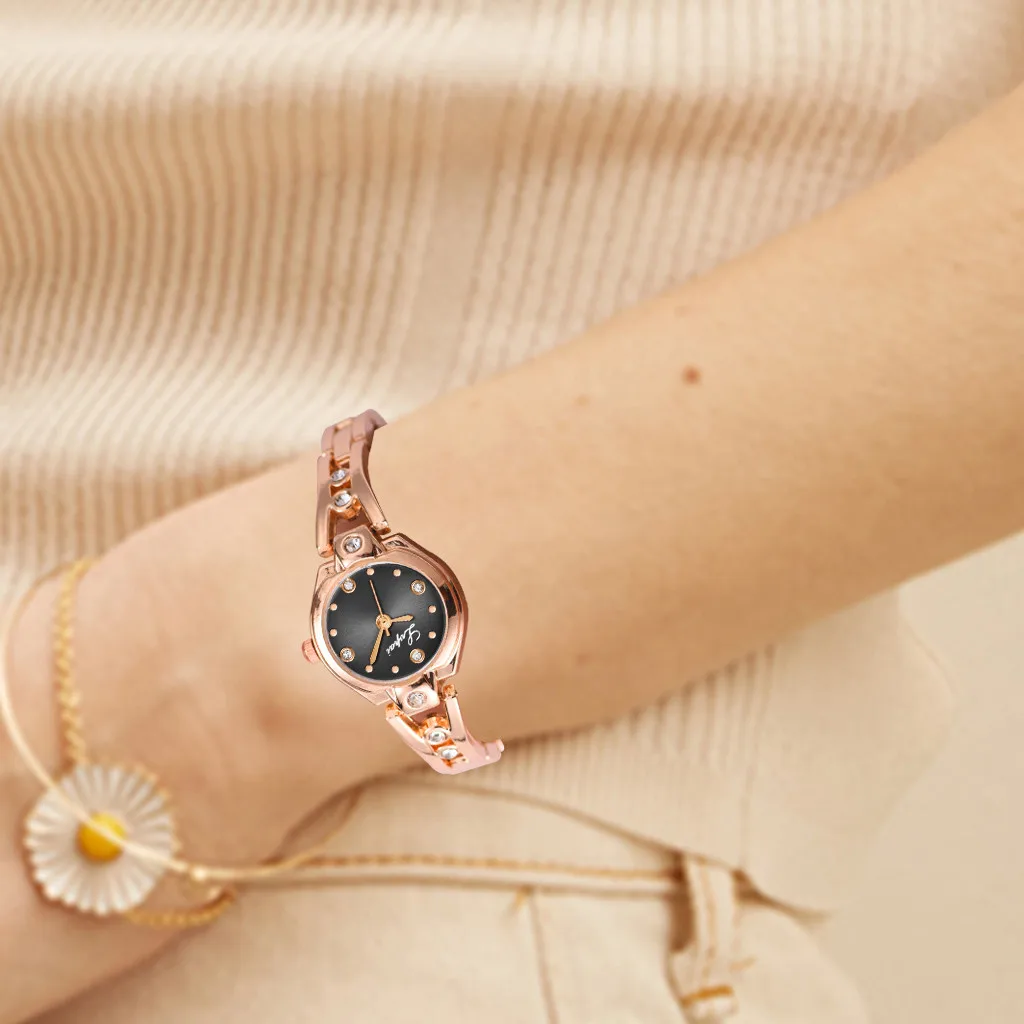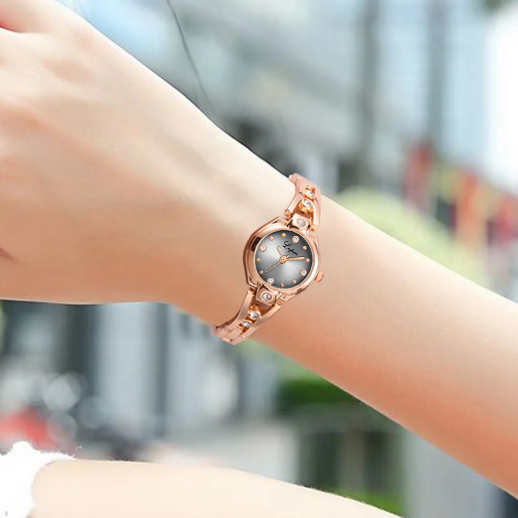 Simple Style Women Watches Dot Rhinestone Dial Ladies Fashion Quartz Wristwatch Alloy Bracelet Strap Clock Casual Reloj Mujer