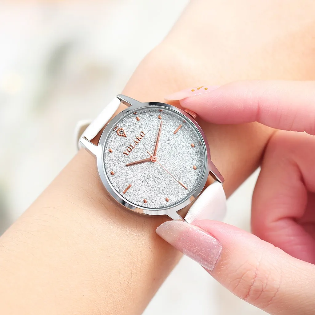 Top Brand Women Watches Scrub Dial Ladies Quartz Wristwatch Rhinestone Leather Strap Fashion Clock High Quality Kol Saati Product selling point: Selected metal stainless steel mesh belt, durable, no fading Simple dial, low-key luxury and practical, let you enjoy The surface of the matte gold powder makes your wrist look...