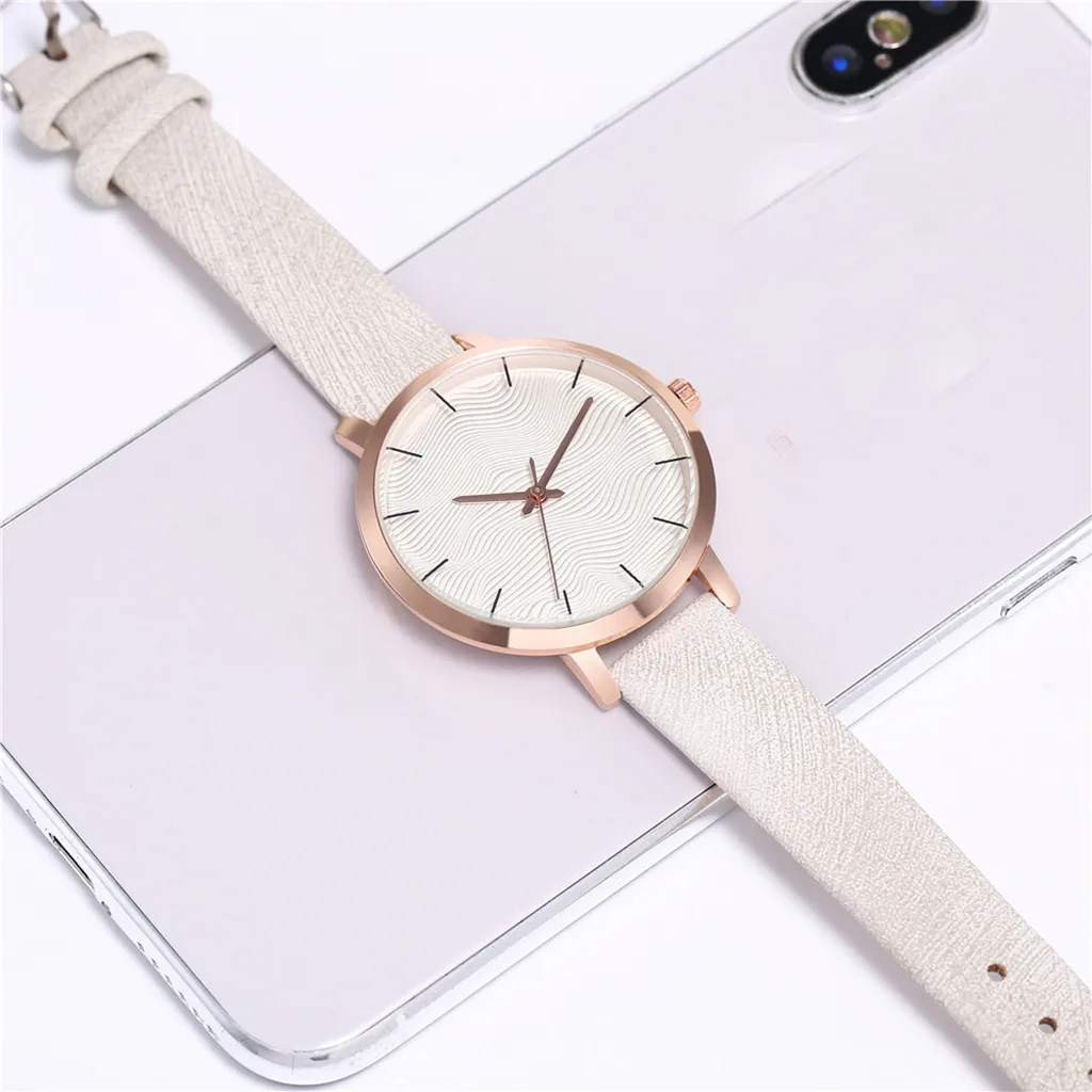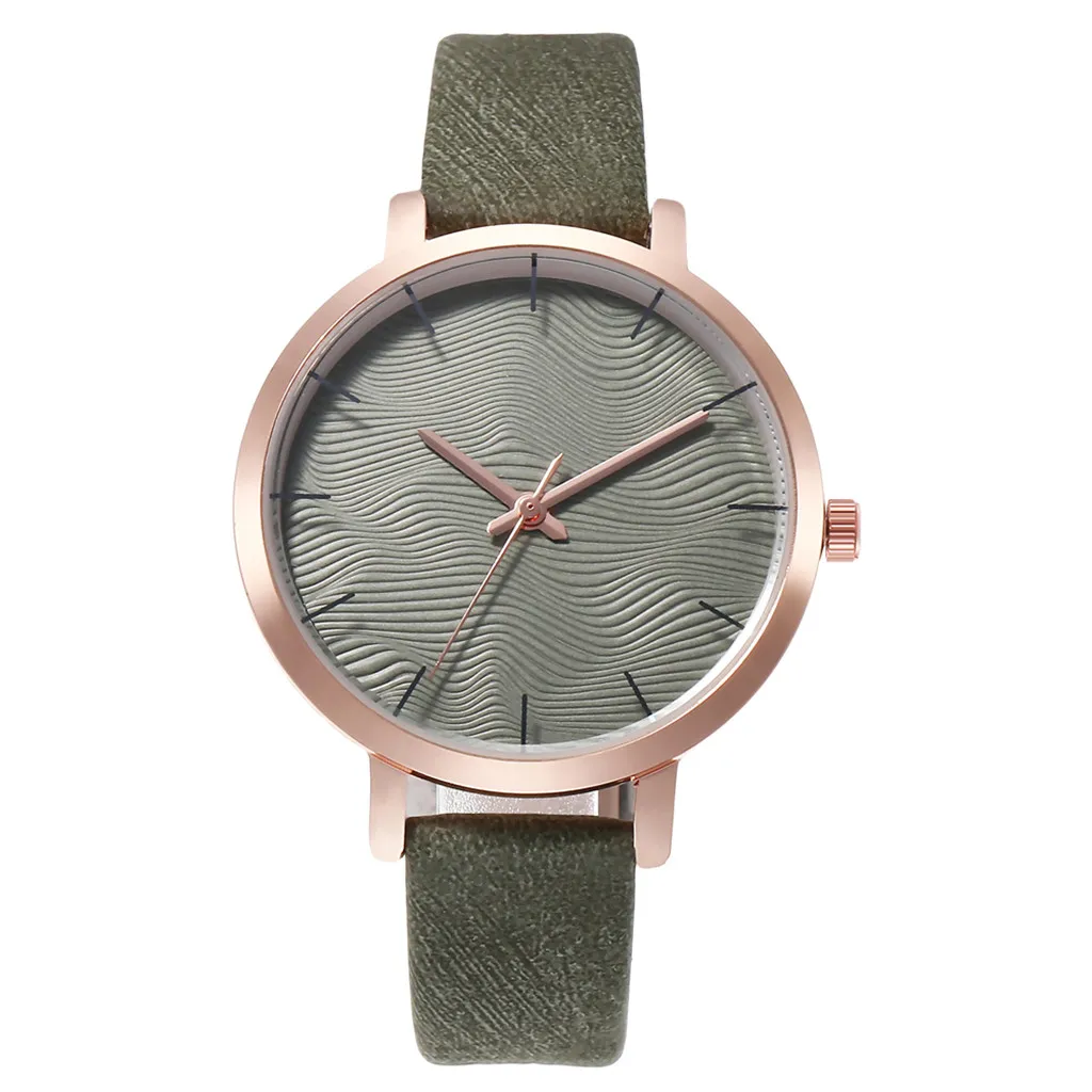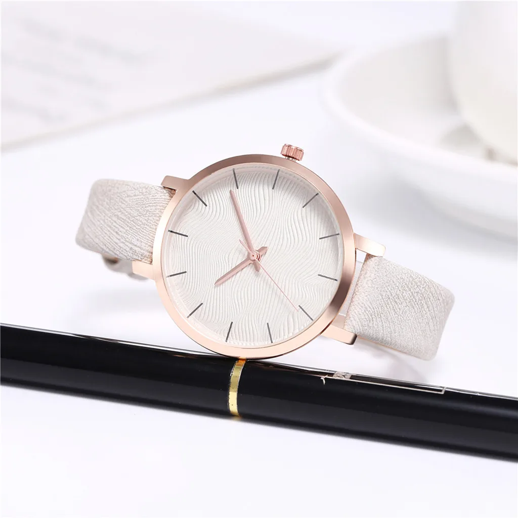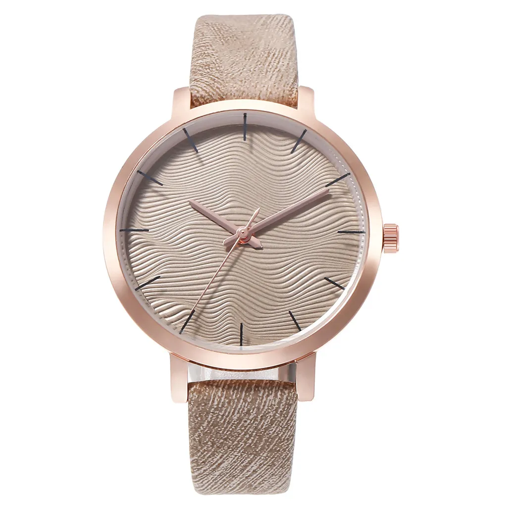 Women Watches Personality Water Wave Dial Analog Quartz Wristwatches Ladies Soild Color Leather Strap Clock Relogio Feminino