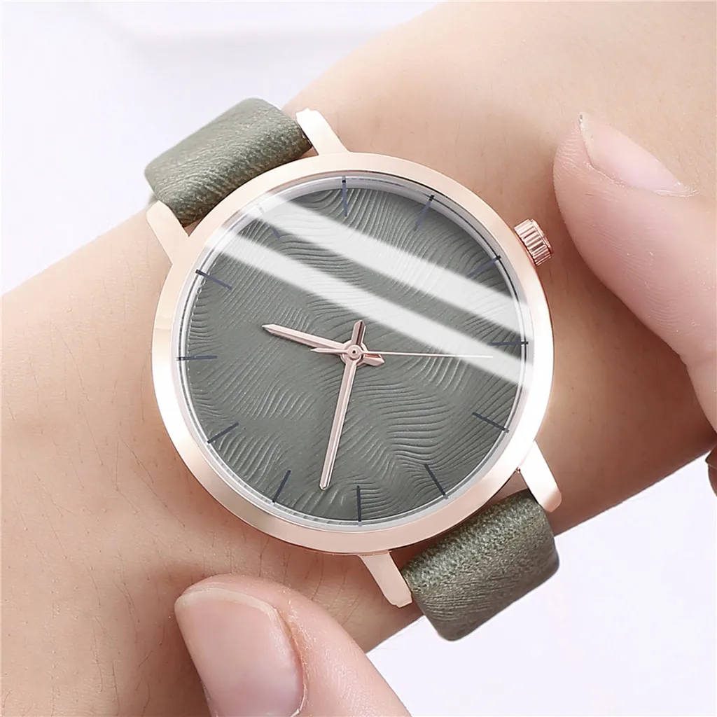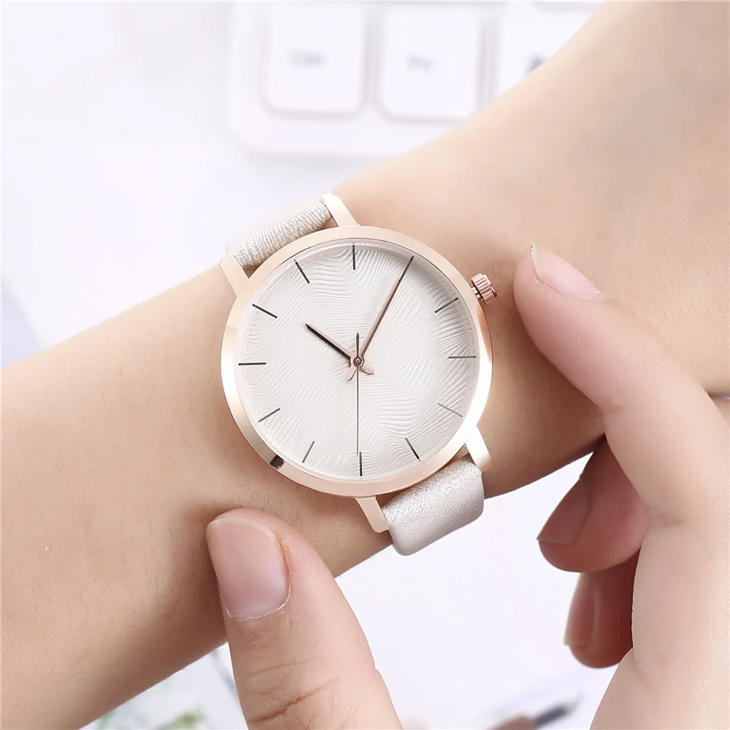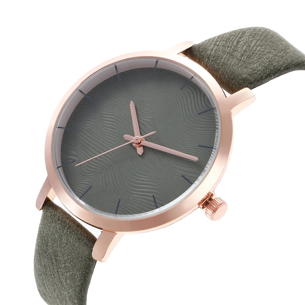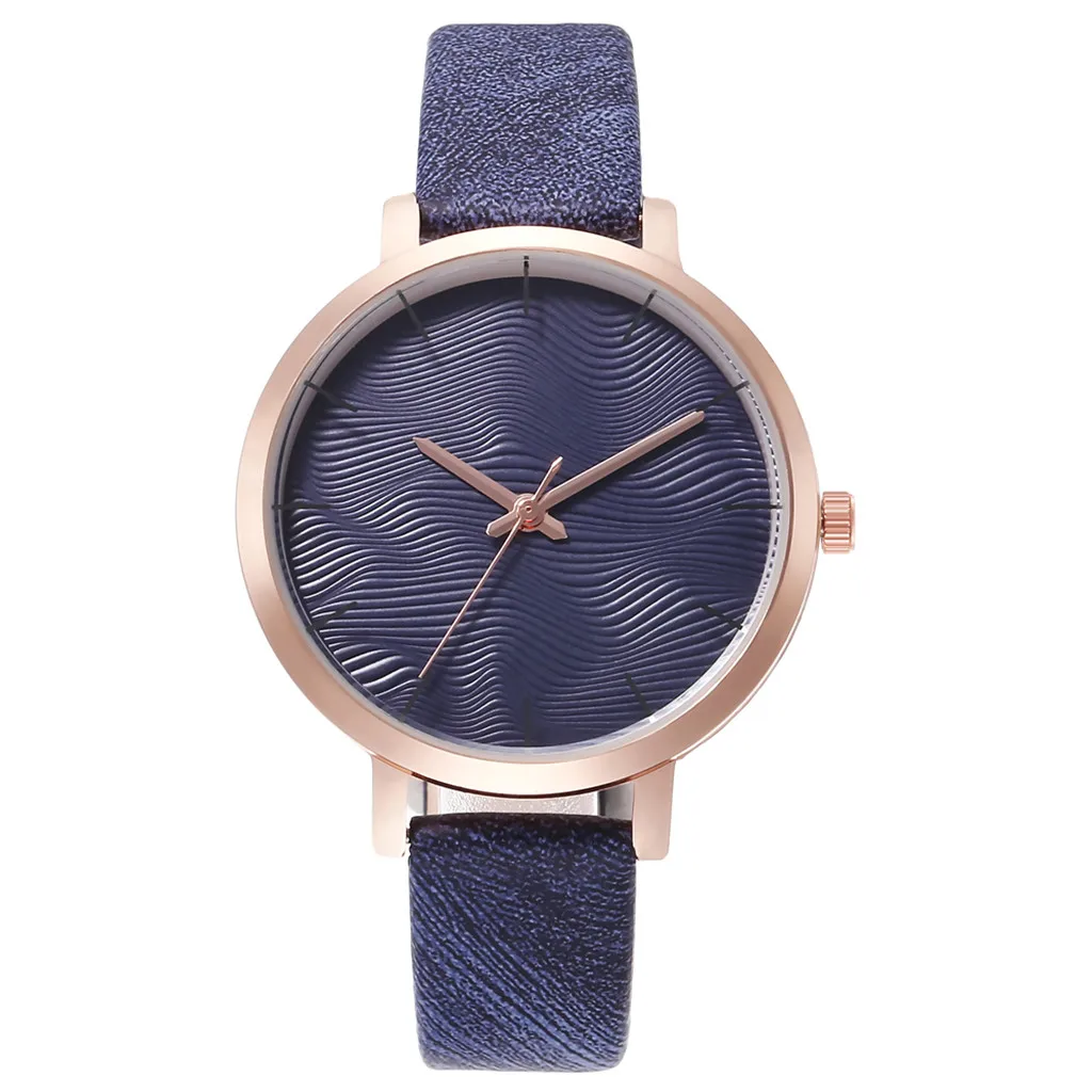 Women Watches Personality Water Wave Dial Analog Quartz Wristwatches Ladies Soild Color Leather Strap Clock Relogio Feminino