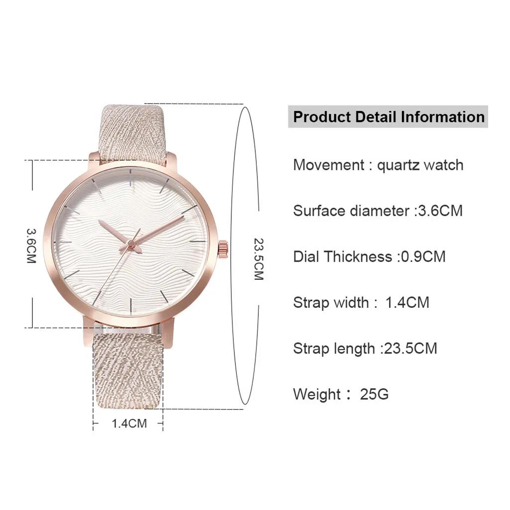 Women Watches Personality Water Wave Dial Analog Quartz Wristwatches Ladies Soild Color Leather Strap Clock Relogio Feminino@50