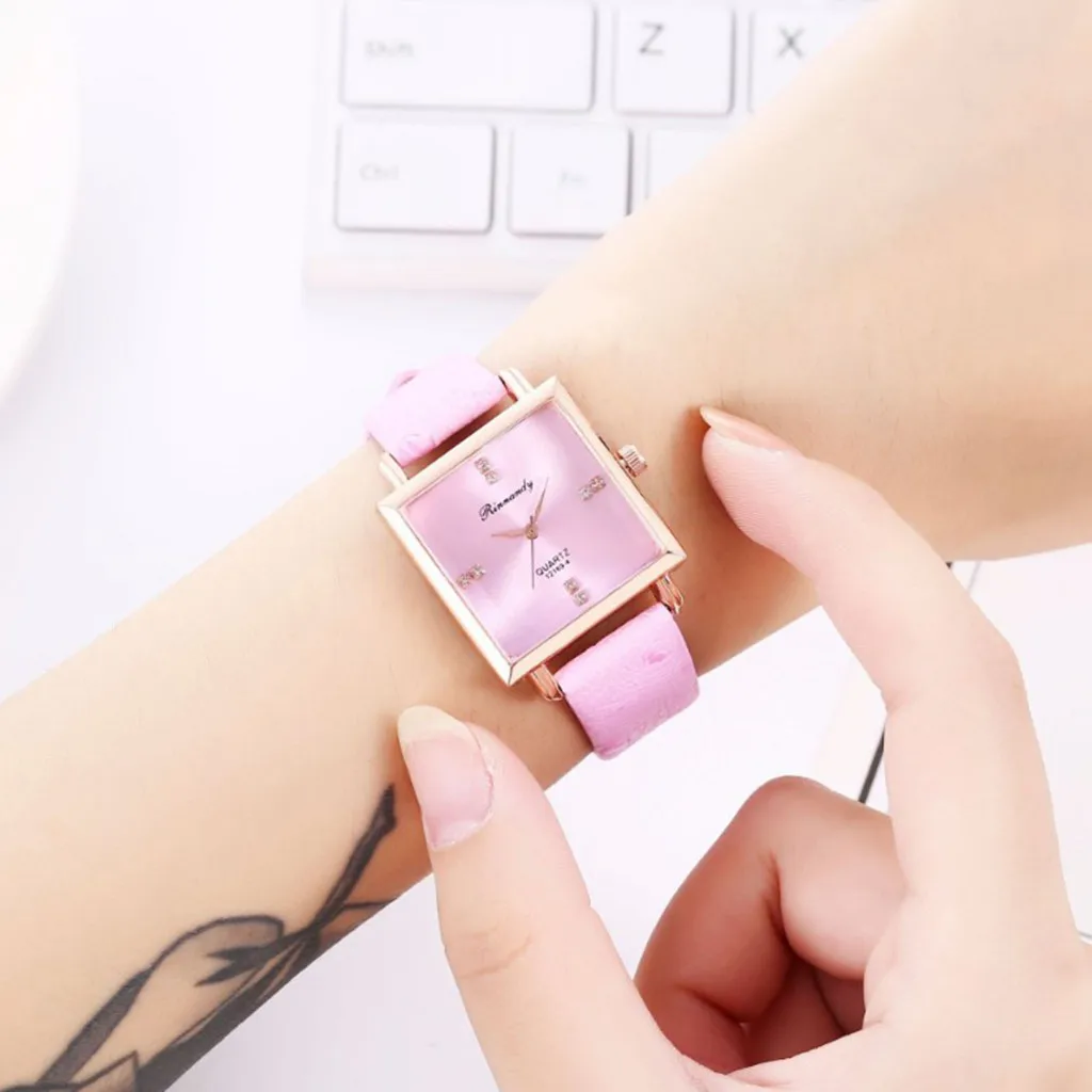 Women's Watch Elegant Khaki Simple Minimalism Quartz Casual Watch Ladies Rhinestone Wristwatch Leather Colck Zegarki Damskie@50