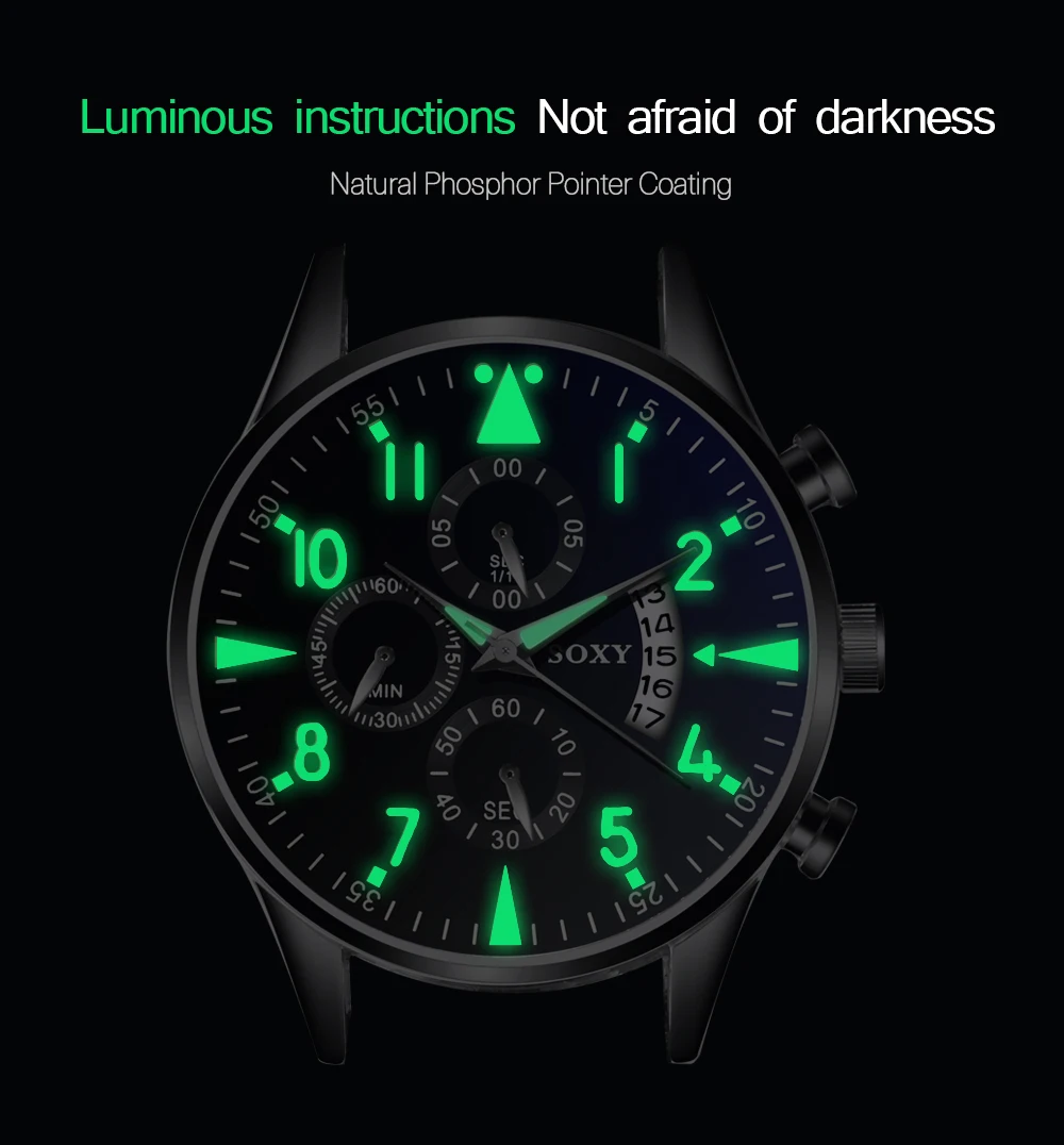 SOXY Men's Watches Classic Black and silver Calendar Quartz Men Quartz Wristwatch Luminous Waterproof Mens Watch Clock relogio masculino metal business watches