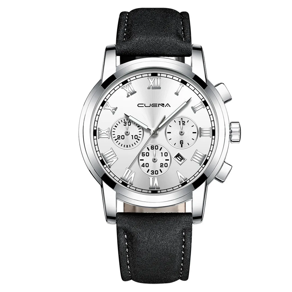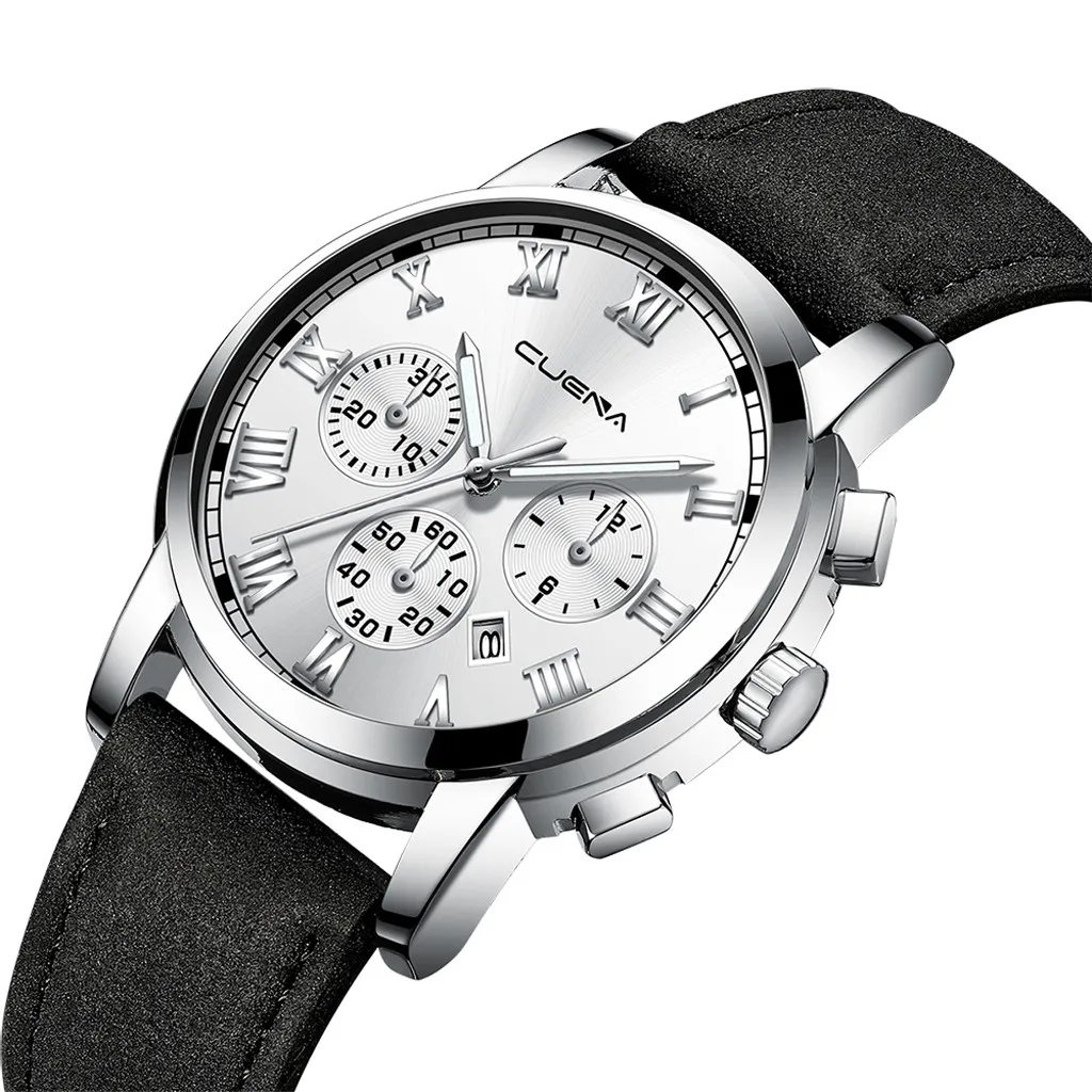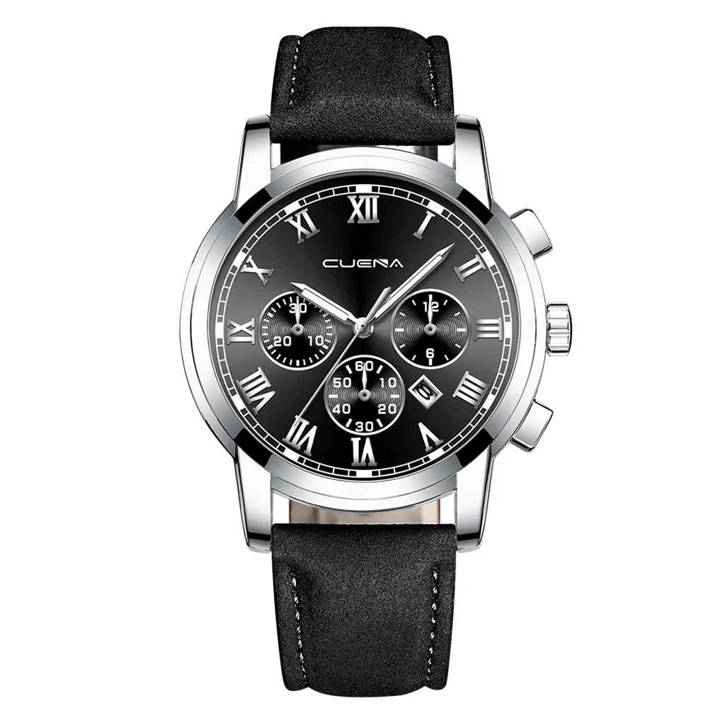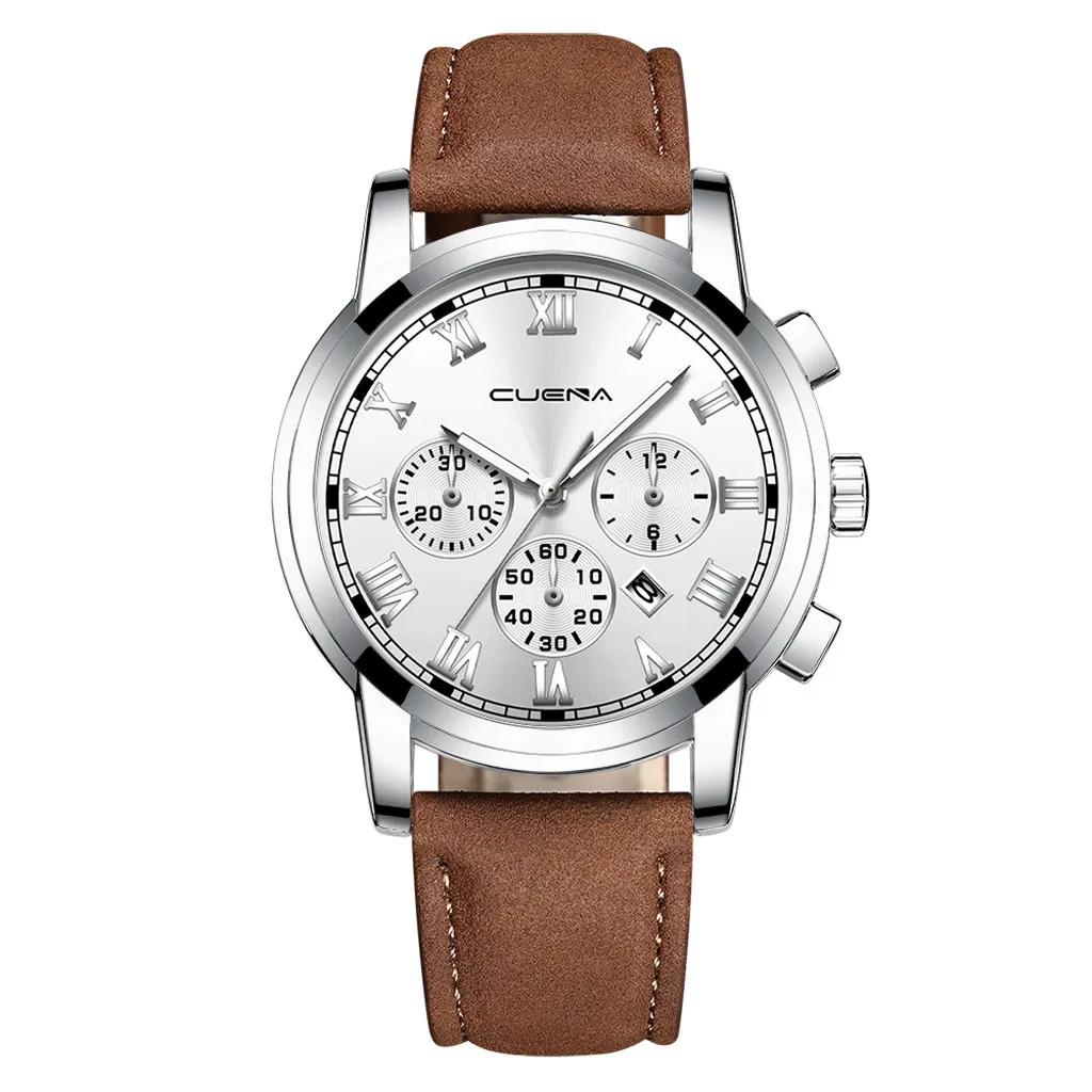 CUENA Man Wrist Watch Sport Stainless Steel Case Leather Band Quartz Analog Wristwatch Mens relojes hombre 2019 zegarek meski