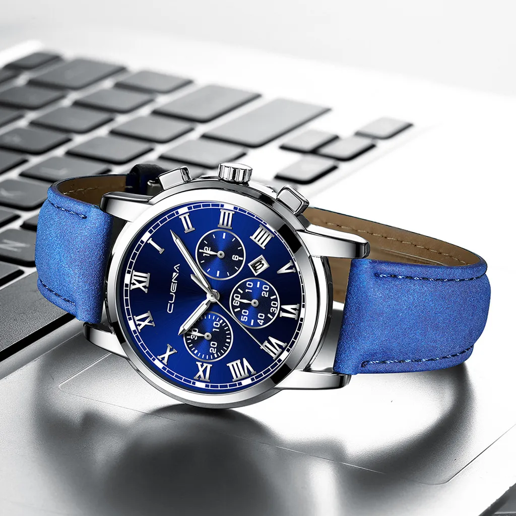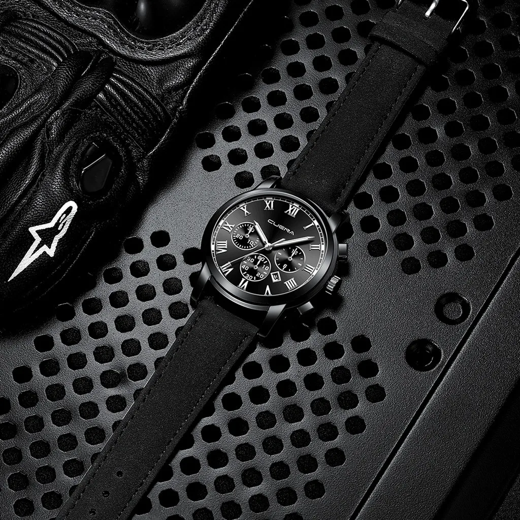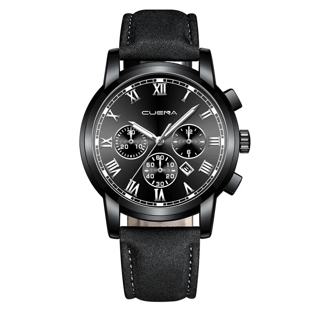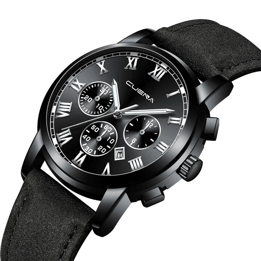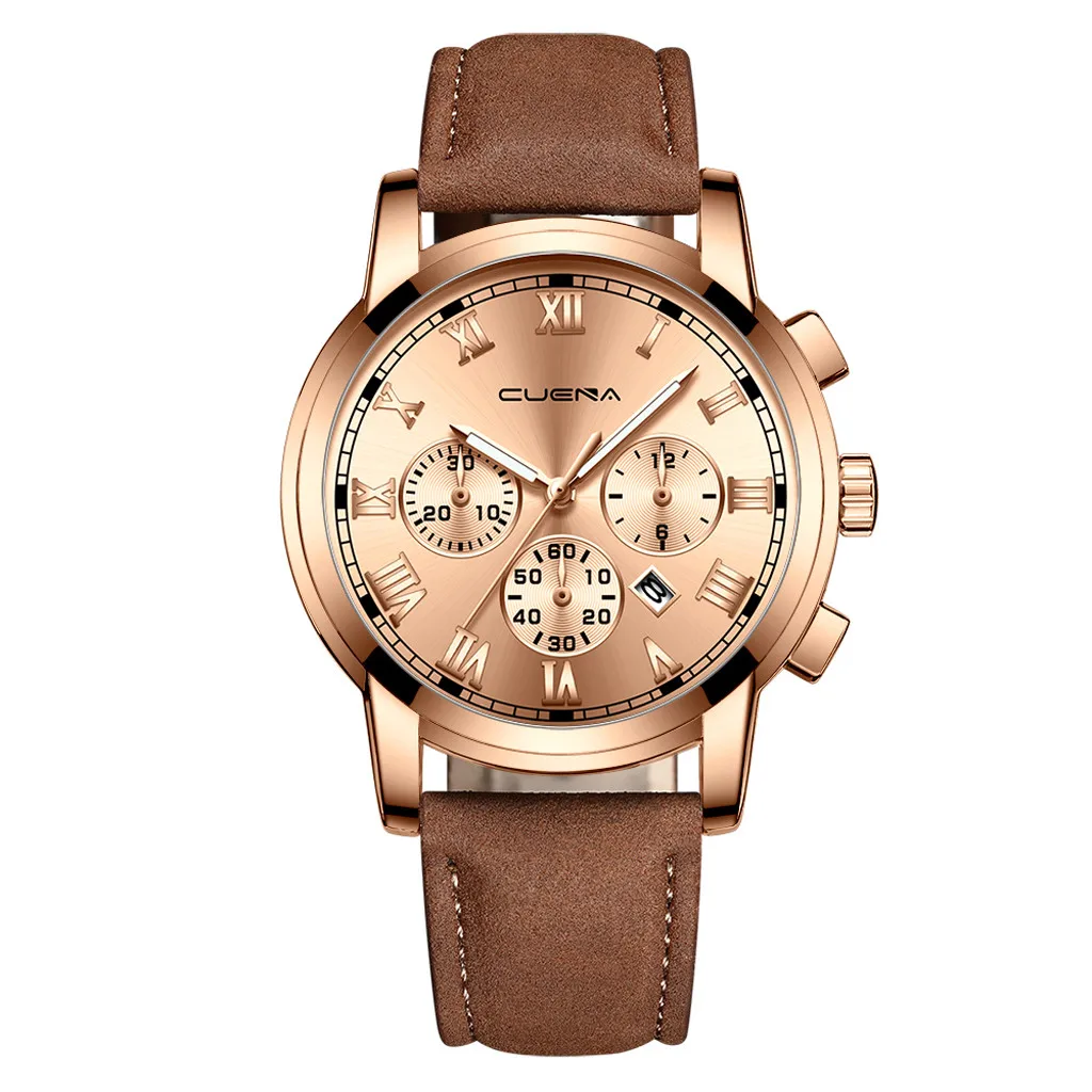 CUENA Man Wrist Watch Sport Stainless Steel Case Leather Band Quartz Analog Wristwatch Mens relojes hombre 2019 zegarek meski