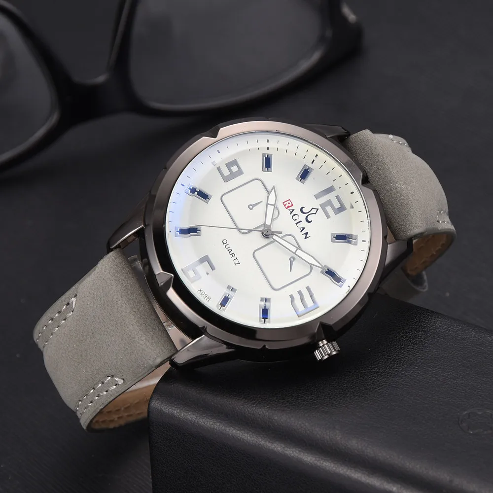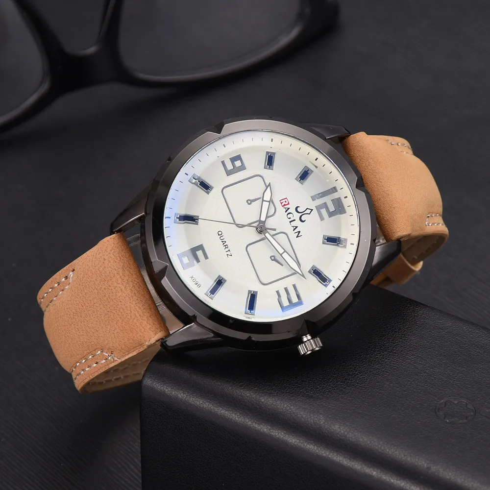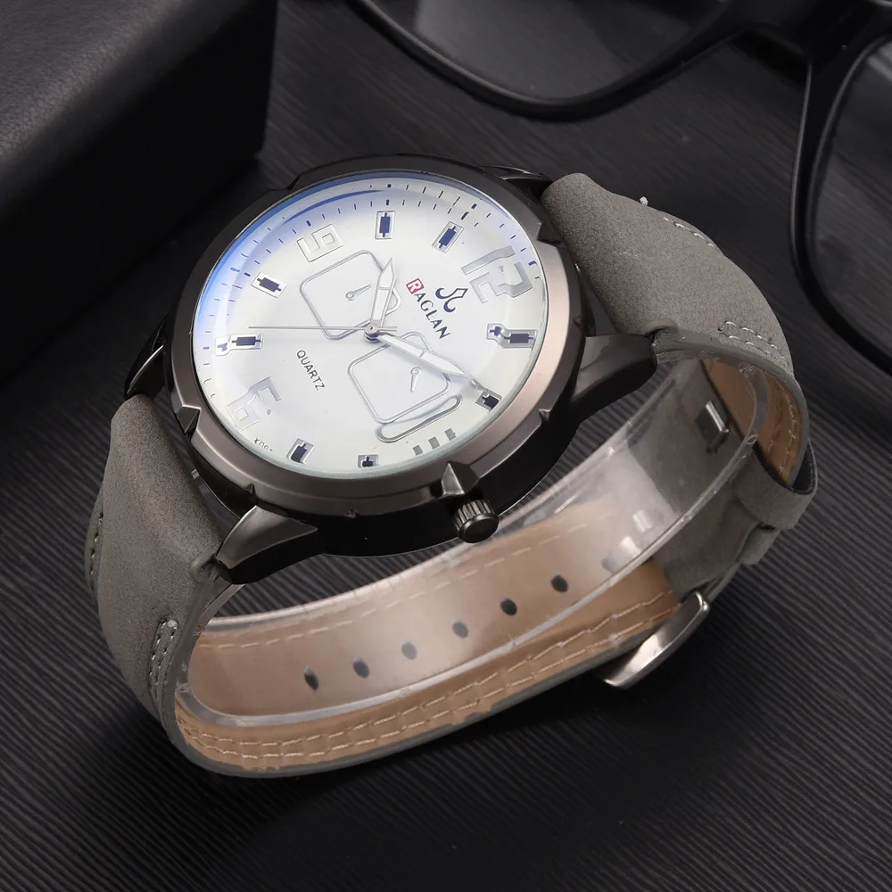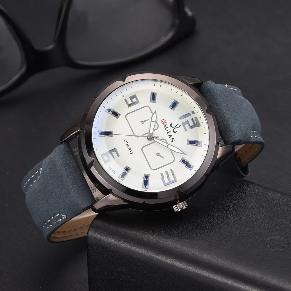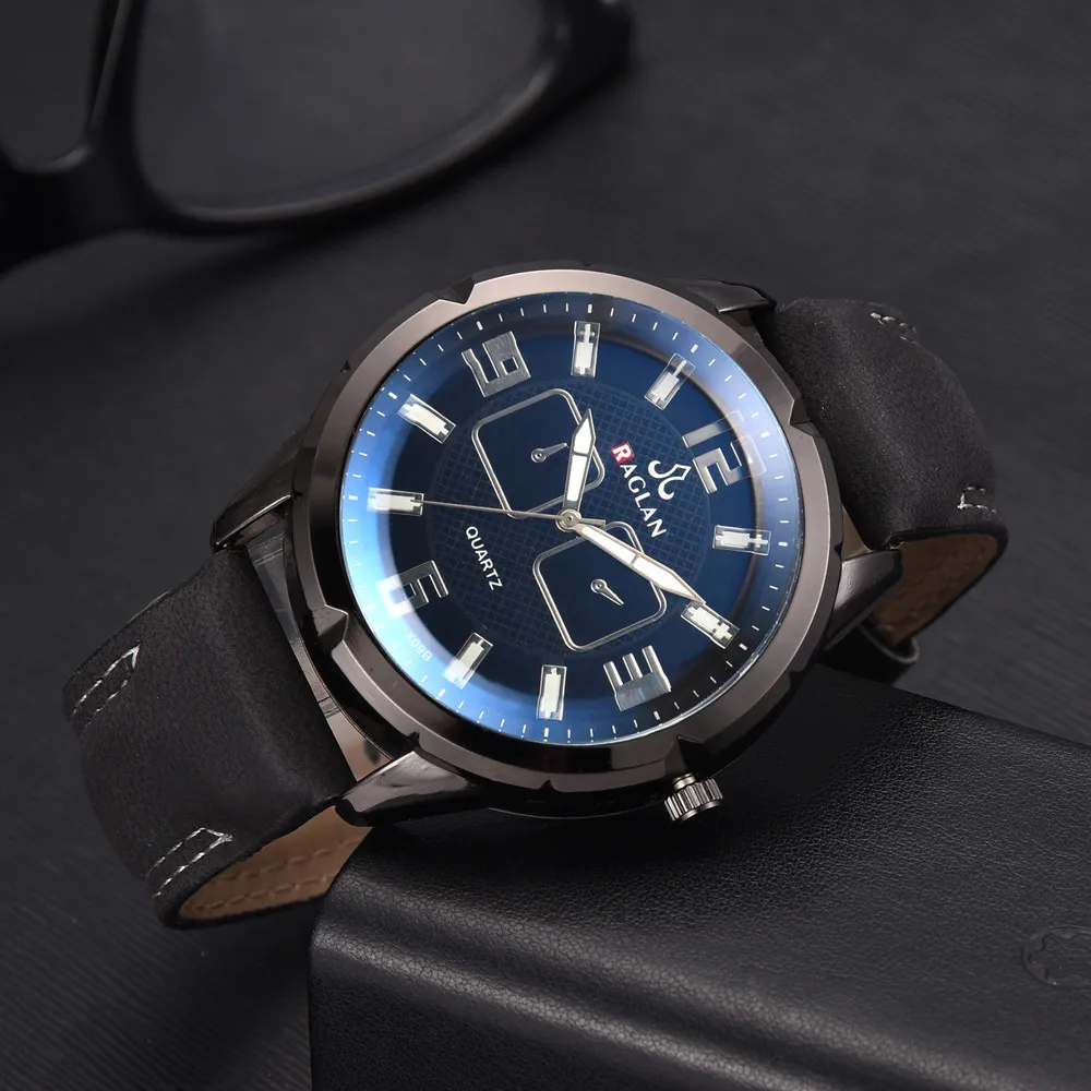 Fashion Men Quartz Watch High Quality Leather Clock Blu Ray Glass Wristwatch