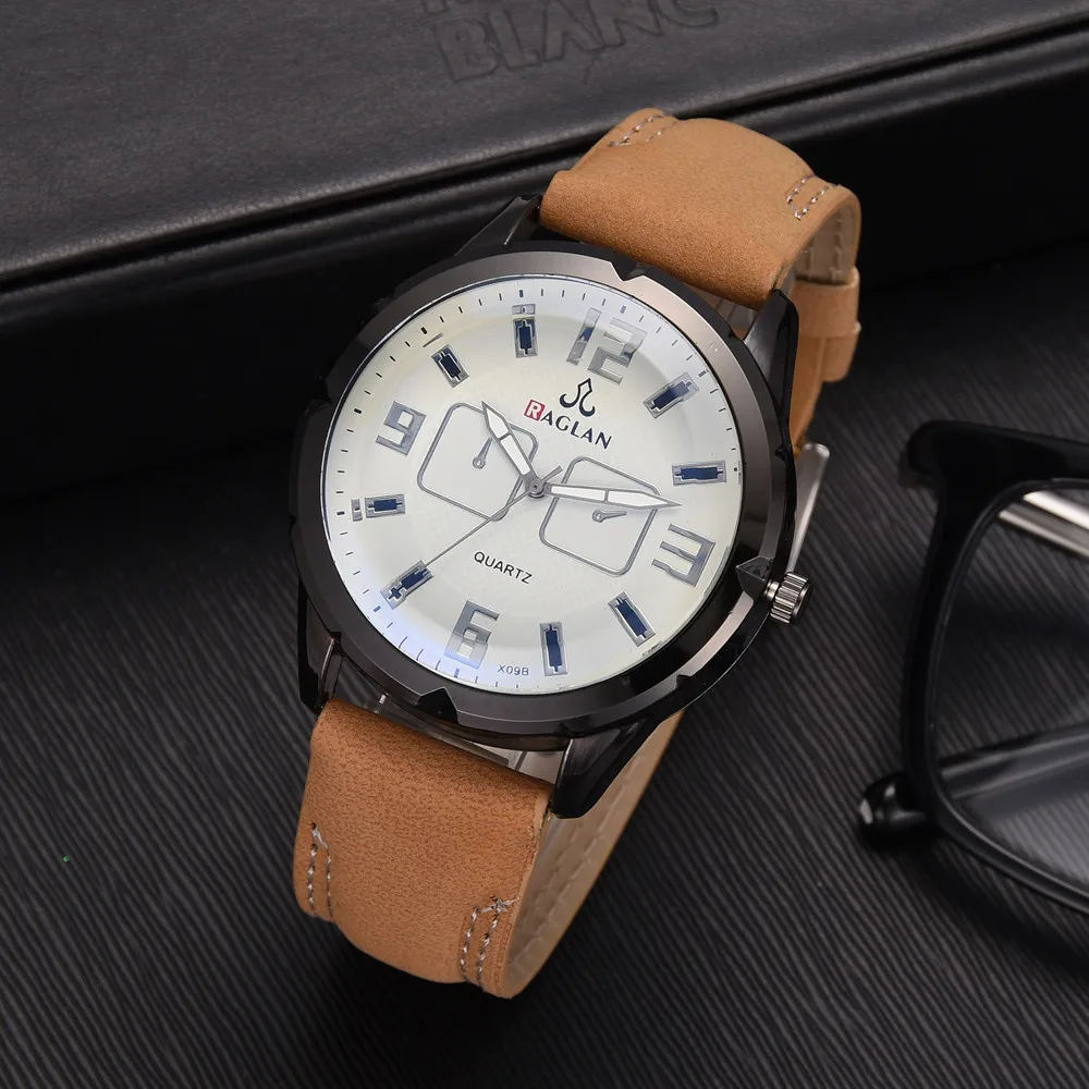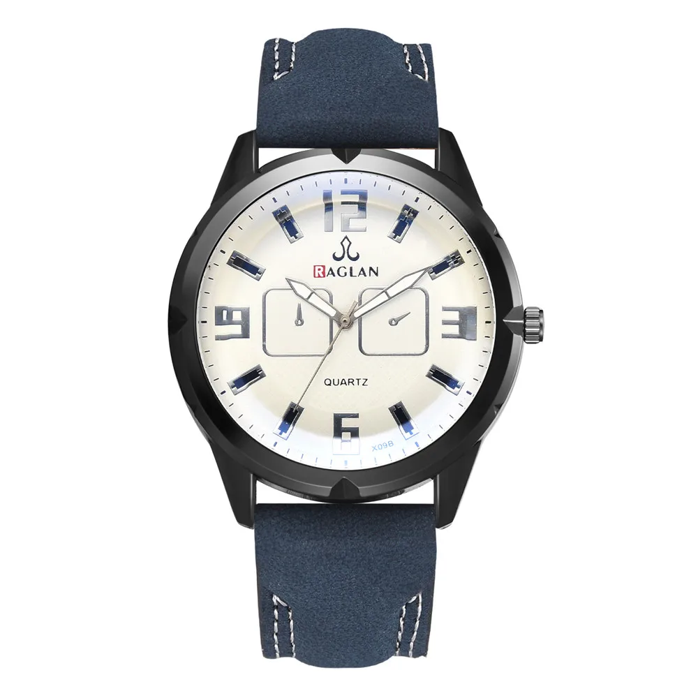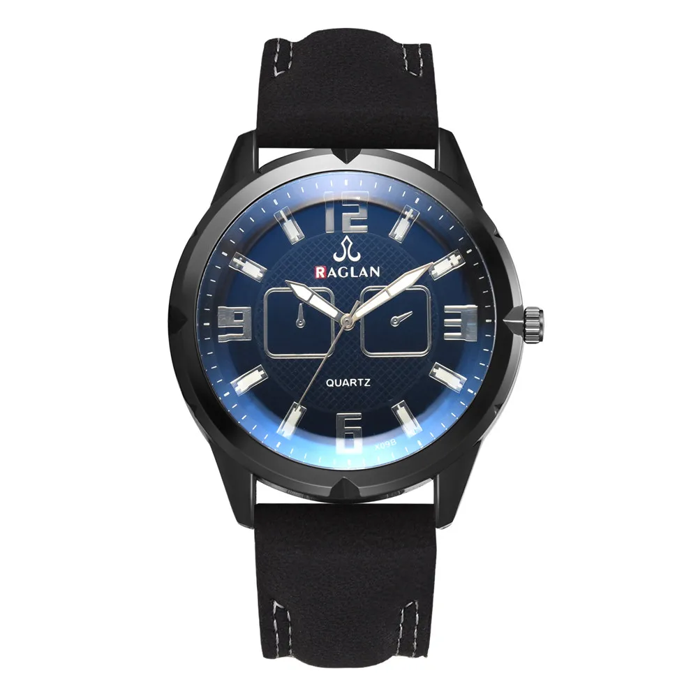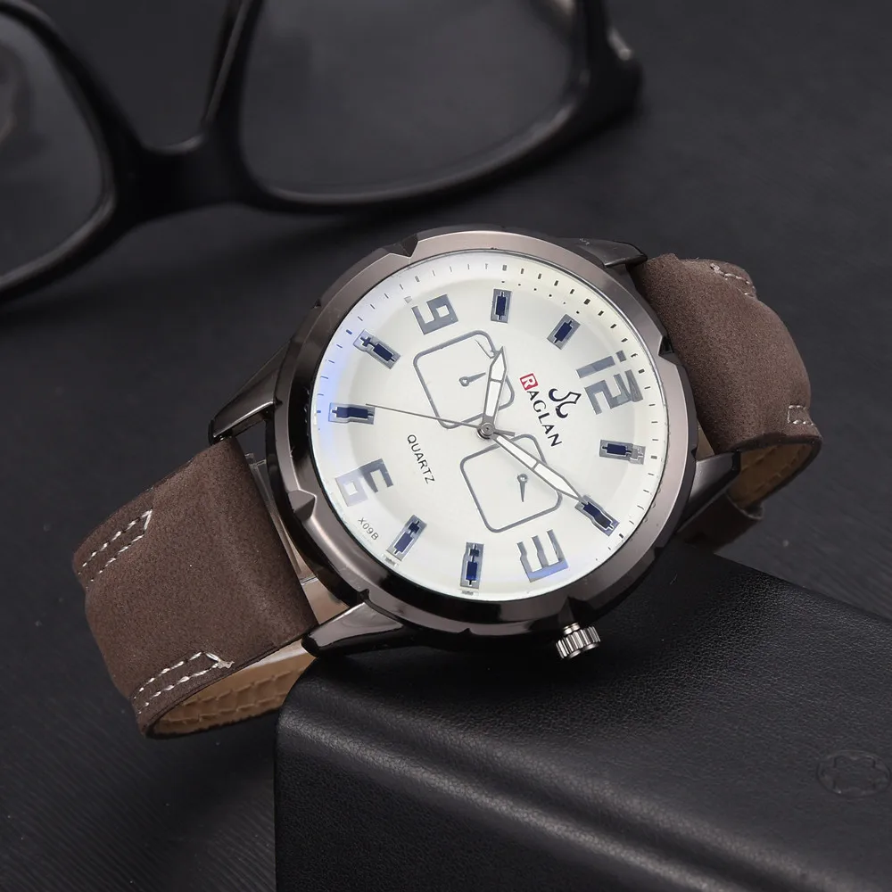 Fashion Men Quartz Watch High Quality Leather Clock Blu Ray Glass Wristwatch
