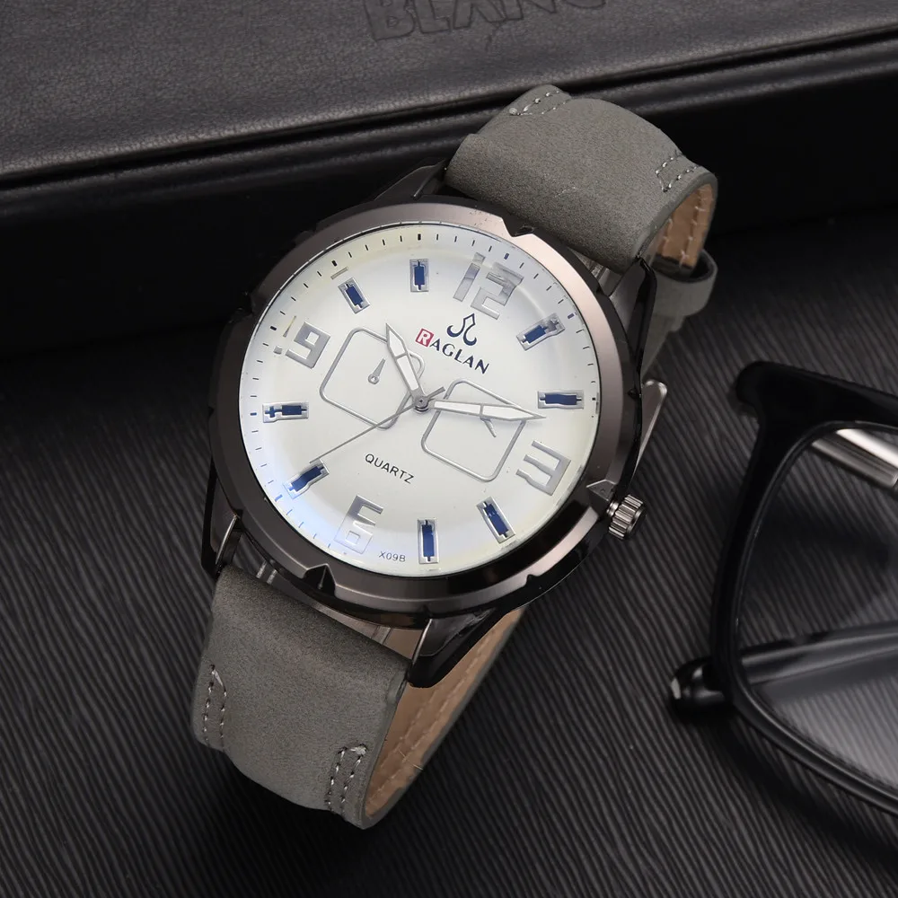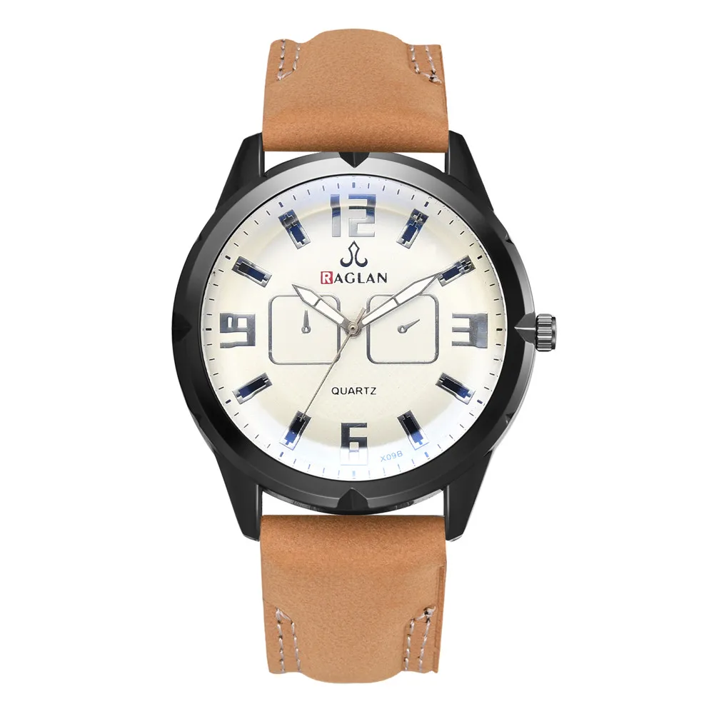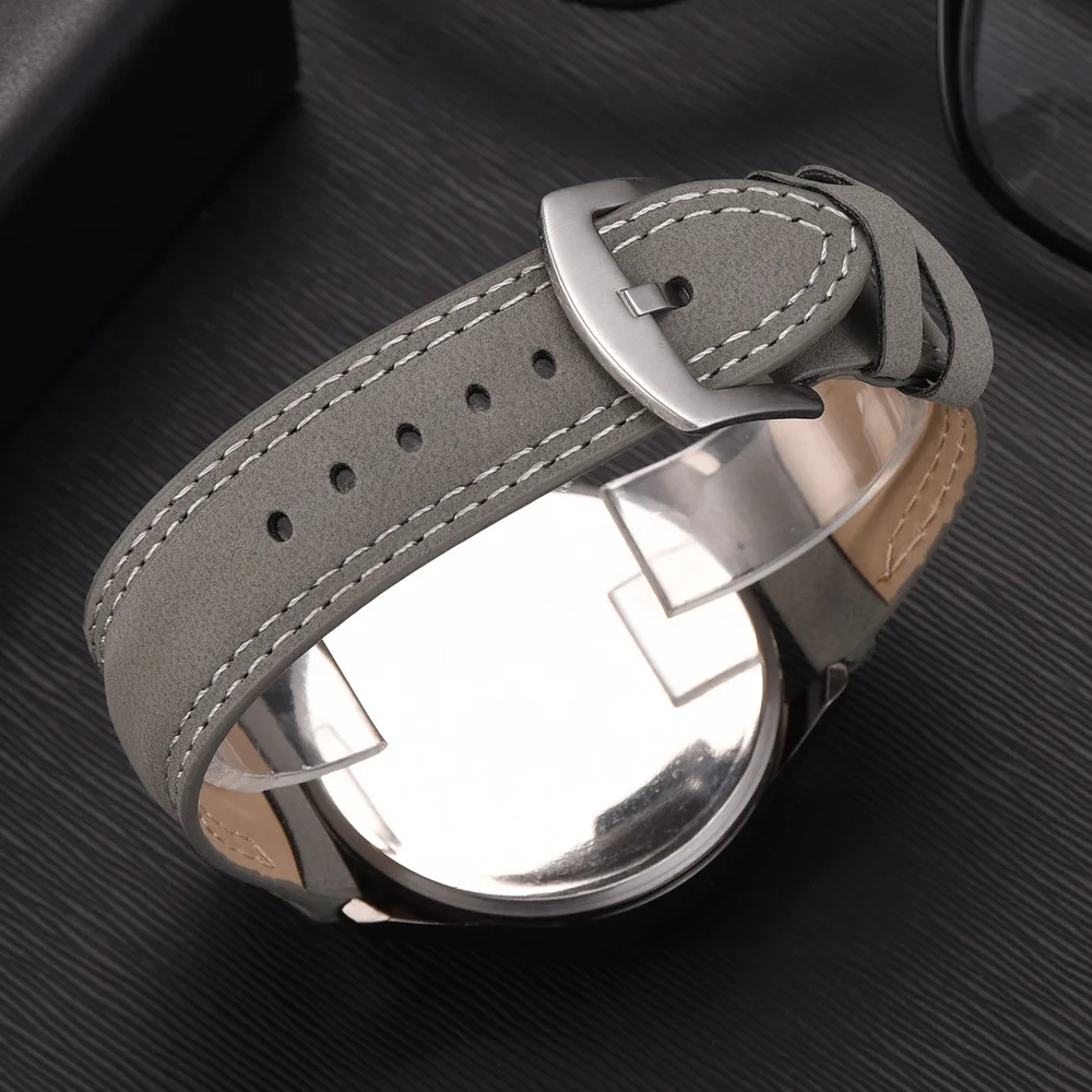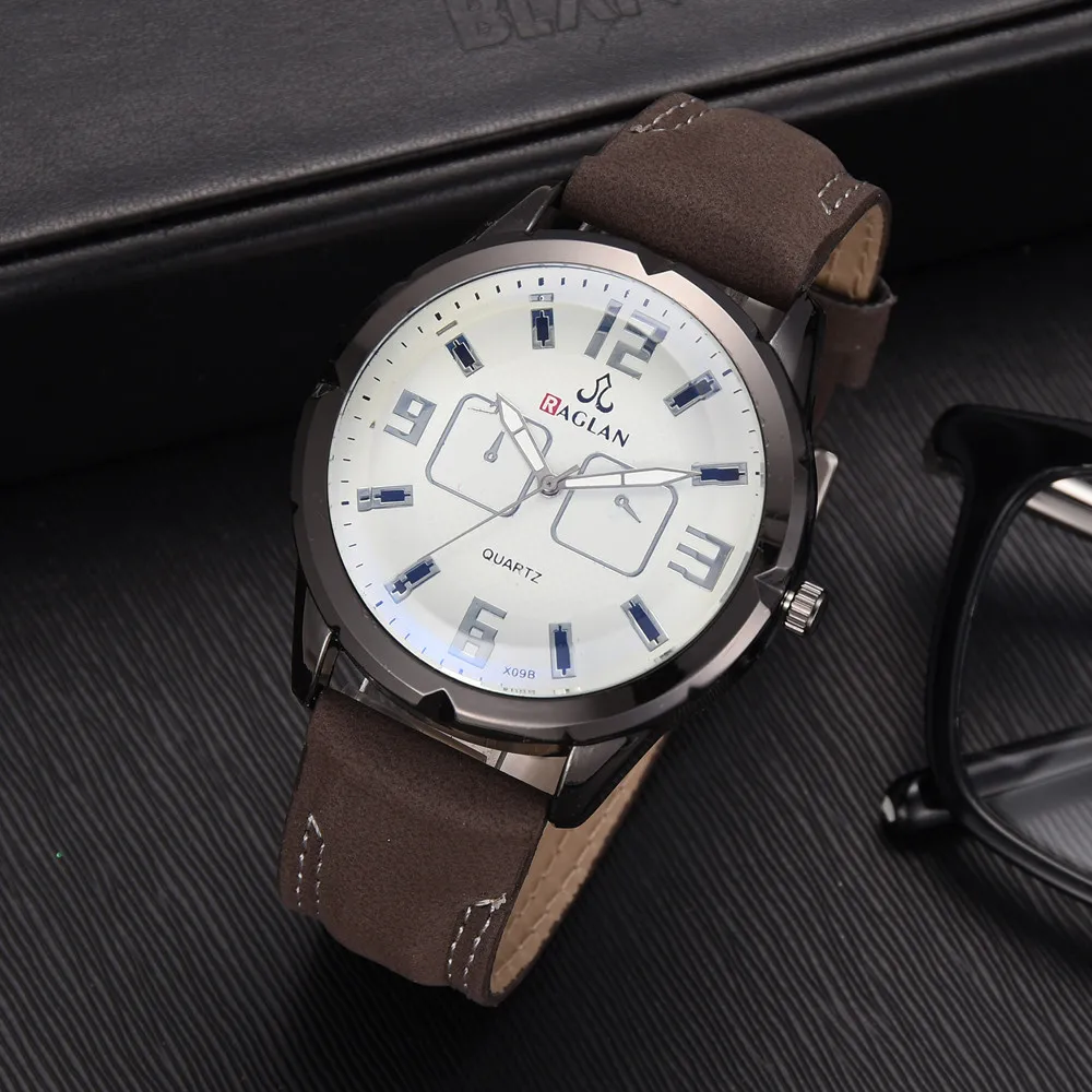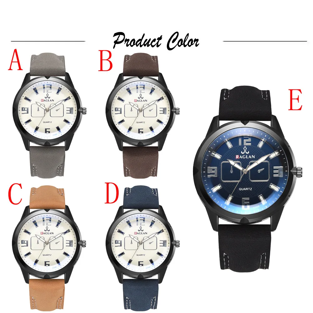 Fashion Men Quartz Watch High Quality Leather Clock Blu Ray Glass Wristwatch