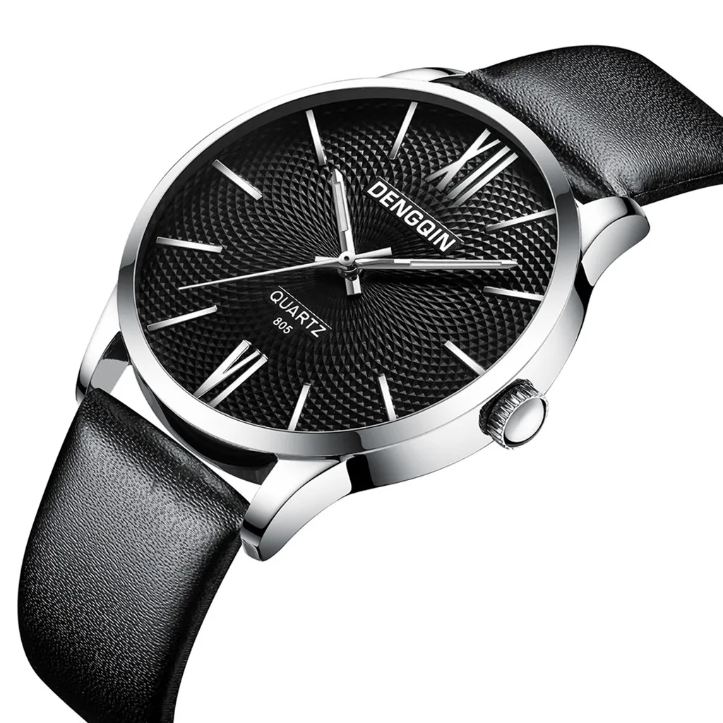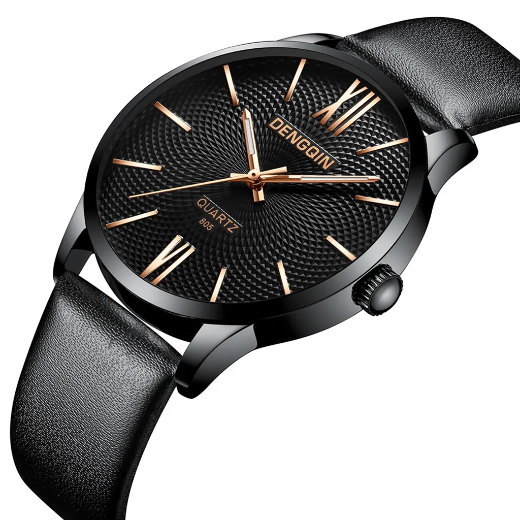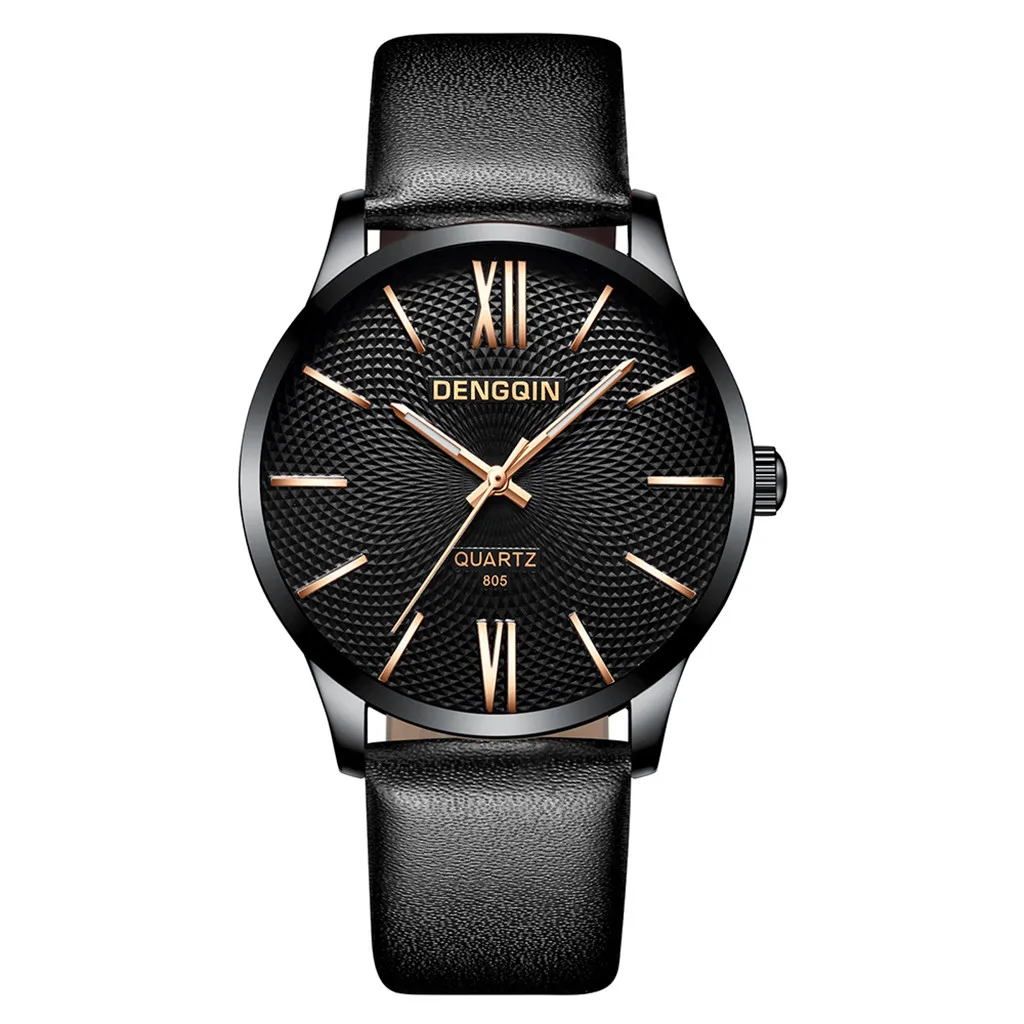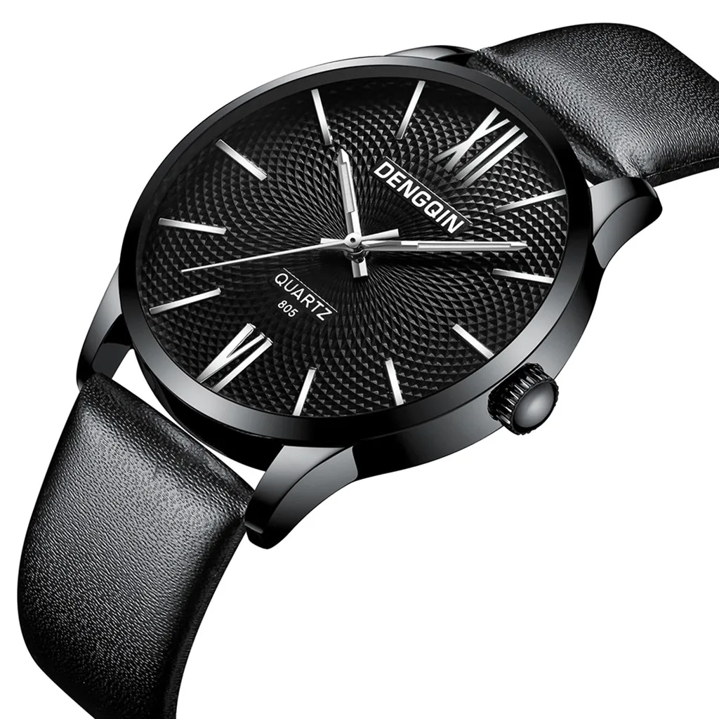 DISU Man Wrist Watch Luxury Quartz Military Stainless Steel Dial Leather Band wristwatch mens watches mens 2019 men watches