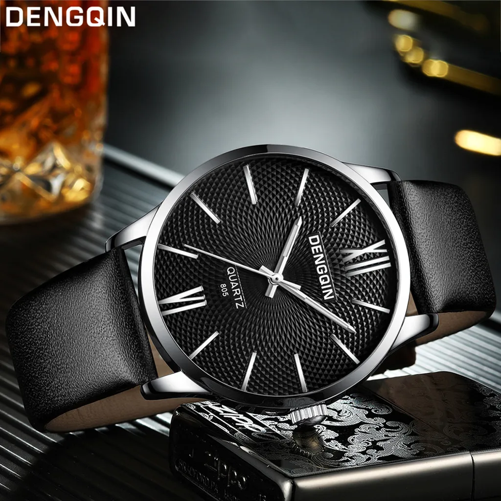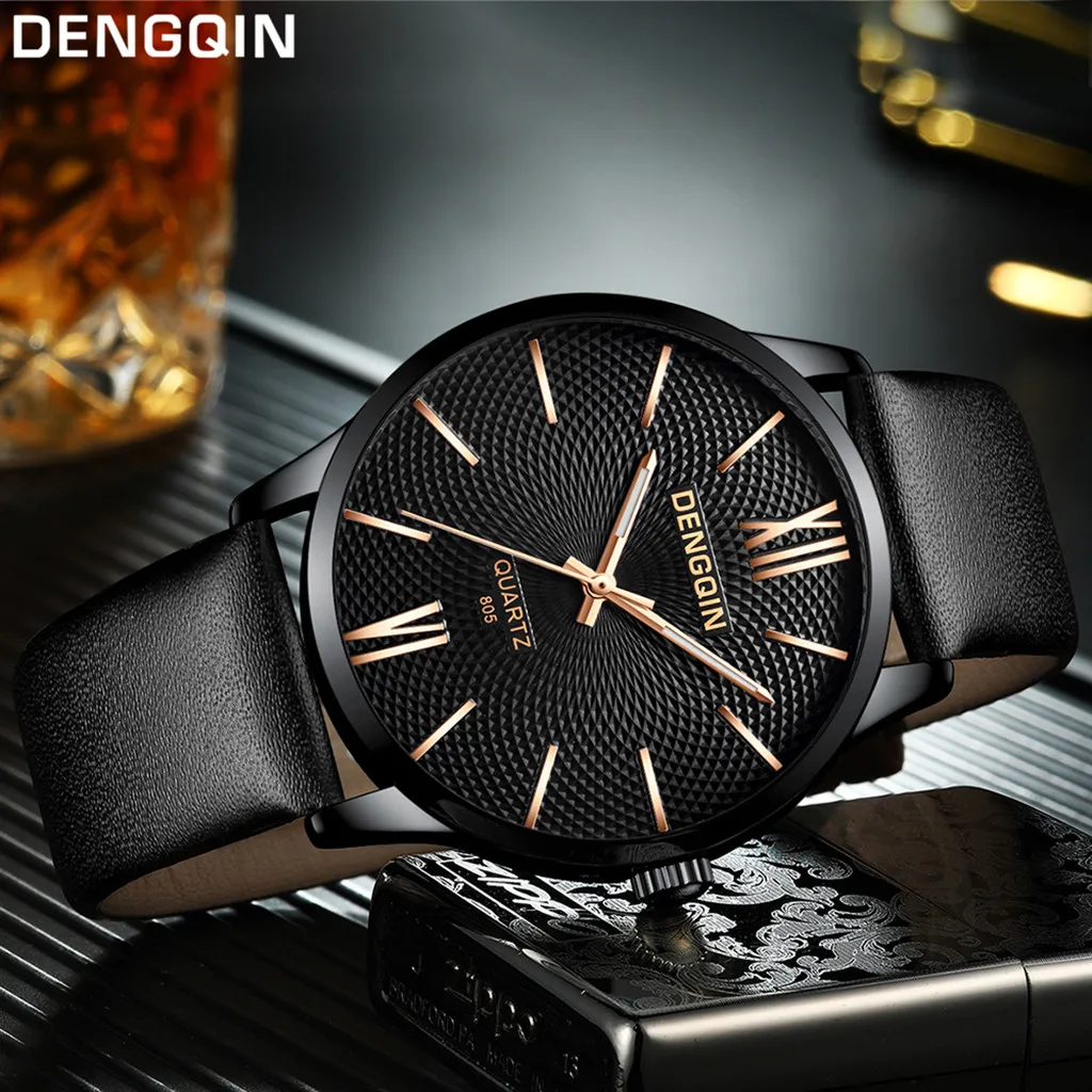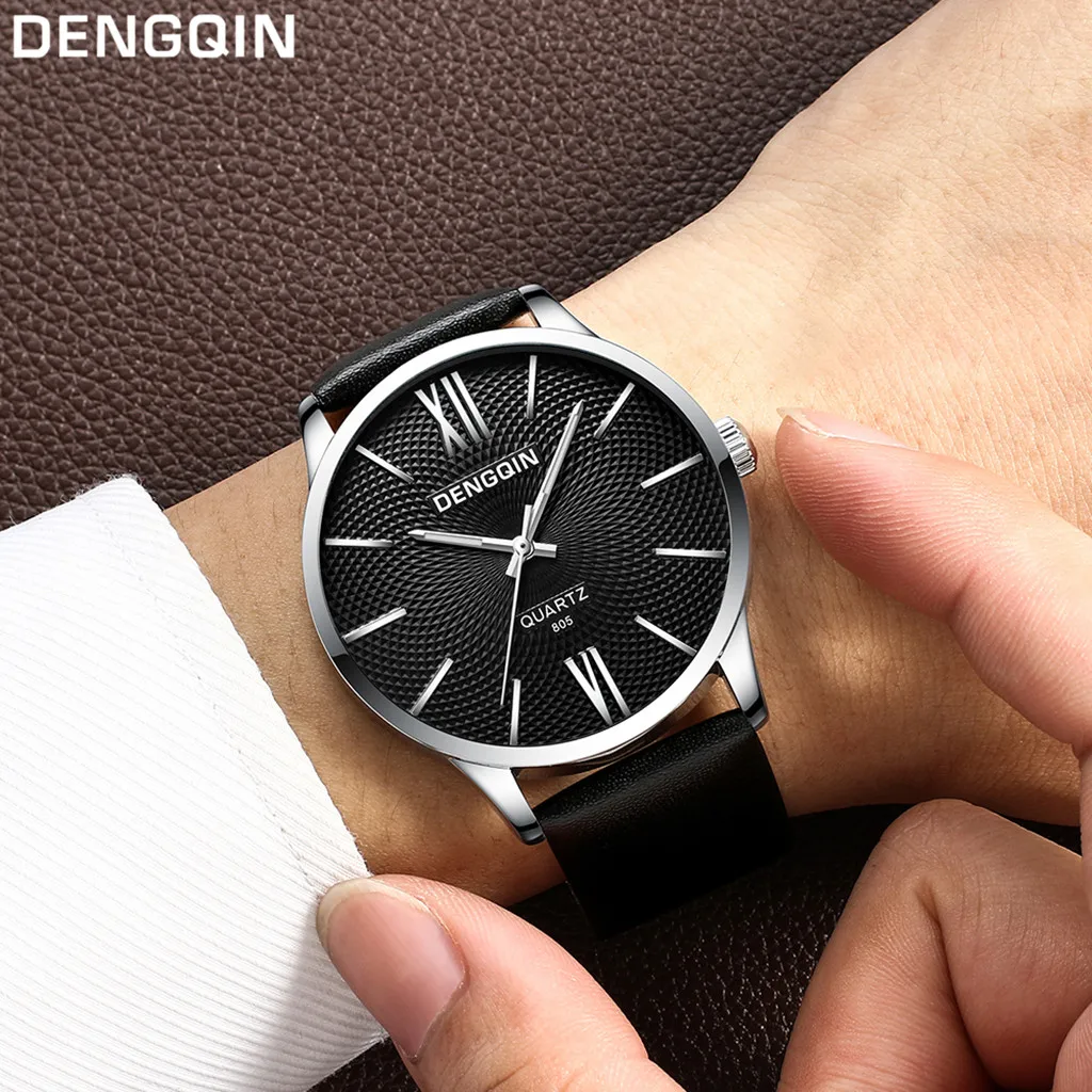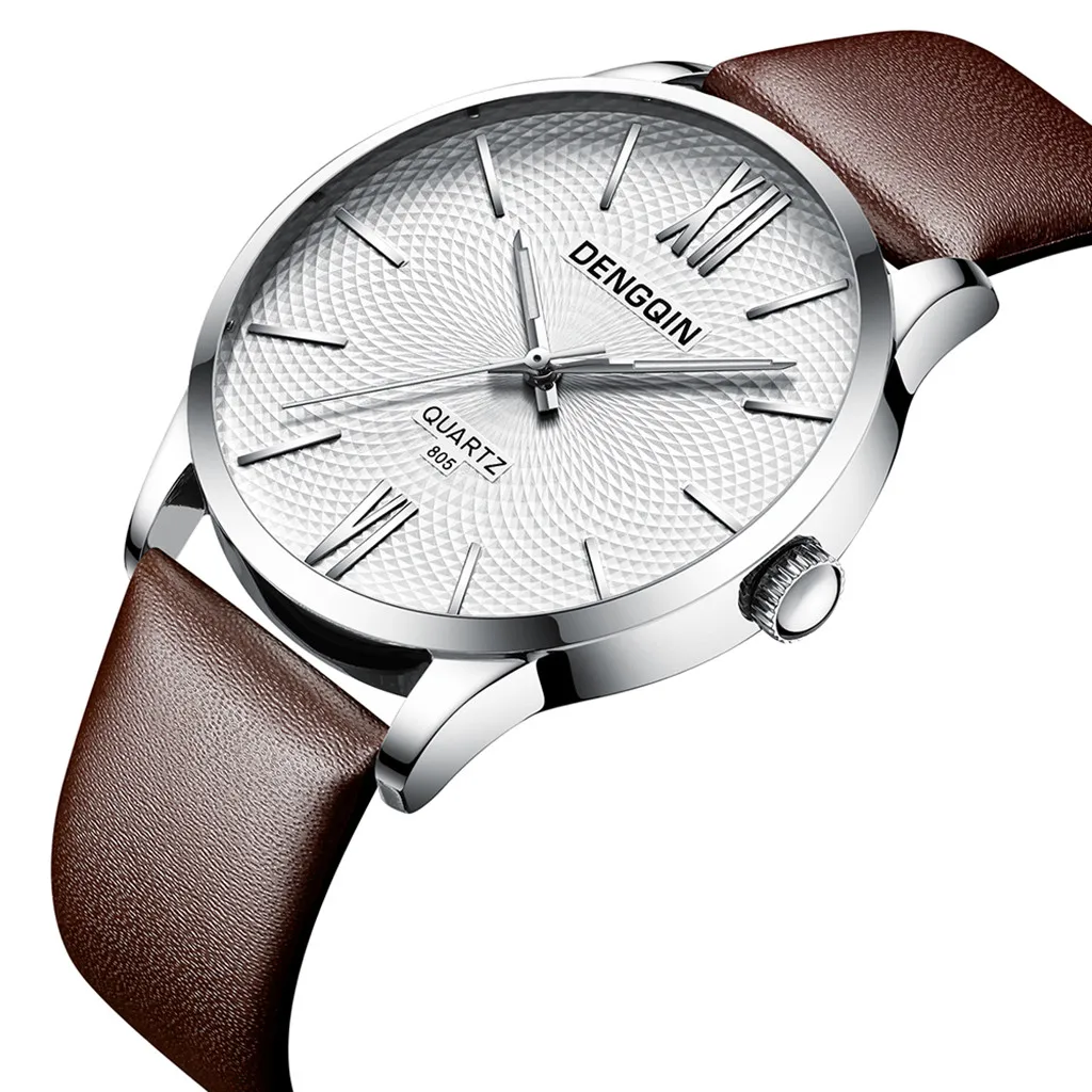 DISU Man Wrist Watch Luxury Quartz Military Stainless Steel Dial Leather Band wristwatch mens watches mens 2019 men watches