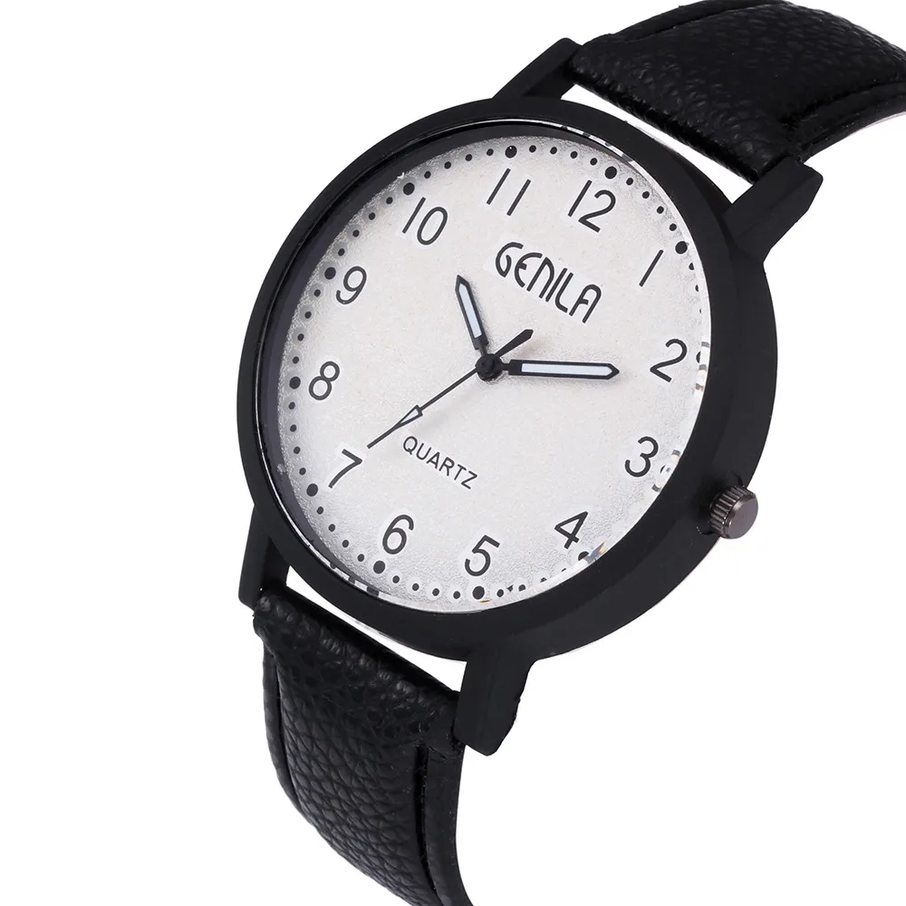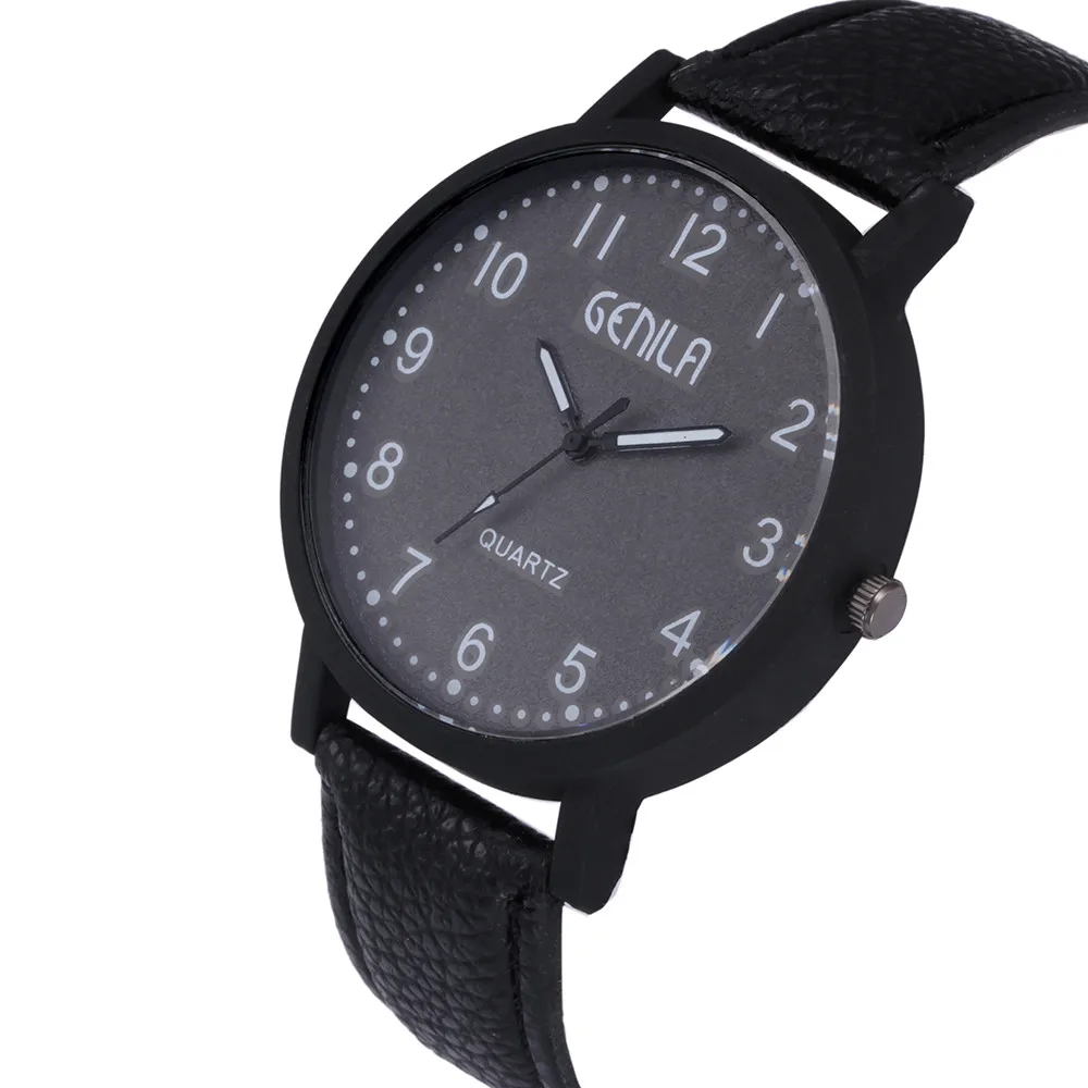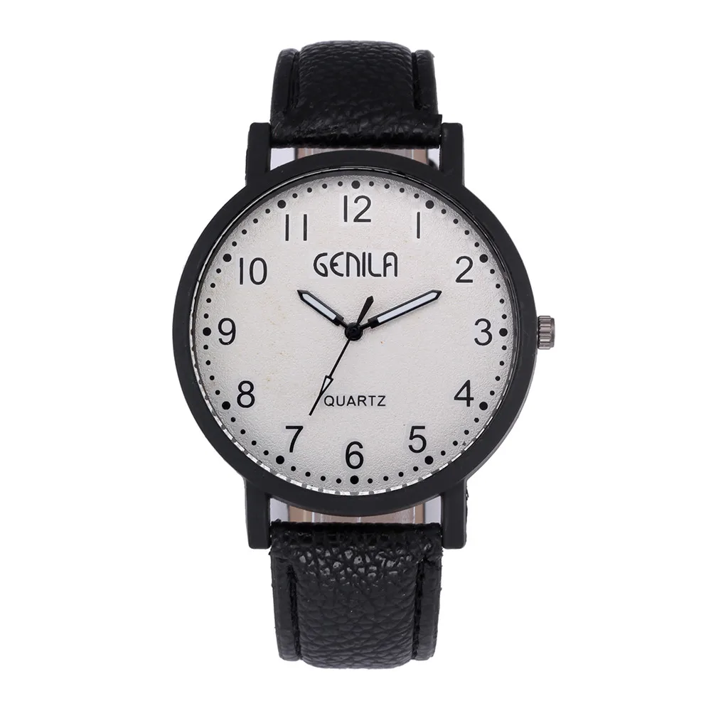 New Men Watch Stainless Steel Clock Male Quartz Alloy Belt Casual Wristwatch Feature: Case Diameter: 42mm Material: PU Display: Analog Unique round dial design, very chic and stylish. Color:Black,White,Brown. Dial Shape: Round Weight:40g Movement: Quartz Wearing this wrist watch is so wonderful experiences, as if you are touching art directly....