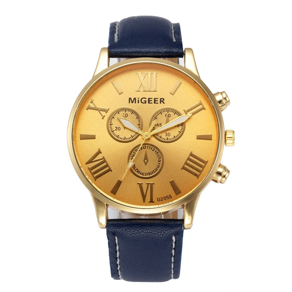 DISU Men Watch Classic Leather Strap Quartz Casual watch man big dial watches for men mens wrist watches