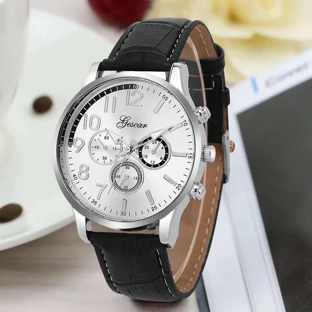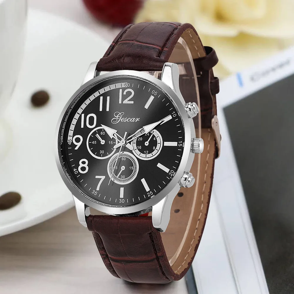 Men's Glass Mirror Personality Business Military Circular Dial Quartz Watch