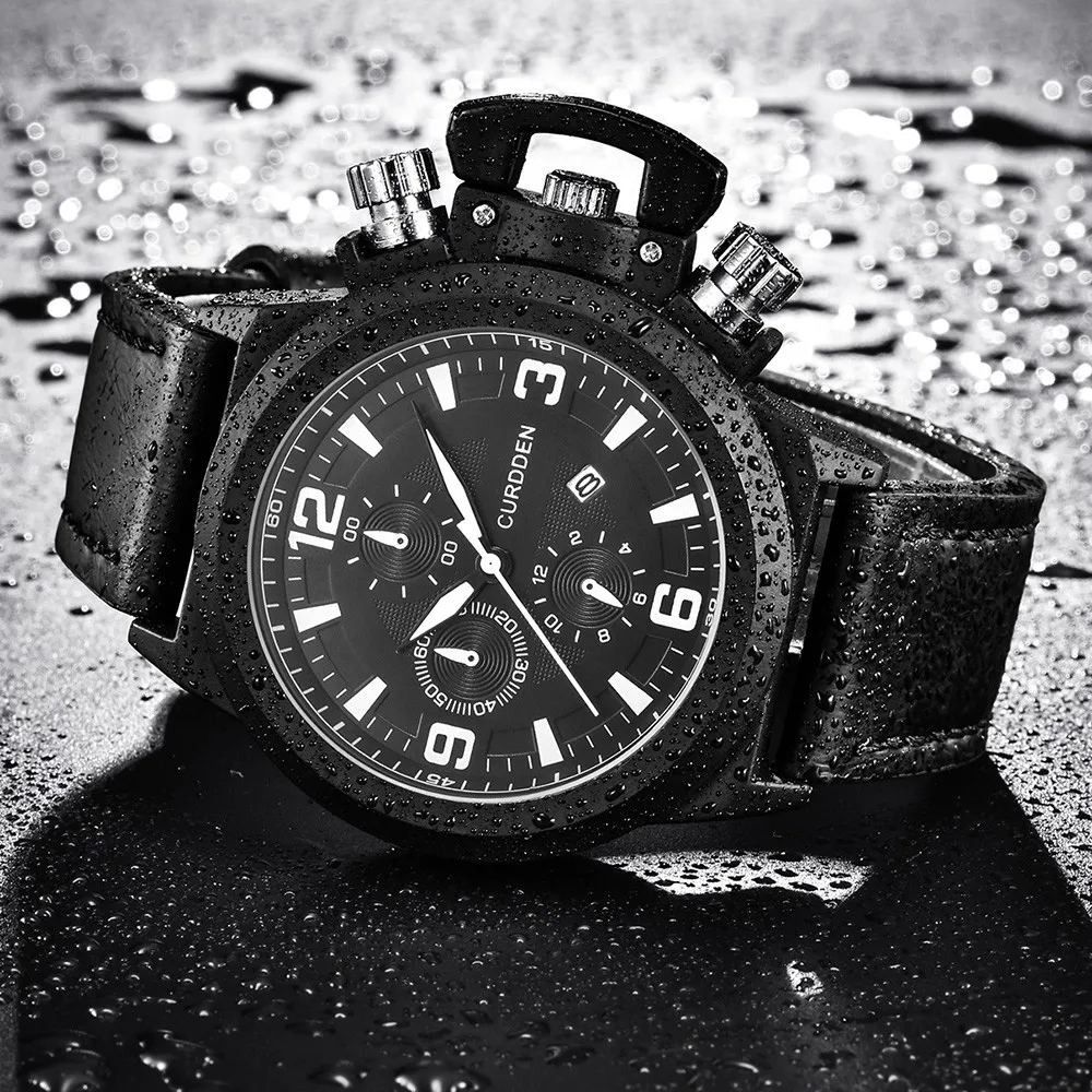 DISU Men Watch Leather Quartz Luxury Brand Waterproof Wristwatch Mens wrist watches day date relogio masculino
