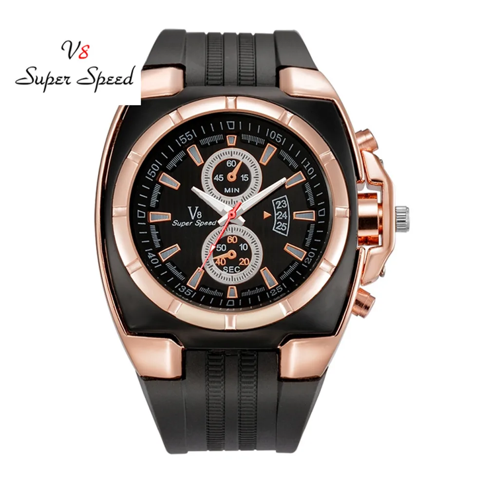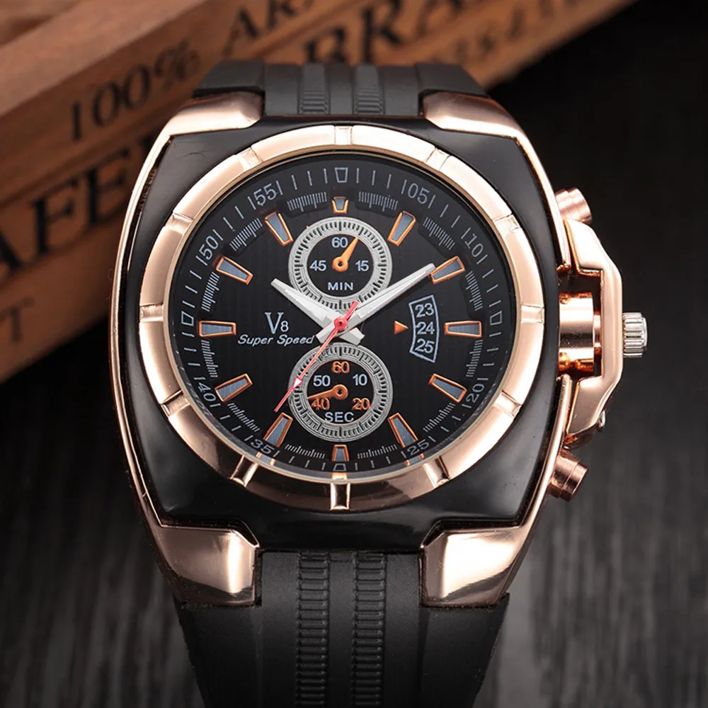 1PCS Fashion Men's Thin Silica Gel Students Sports Quartz Watch Description: Movement type: quartz Mirror material: glass mirror Applicable people: GM Strap Material: Silicone 100% new high quality. Model: V8-03 Clasp style: pin buckle Display Type: Pointer + Number Crown type: spiral crown Strap Color: Black Style: Sports Clasp material:...