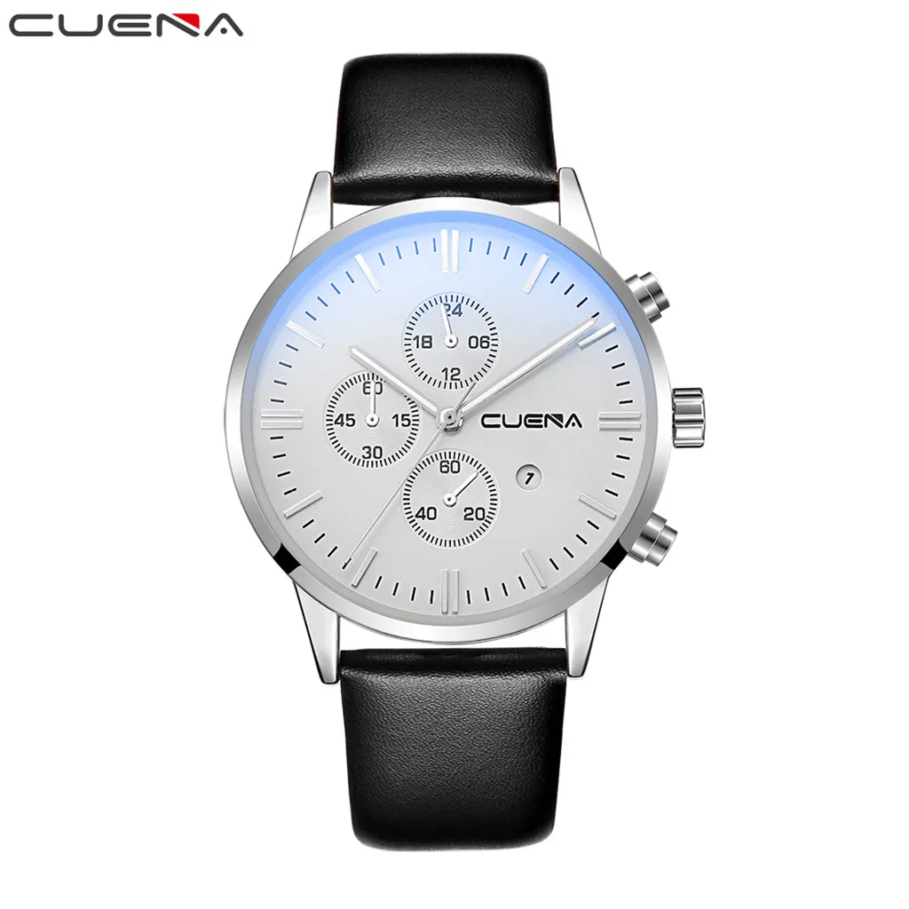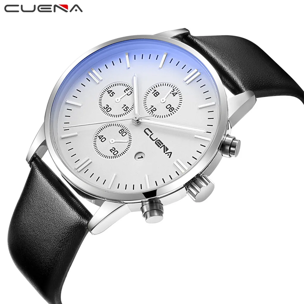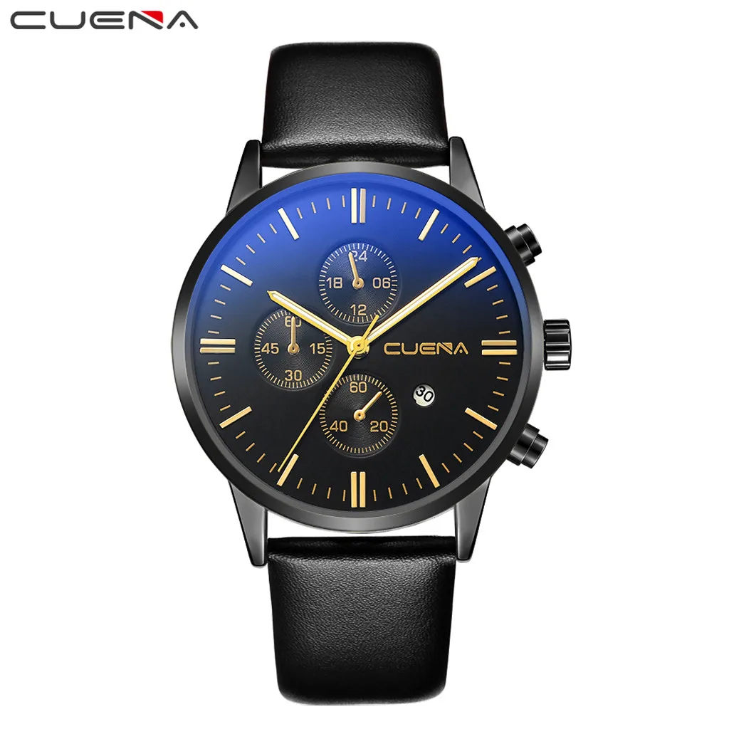 DISU Men Watches Faux Leather Blue Ray Glass Quartz Analog watch mens wrist watches day date relogios masculino