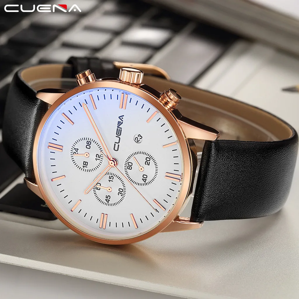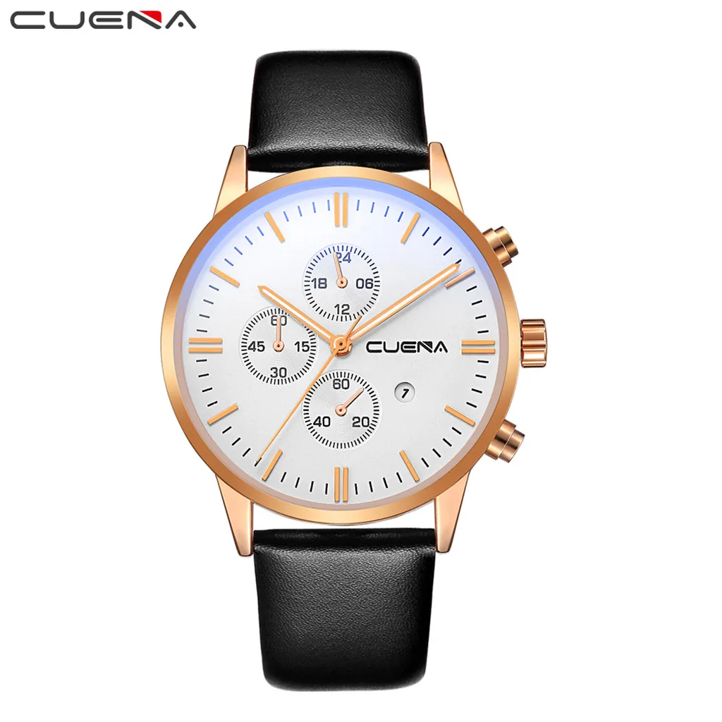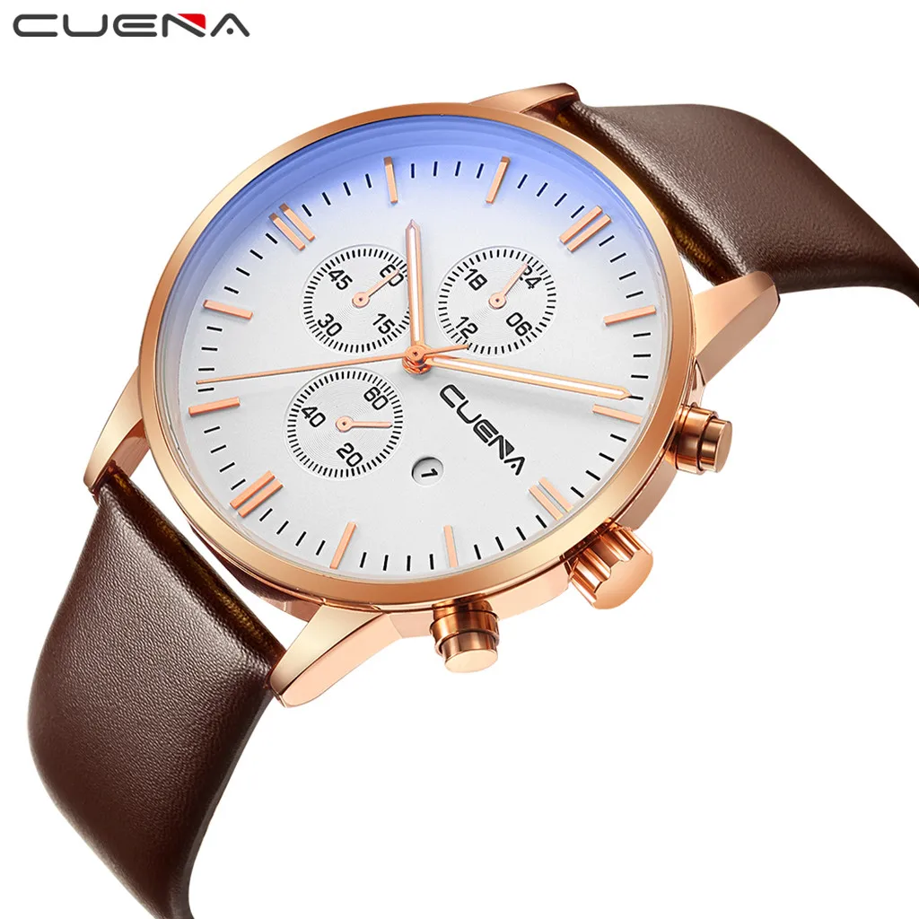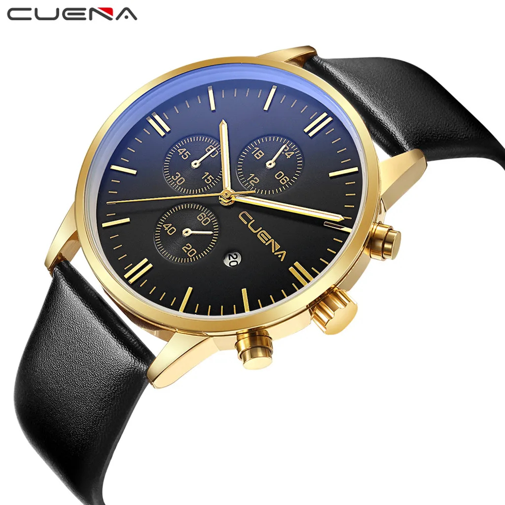 DISU Men Watches Faux Leather Blue Ray Glass Quartz Analog watch mens wrist watches day date relogios masculino