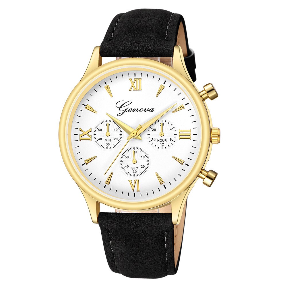 Luxury Fashion Faux Leather Mens Blue Ray Glass Quartz Analog Watches