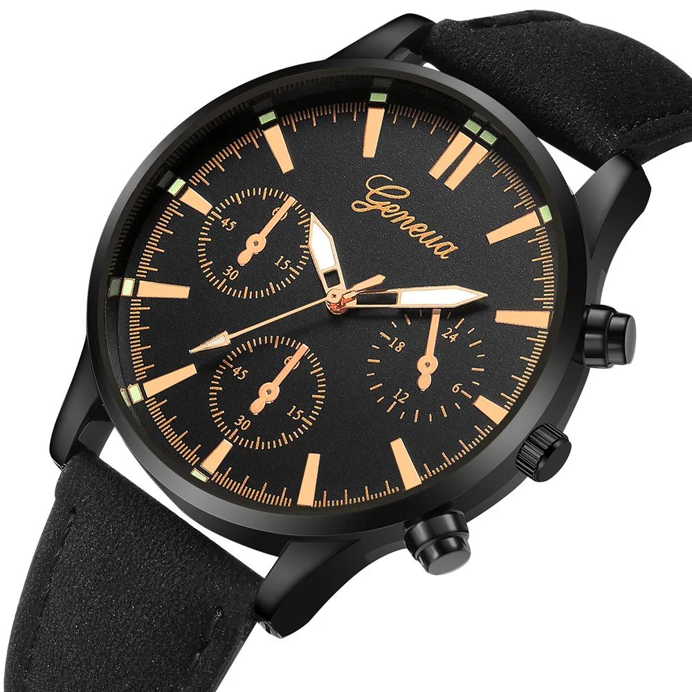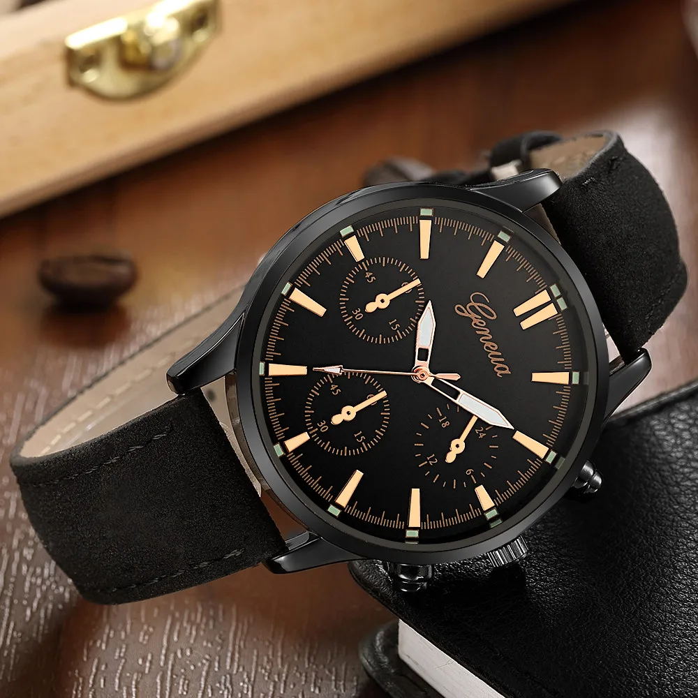 Luxury Quartz Sport Military Stainless Steel Dial Leather Band Wrist Watch