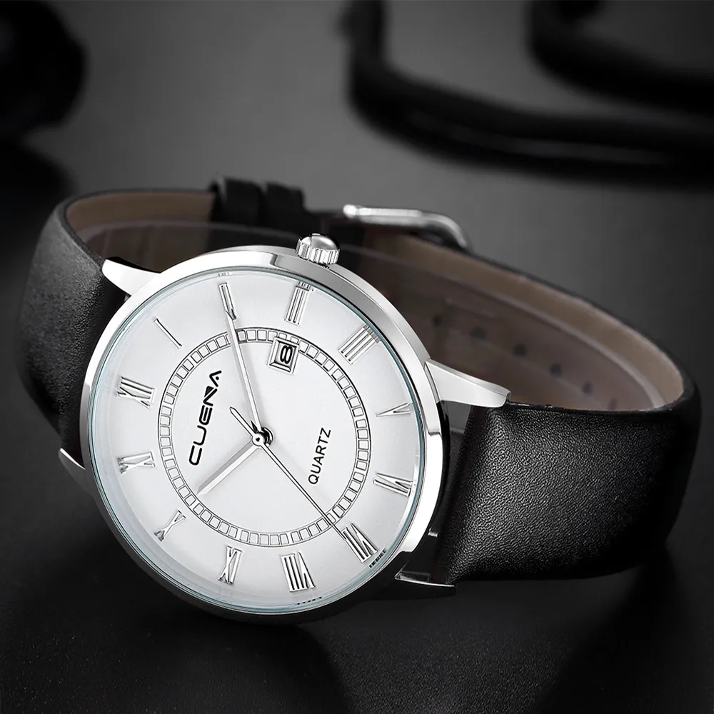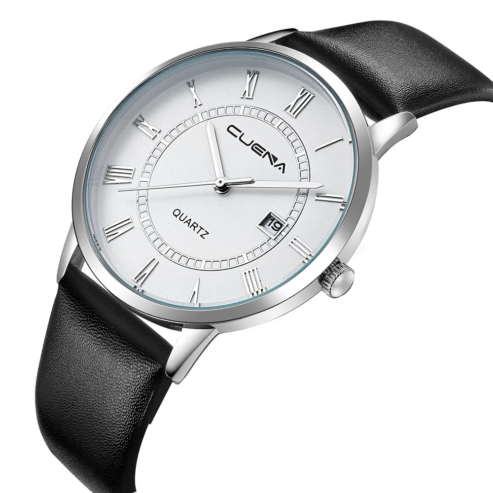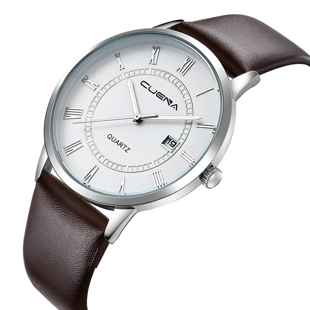 DISU Men Wrist Watch Luxury Quartz Military Stainless Steel Dial Leather Band wristwatch mens watches mens 2019 clock men