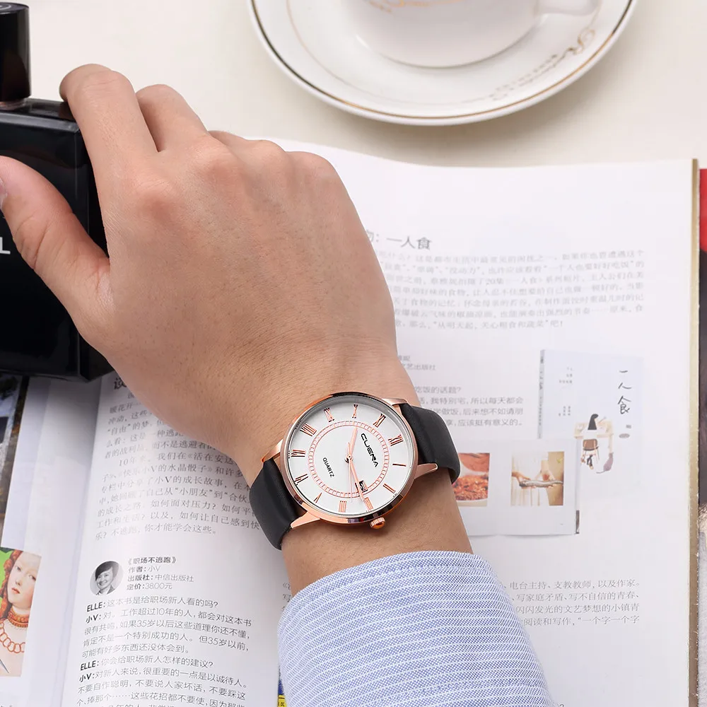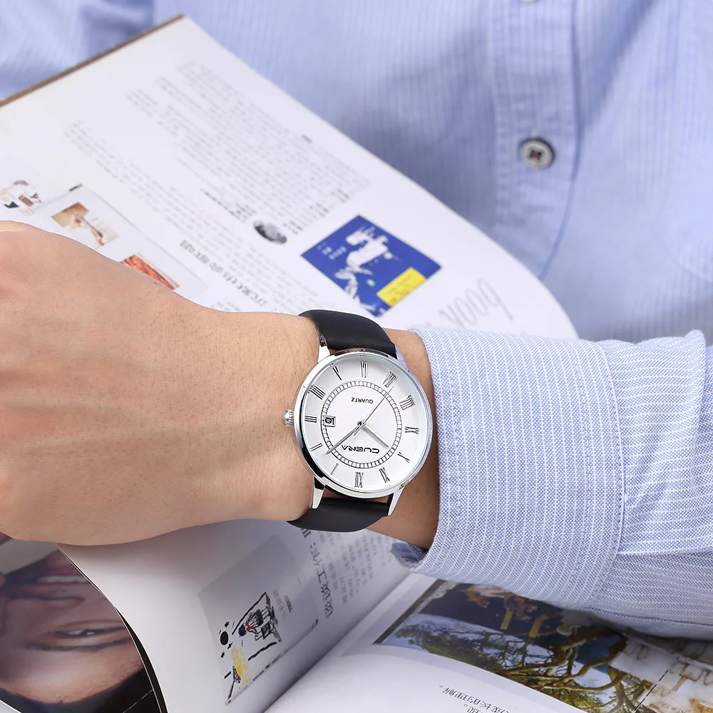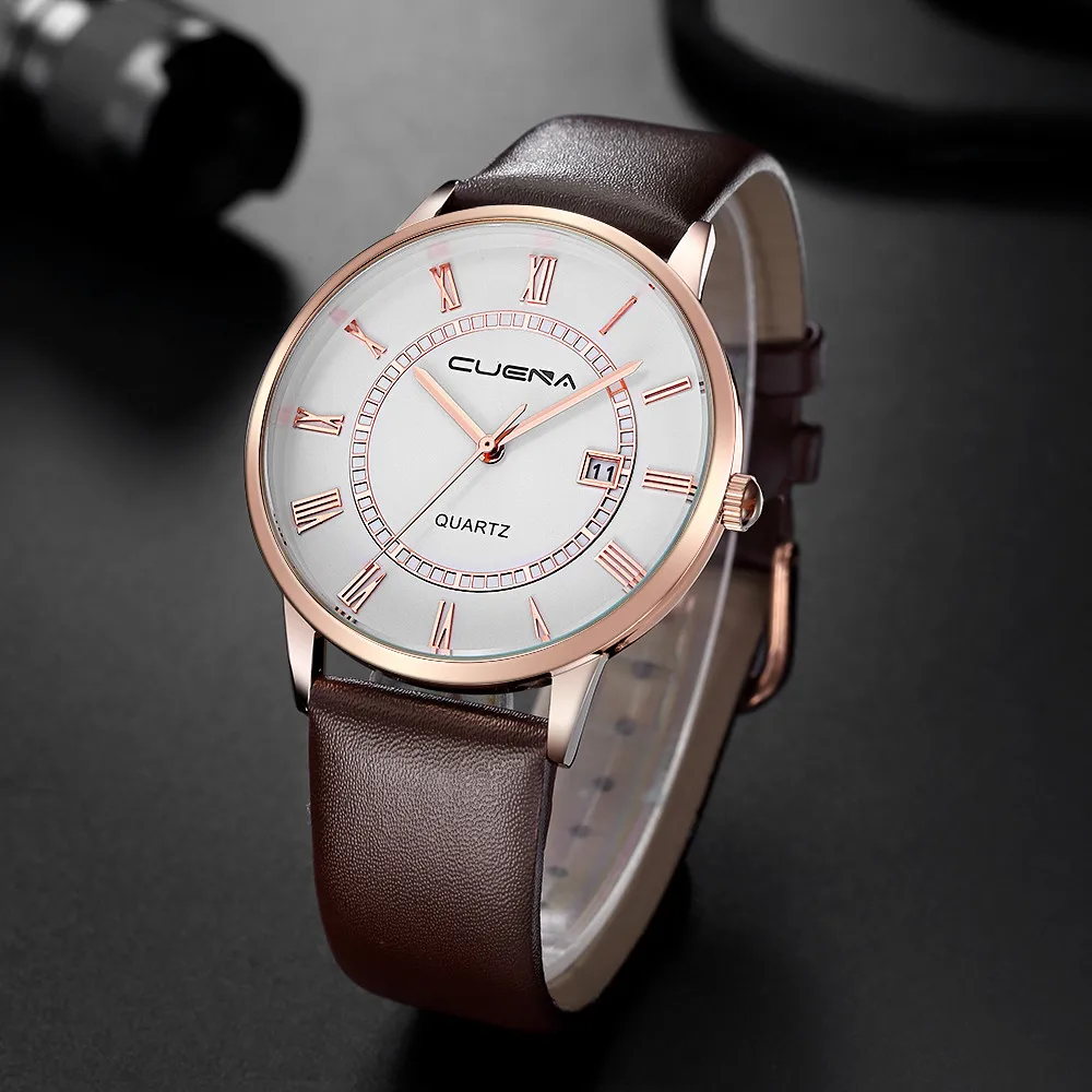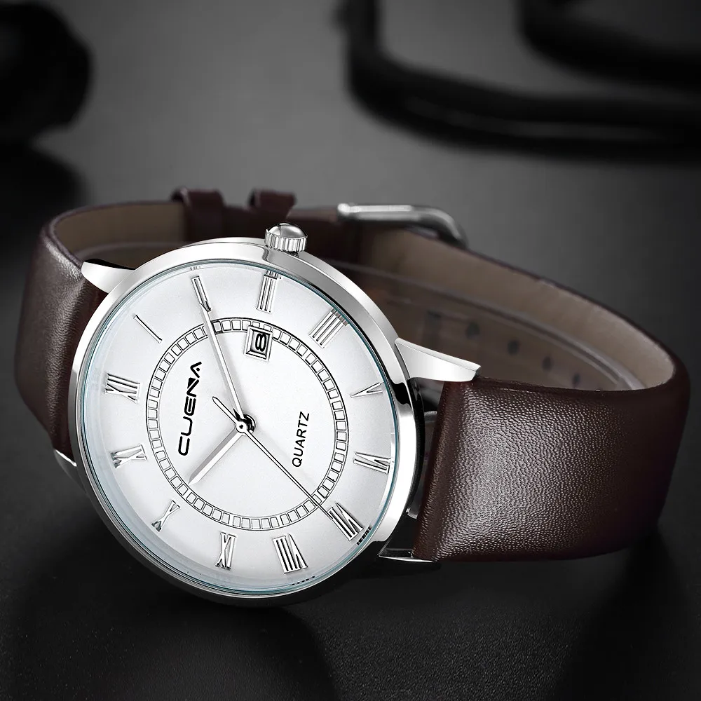 DISU Men Wrist Watch Luxury Quartz Military Stainless Steel Dial Leather Band wristwatch mens watches mens 2019 clock men