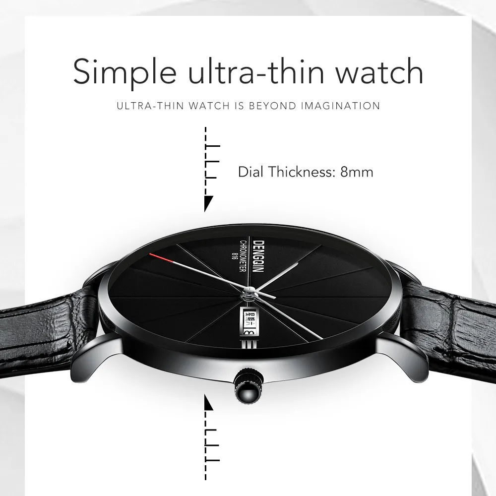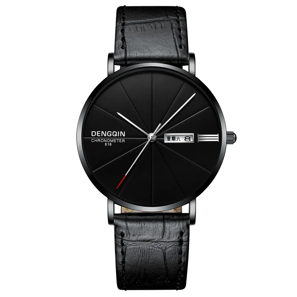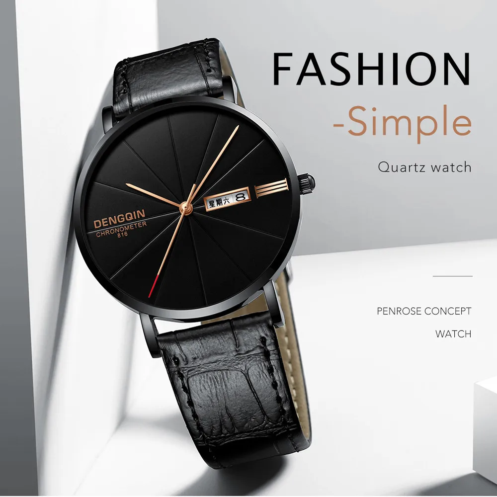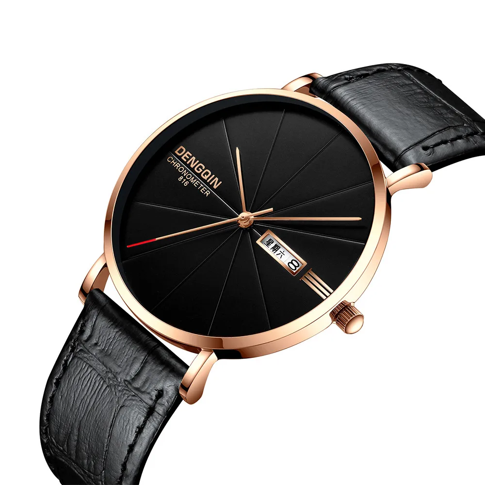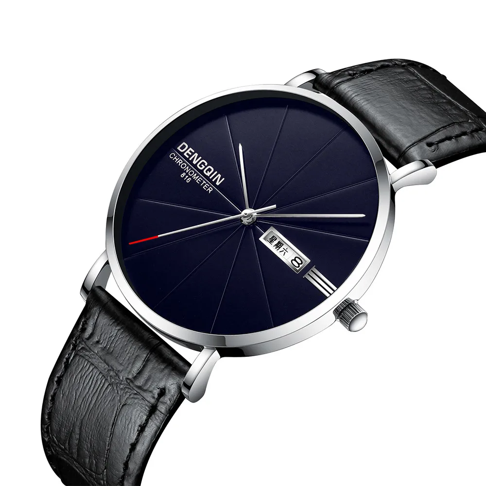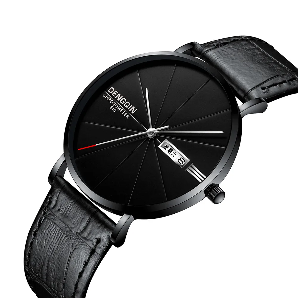 DISU Men Wrist Watch Luxury Quartz Sport Military Leather Band watch mens big dial watches for men relogios masculino