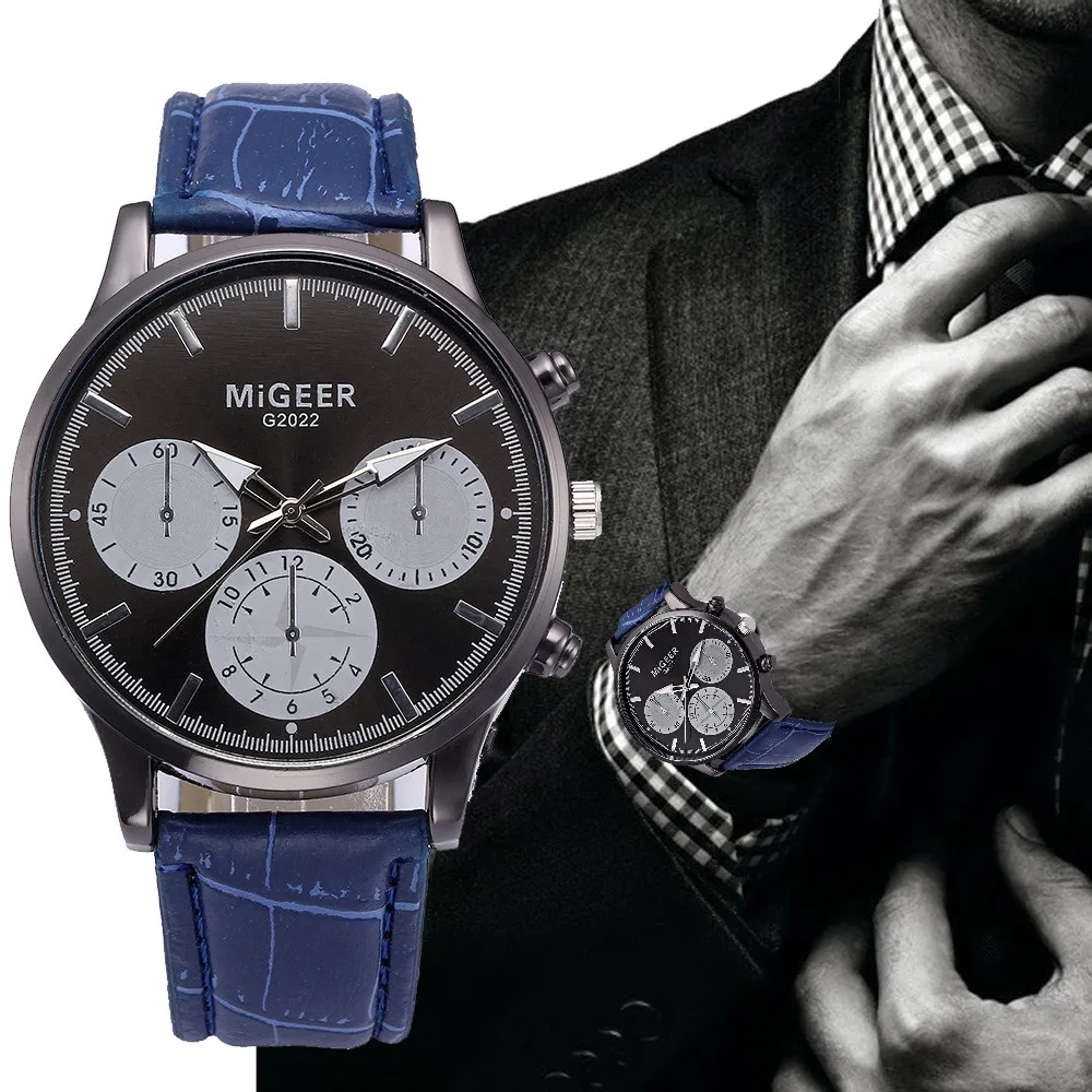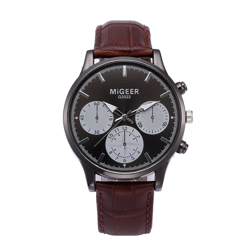 DISU Men Wrist Watch Retro Design Leather Band Analog Alloy Quartz watch man vintage men wristwatch clock men watches