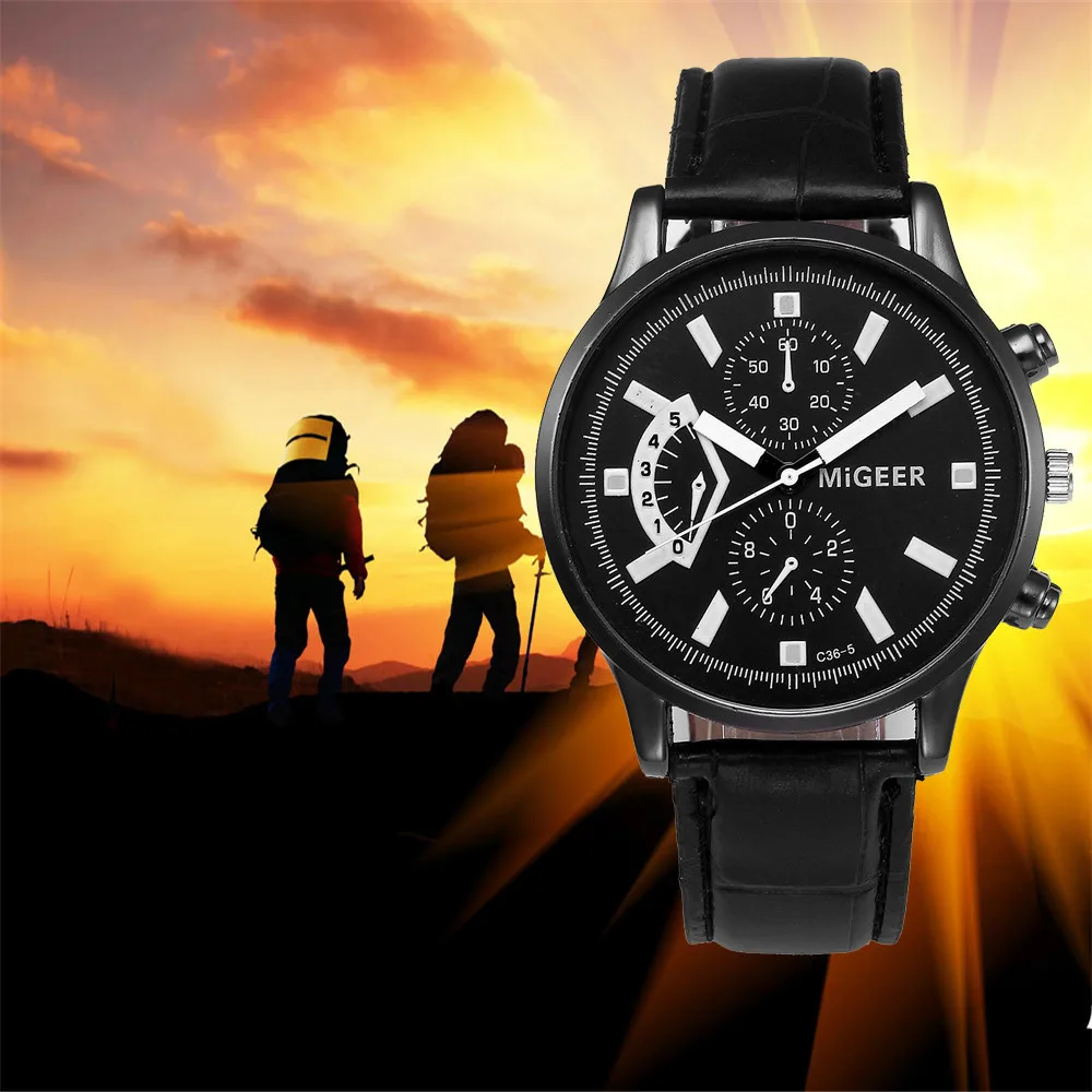 DISU Men Wrist Watch Retro Design Leather Band Analog Alloy Quartz watch man vintage men wristwatch clock relogios masculino