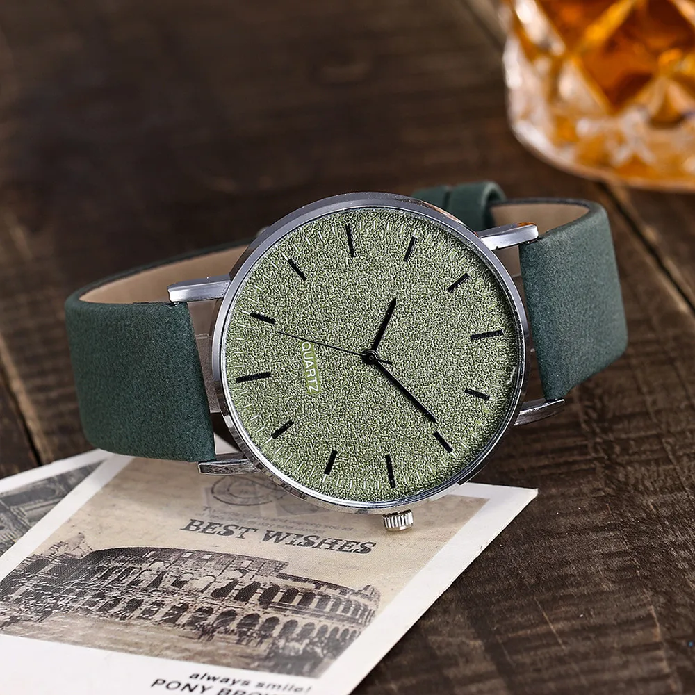 Fashion Mens Watch Quartz Alloy Ultra-thin Shell Wristwatch Matte Leather Simple Male Clock Erkek Kol Saati Watches for Men