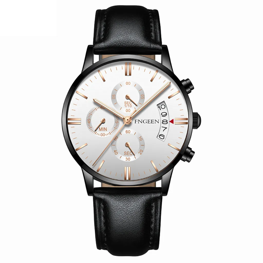 FNGEEN Man Watch Luxury Casual Quartz Waterproof Calendar Leather Belt Watches Mens 2019 Men Wristwatch Clock horloges mannen