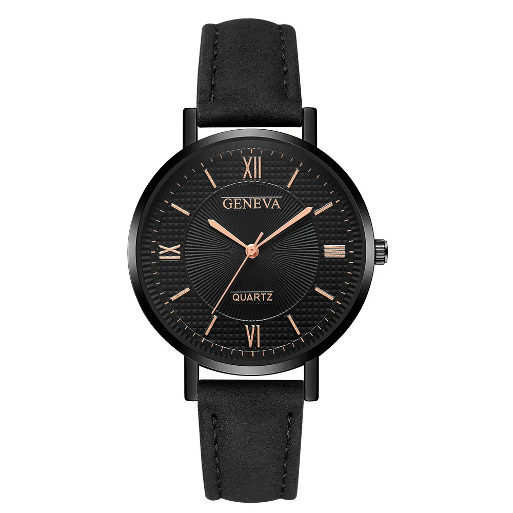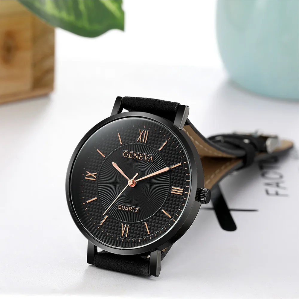 Geneva Brand Fashion Men's Watch Leather Belt Wrist Watches Personality Roman Dial Male Clock Erkek Kol Saati