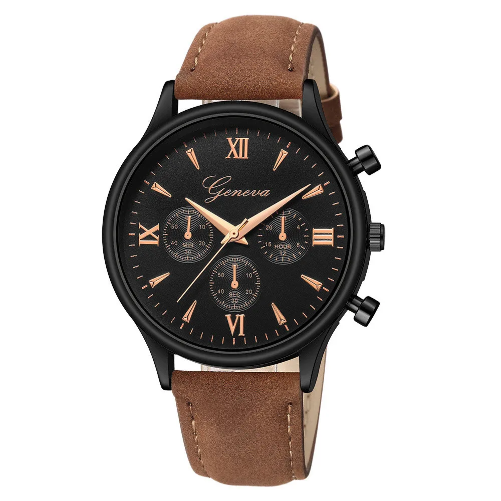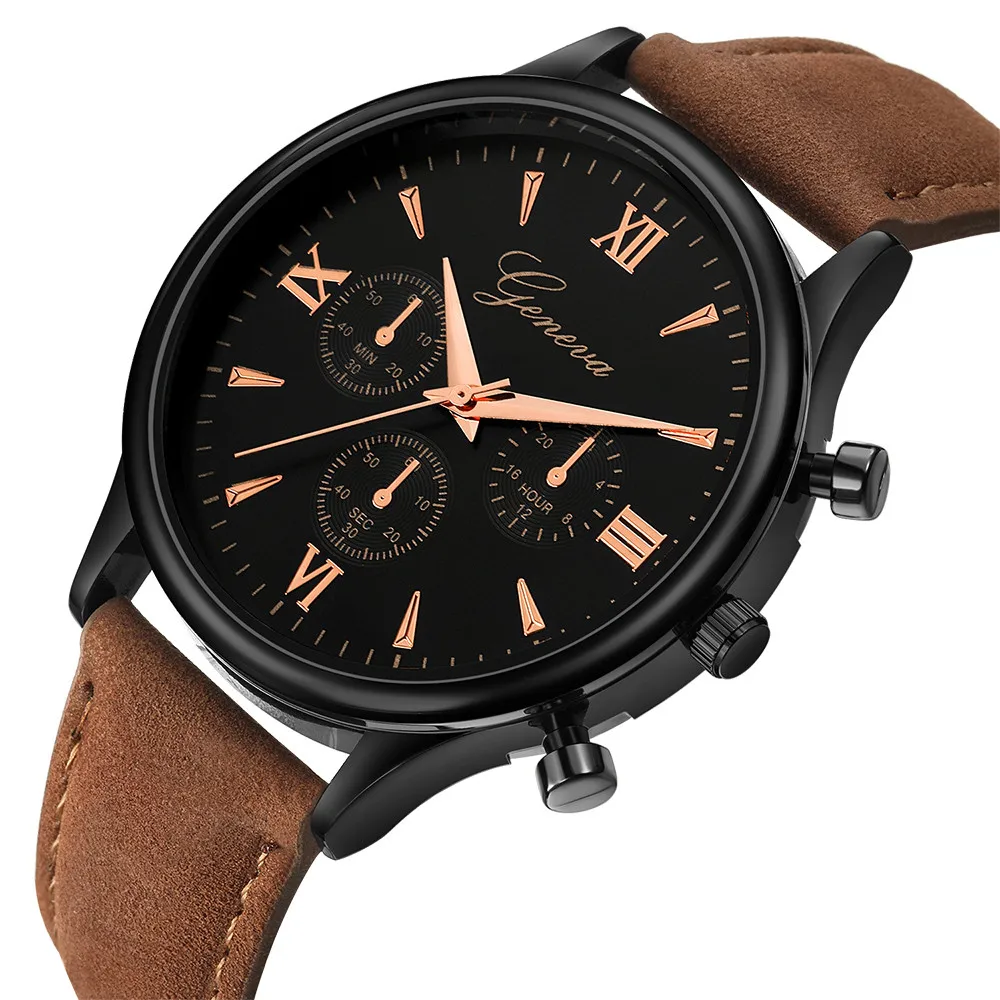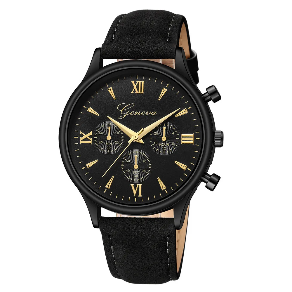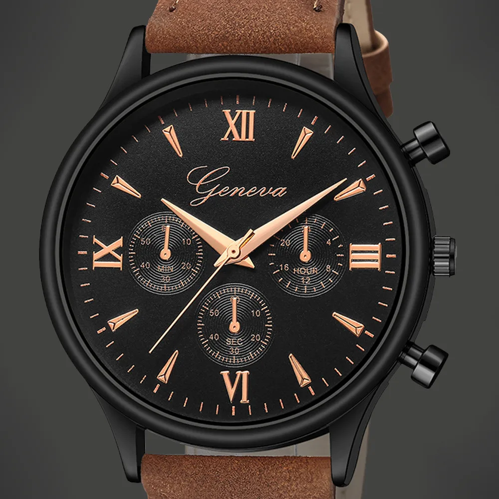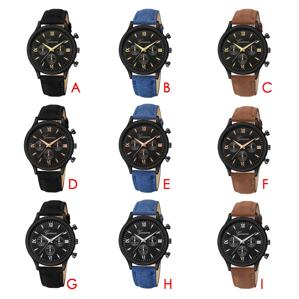 Geneva Men Watches Luxury Faux Leather Blue Ray Glass Quartz Analog watch man watches mens 2019 relogios masculino