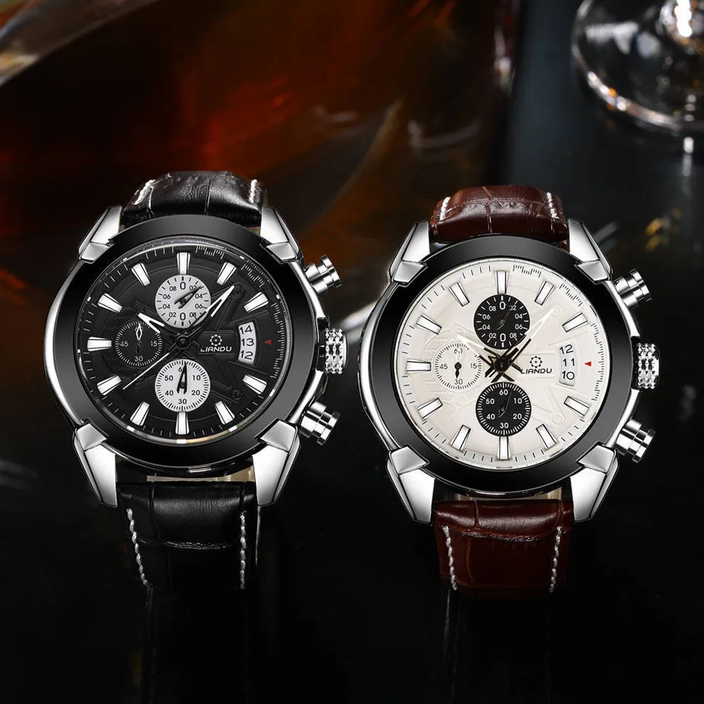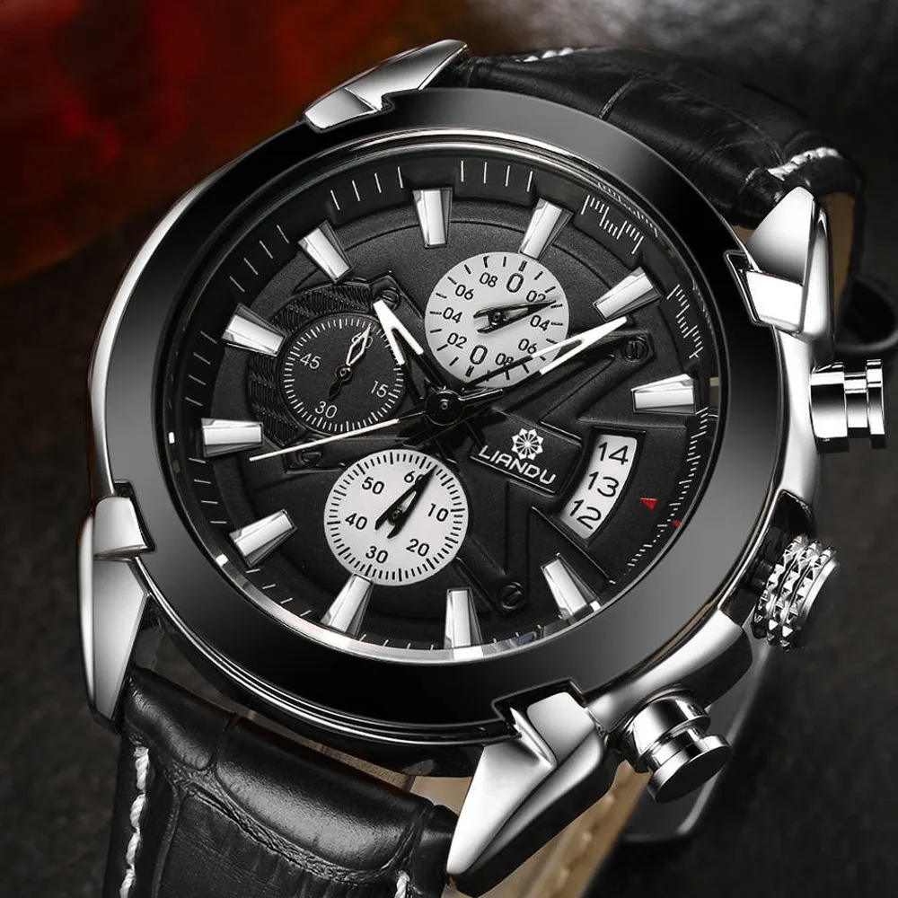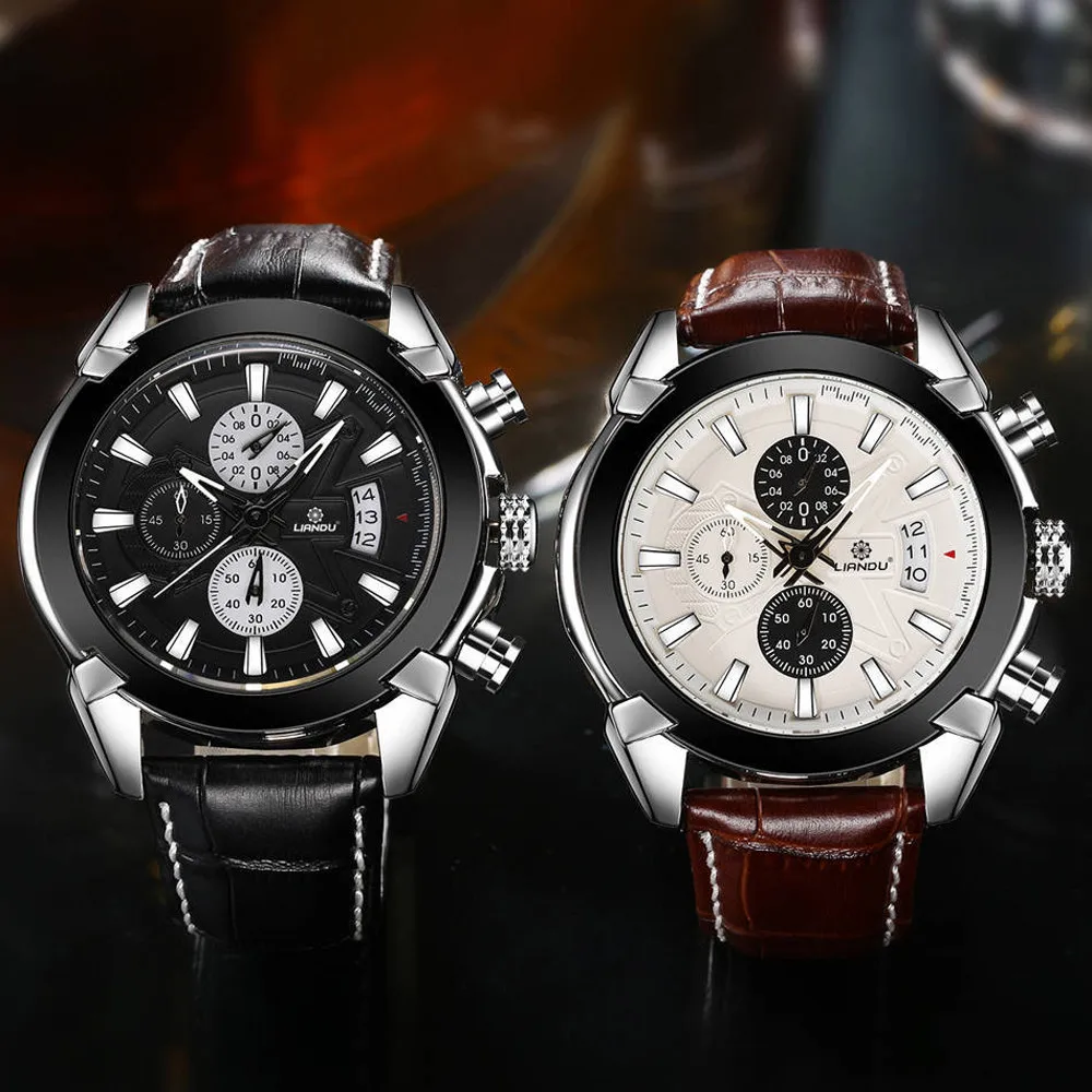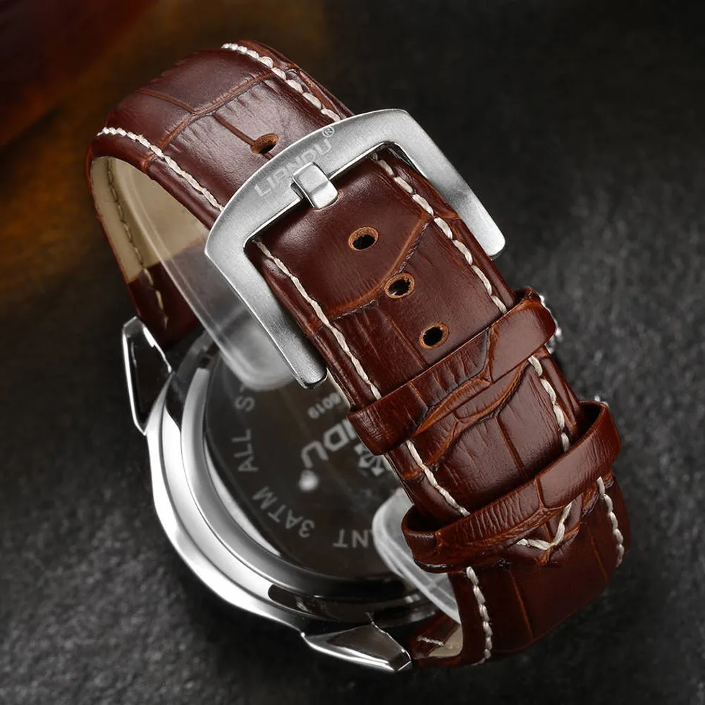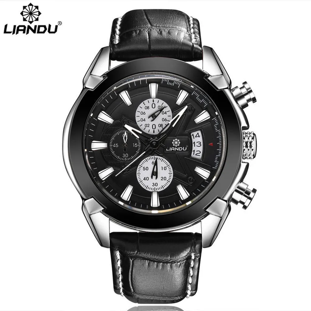 LIANDU Mens Wrist Watch Luxury Fashion Leather Glass Quartz Analog Watch Man Reloj Hombre 2019 Men Wristwatch Clock