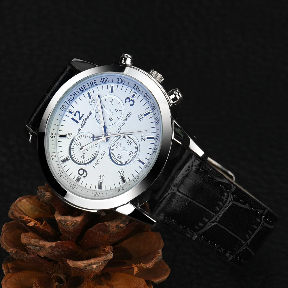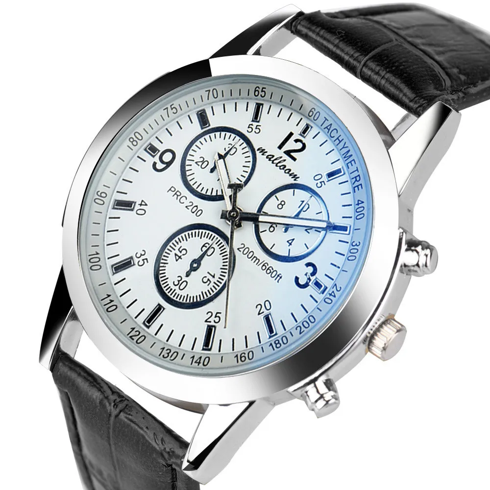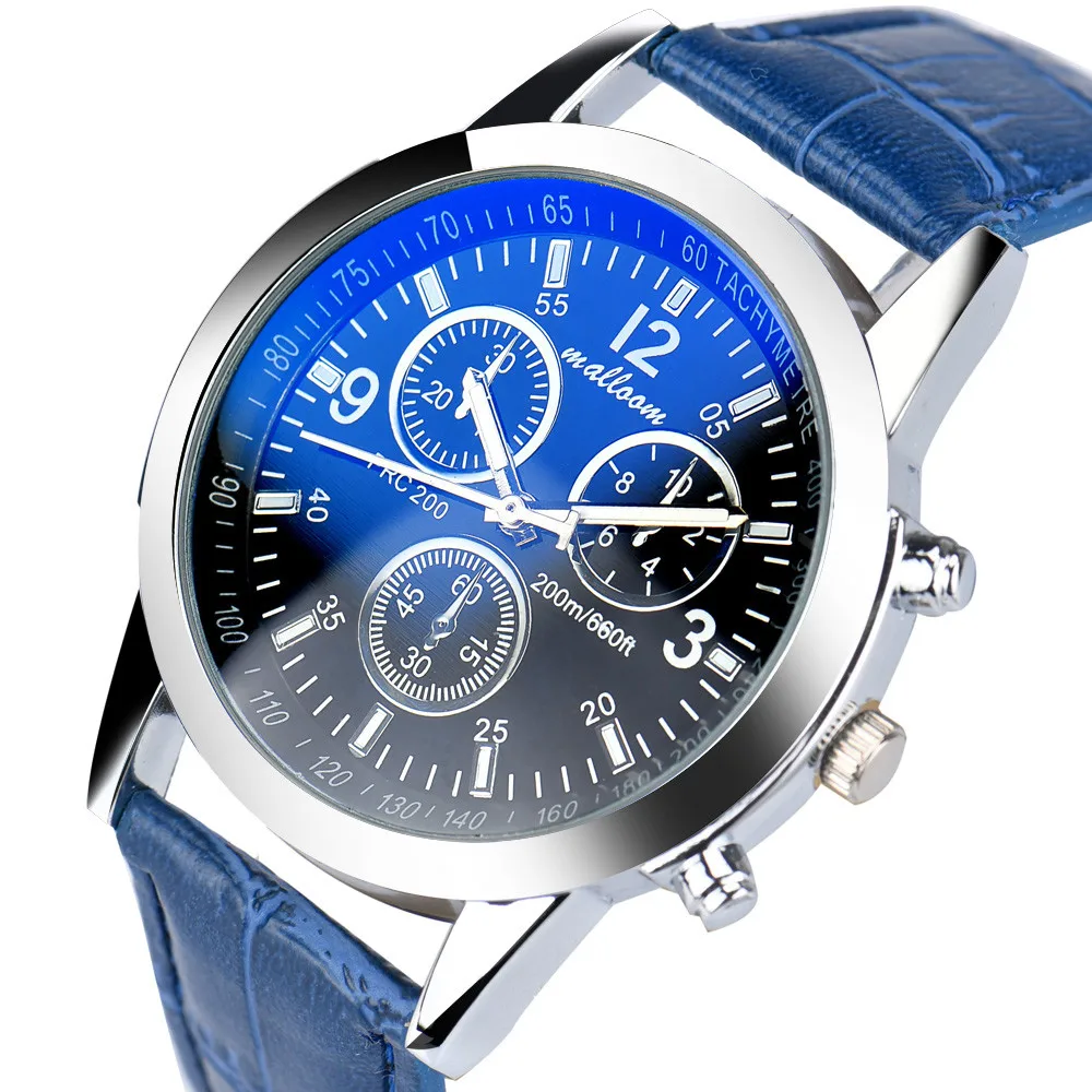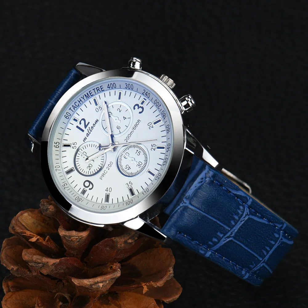 Men Wristwatch Clock Luxury Fashion Faux Leather Blue Ray Glass Quartz Analog Watch Man Montre Homme 2019 relogio masculino