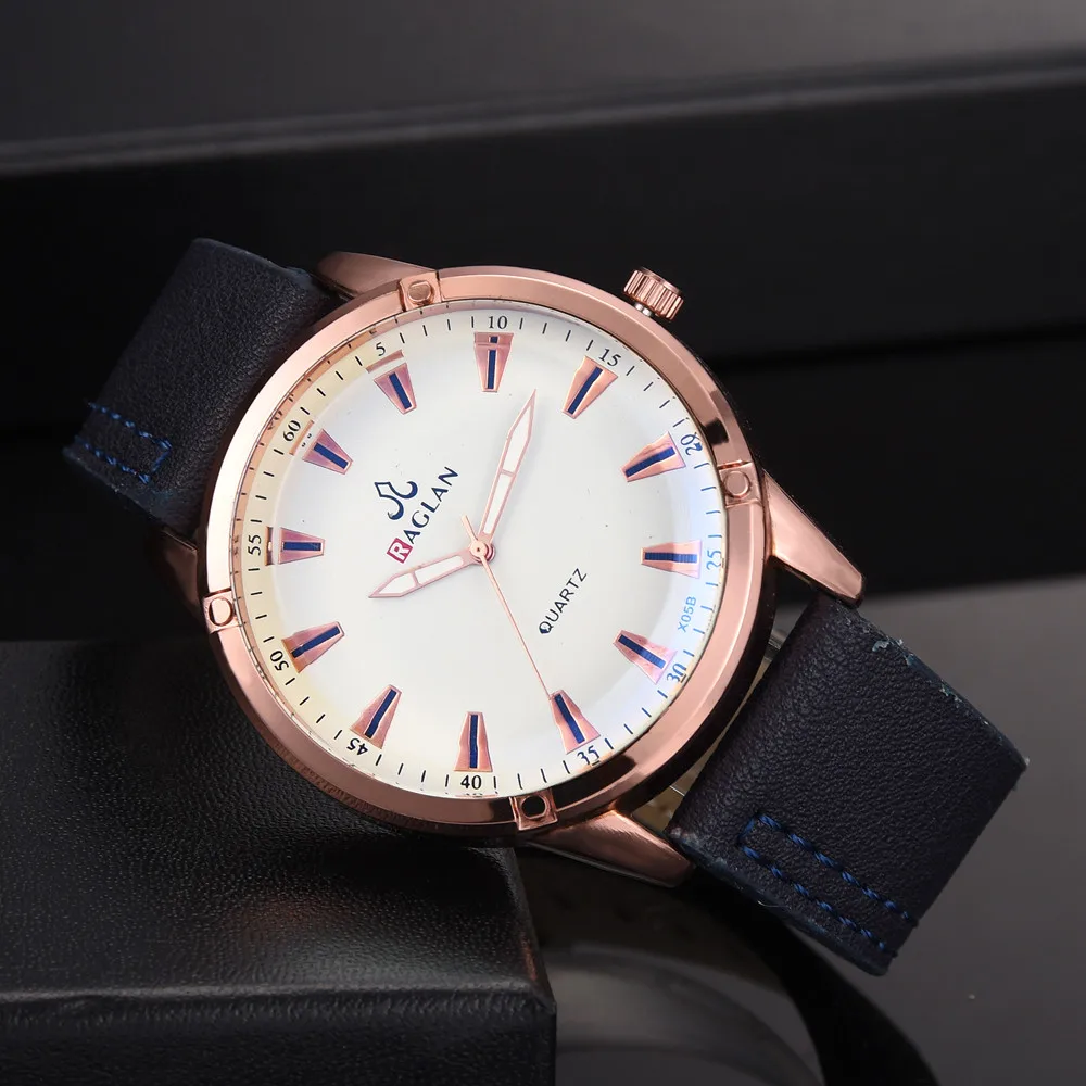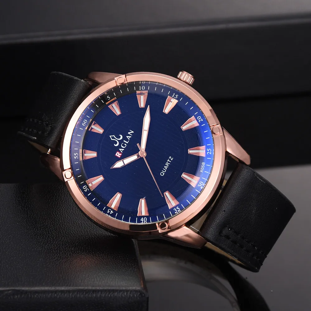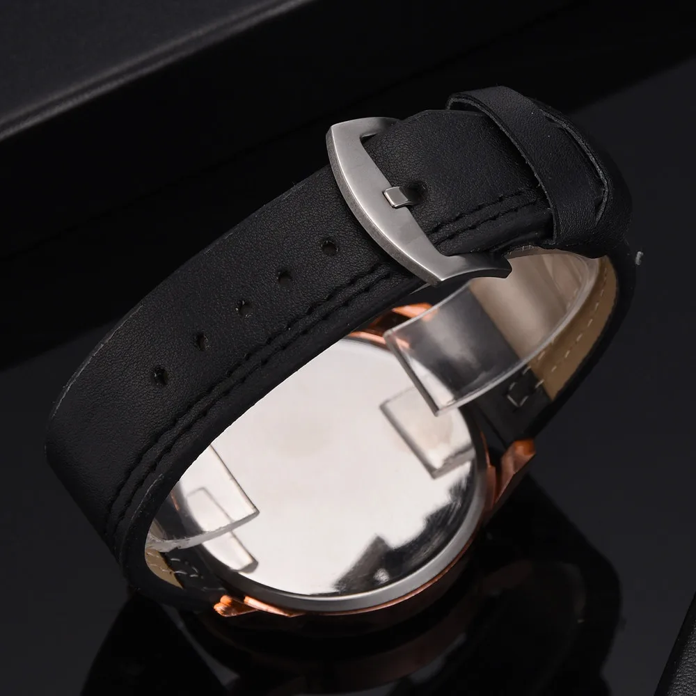 Fashion Men Quartz Watch High Quality Leather Clock Blu Ray Glass Wristwatch