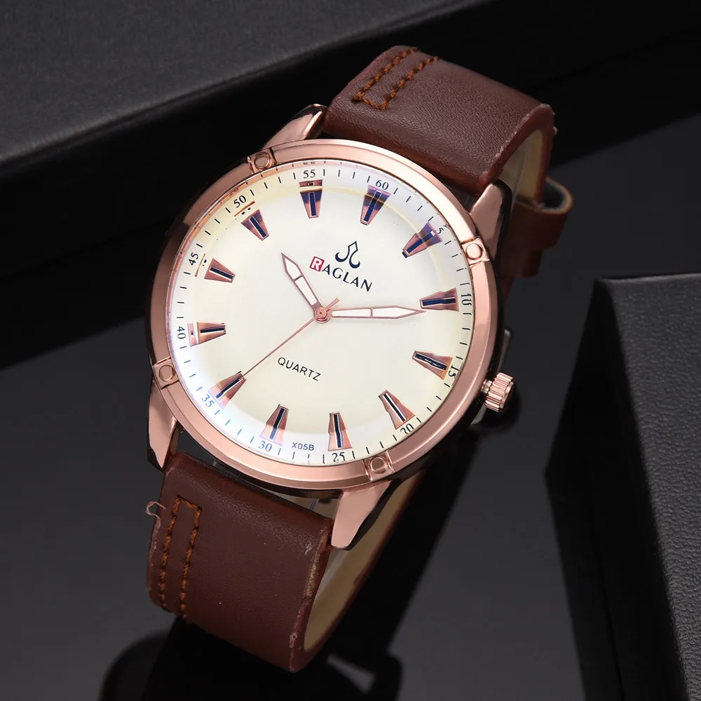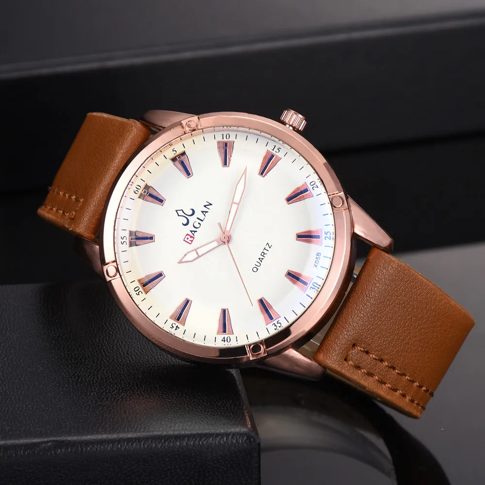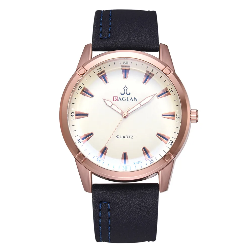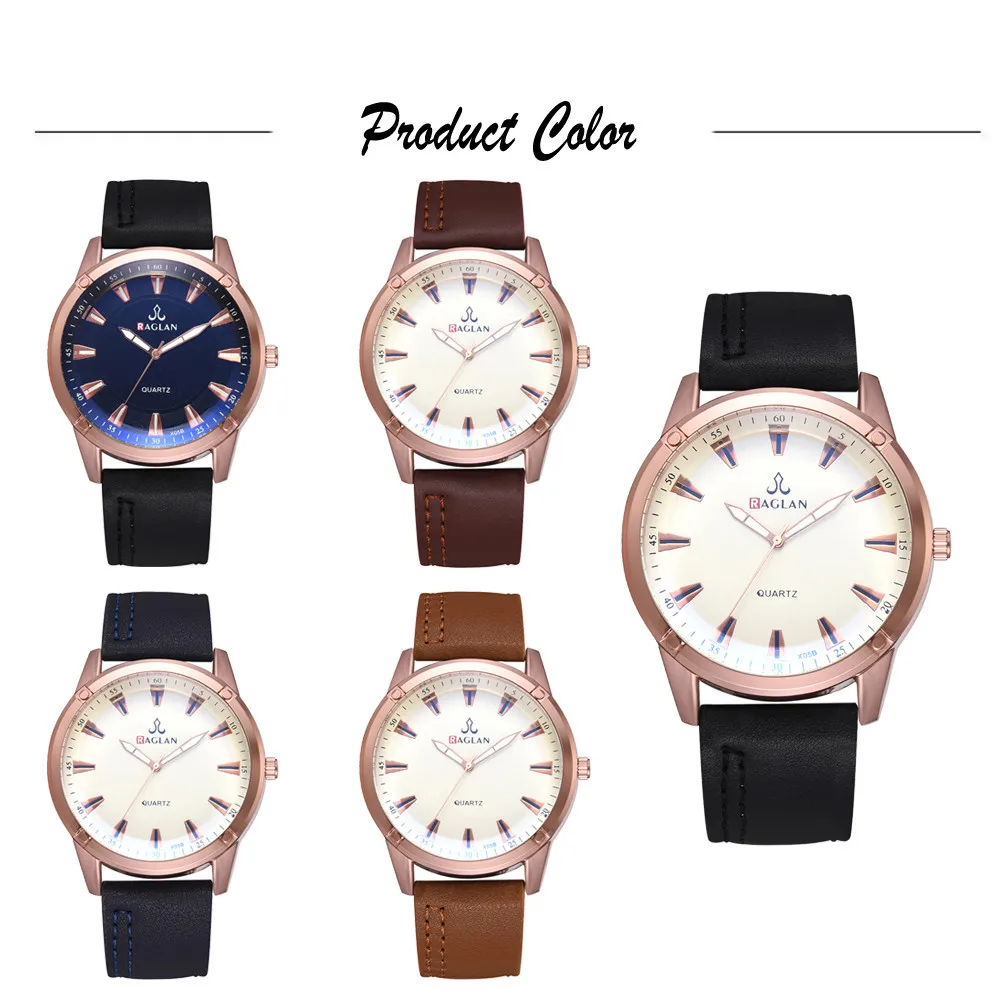 Fashion Men Quartz Watch High Quality Leather Clock Blu Ray Glass Wristwatch