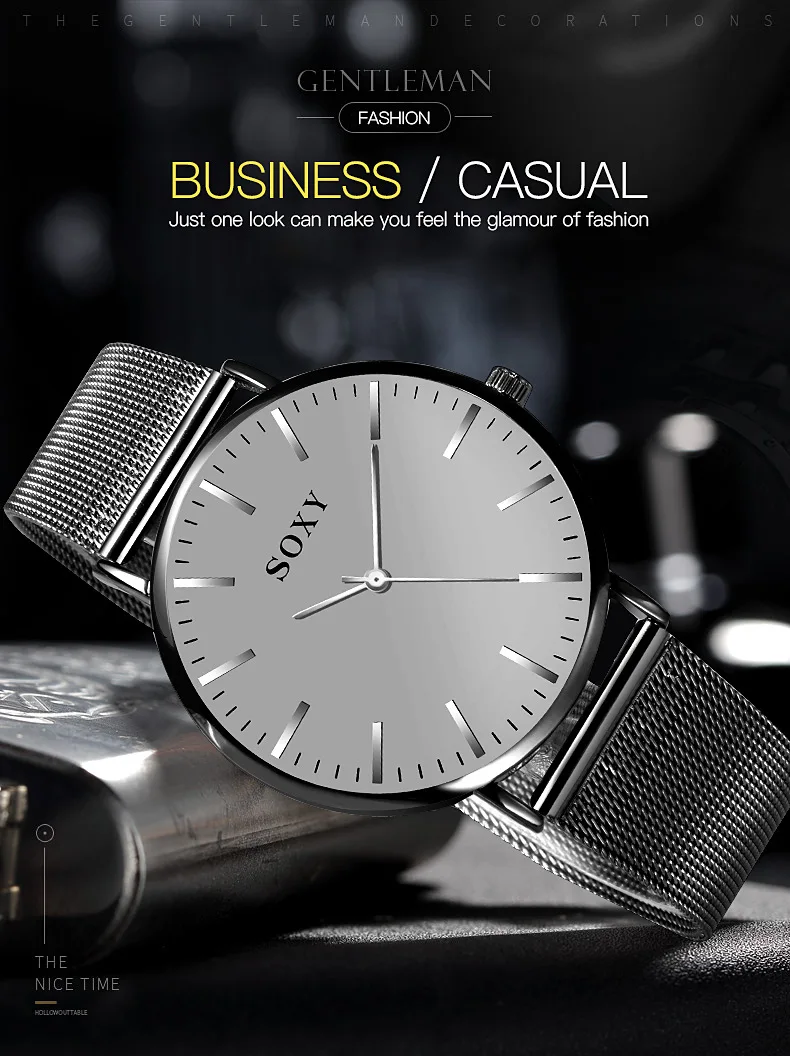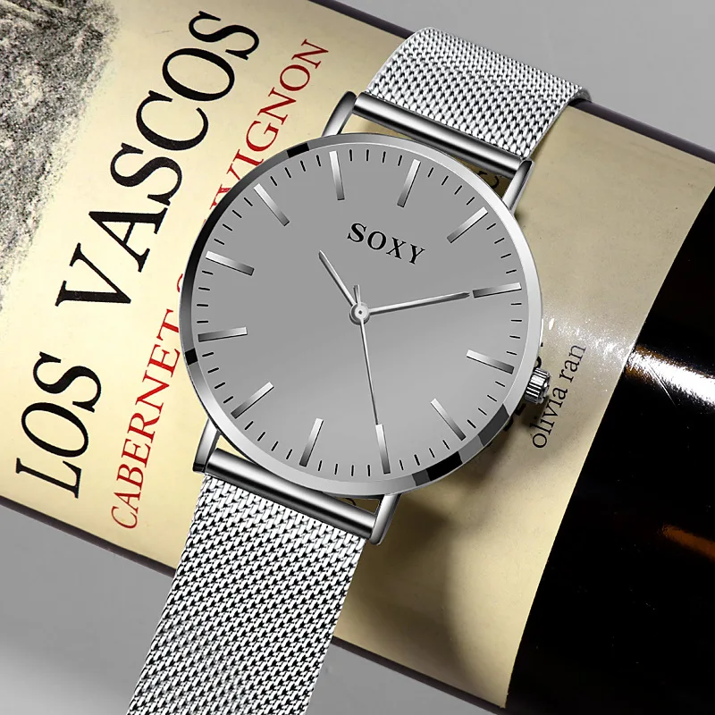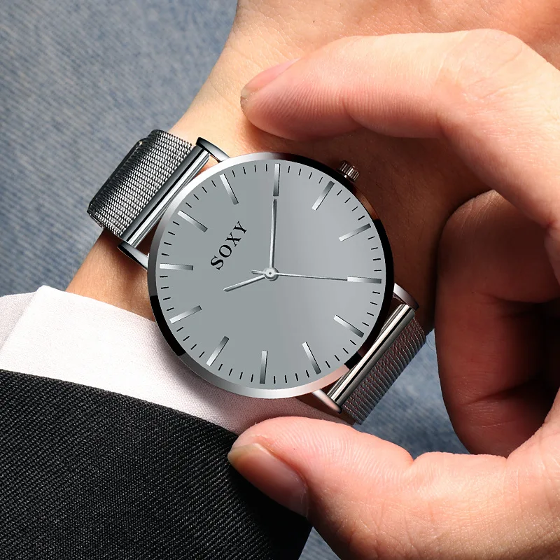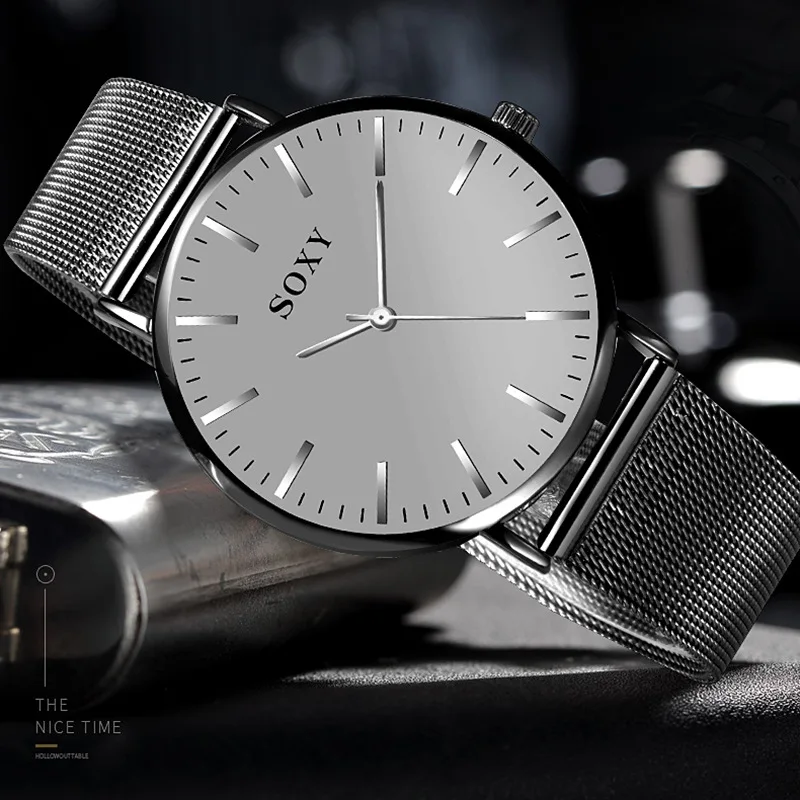 Men's Watch SOXY Brand Deluxe Quartz Clock Simple Dial Stainless Steel Strap Watch for Men Relogio Masculino Zegarek Meski