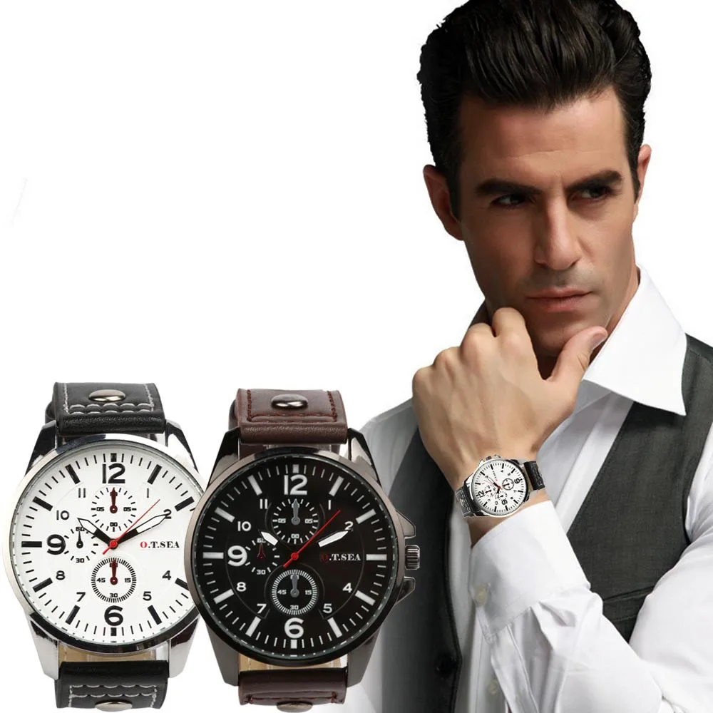 2016 Men's Sports Quartz Watches Mens Watches Luxury Leather Wristwatches