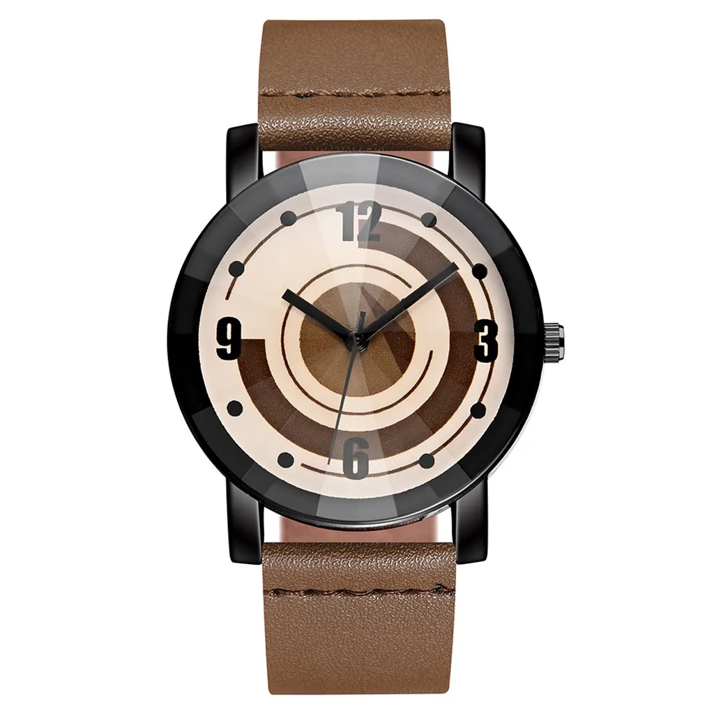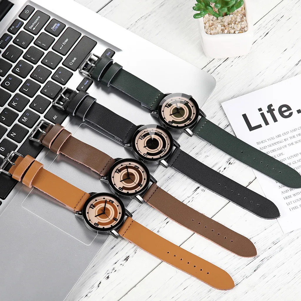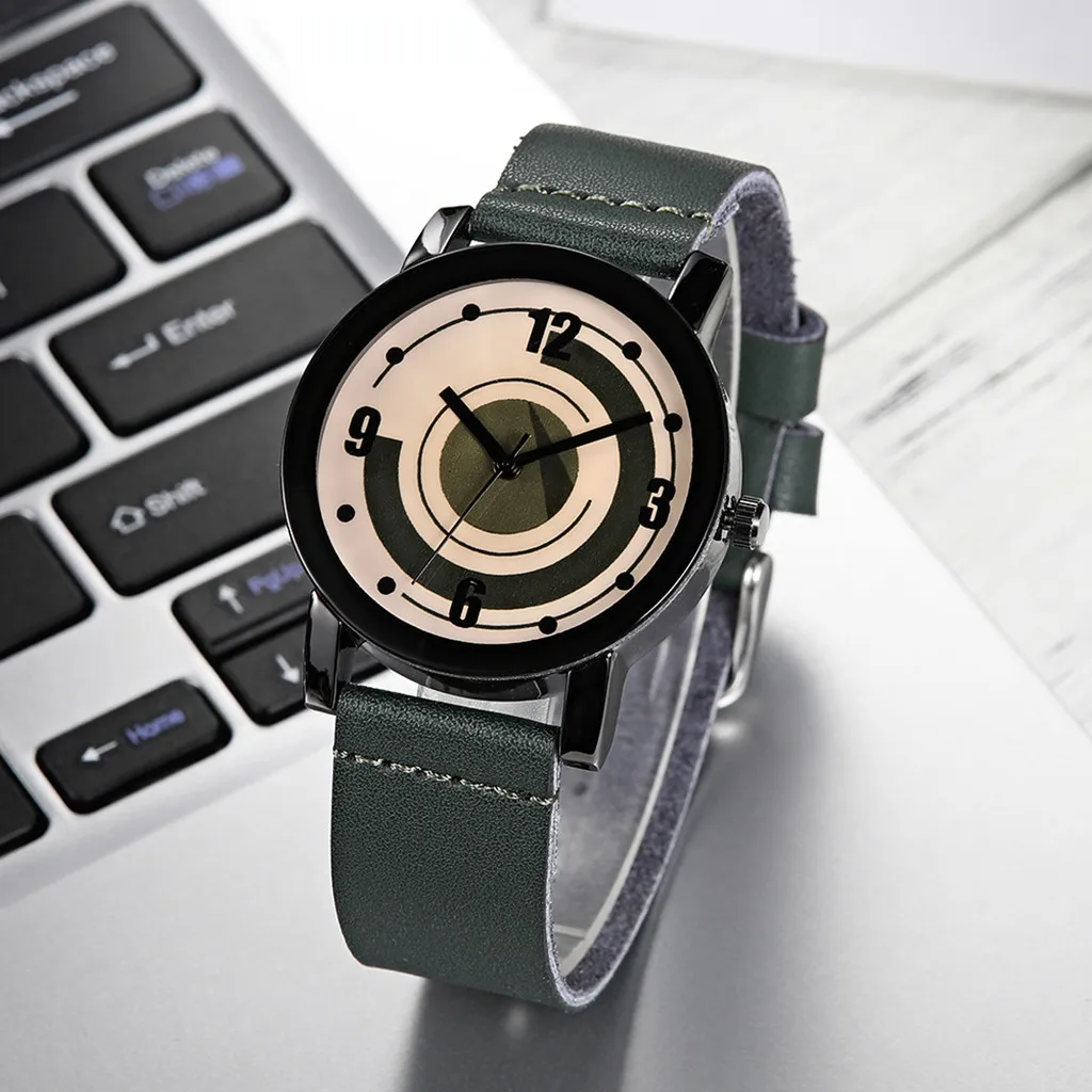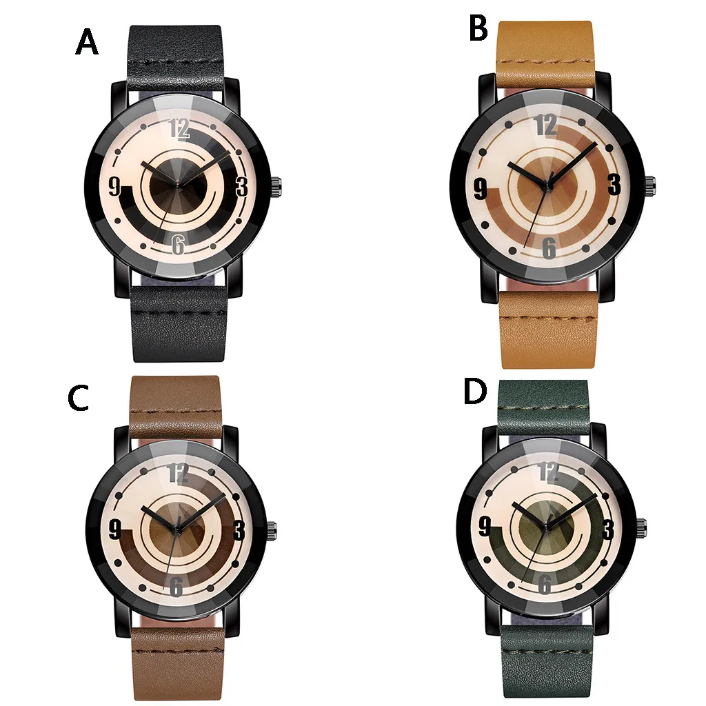 Feature: Name: Men's fashion watch Strap material:Leather Case material: alloy Mirror material: glass Movement: Quartz Strap length: 24cm Table bandwidth: 2.2cm Dial diameter: 4cm Buckle style: pin buckle Style: Sports Net weight: 55g Packing: opp bag Change the watch to display the calendar function This is a good present for...